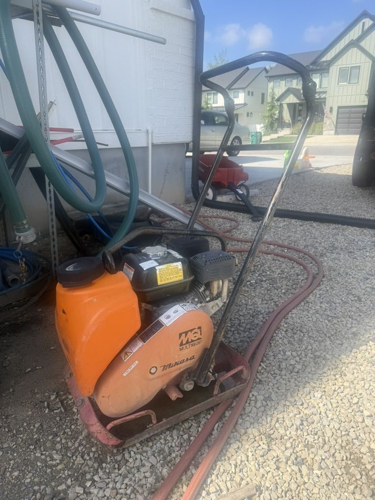 Has a tank but I never used it. I used this machine in my excavation company to prep areas for large block walls. It’s got the Honda GX160 motor on it and has plenty of life left on it. Fires right up. My business is changing so I’m selling this off.