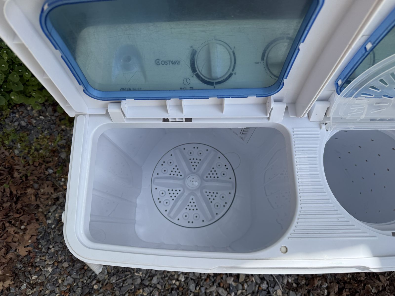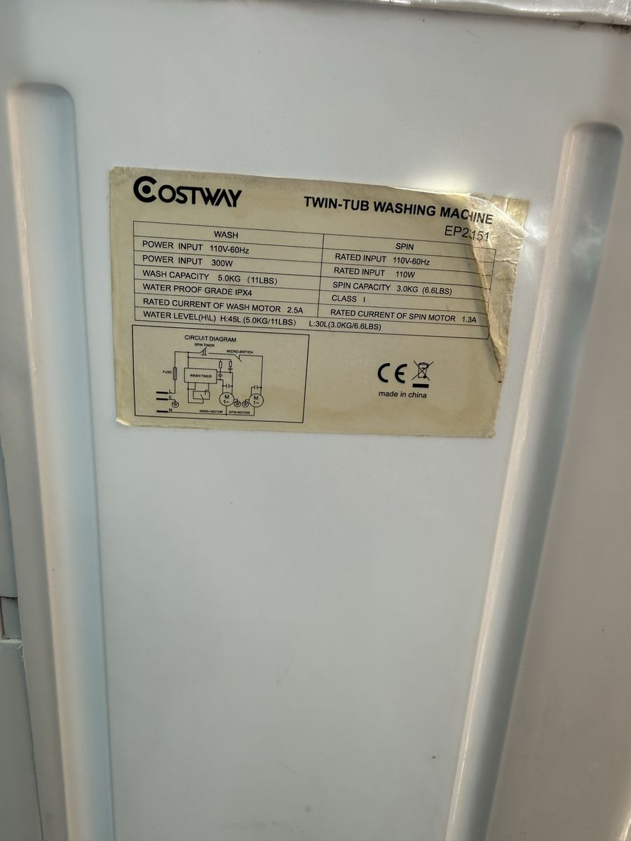 Portable twin tub washer (Costway) with separate wash and spin sides. Perfect for campers, RVs, small spaces, apartments, or anywhere without a full washer hookup.