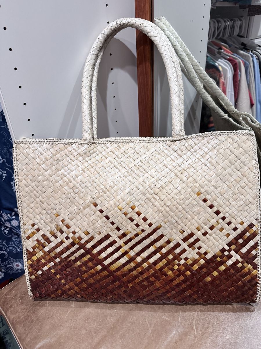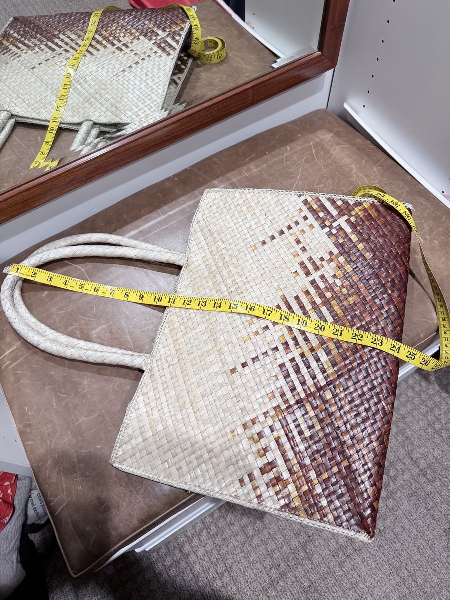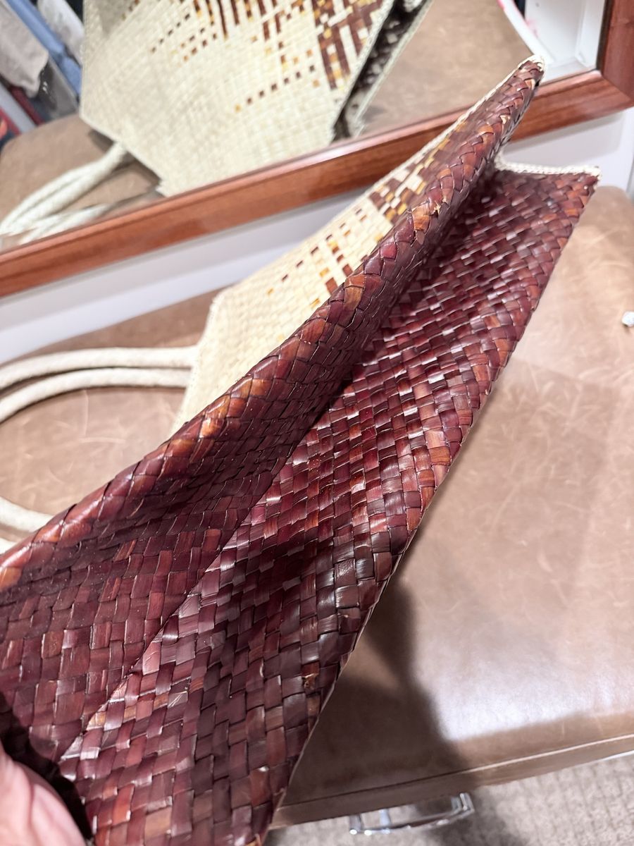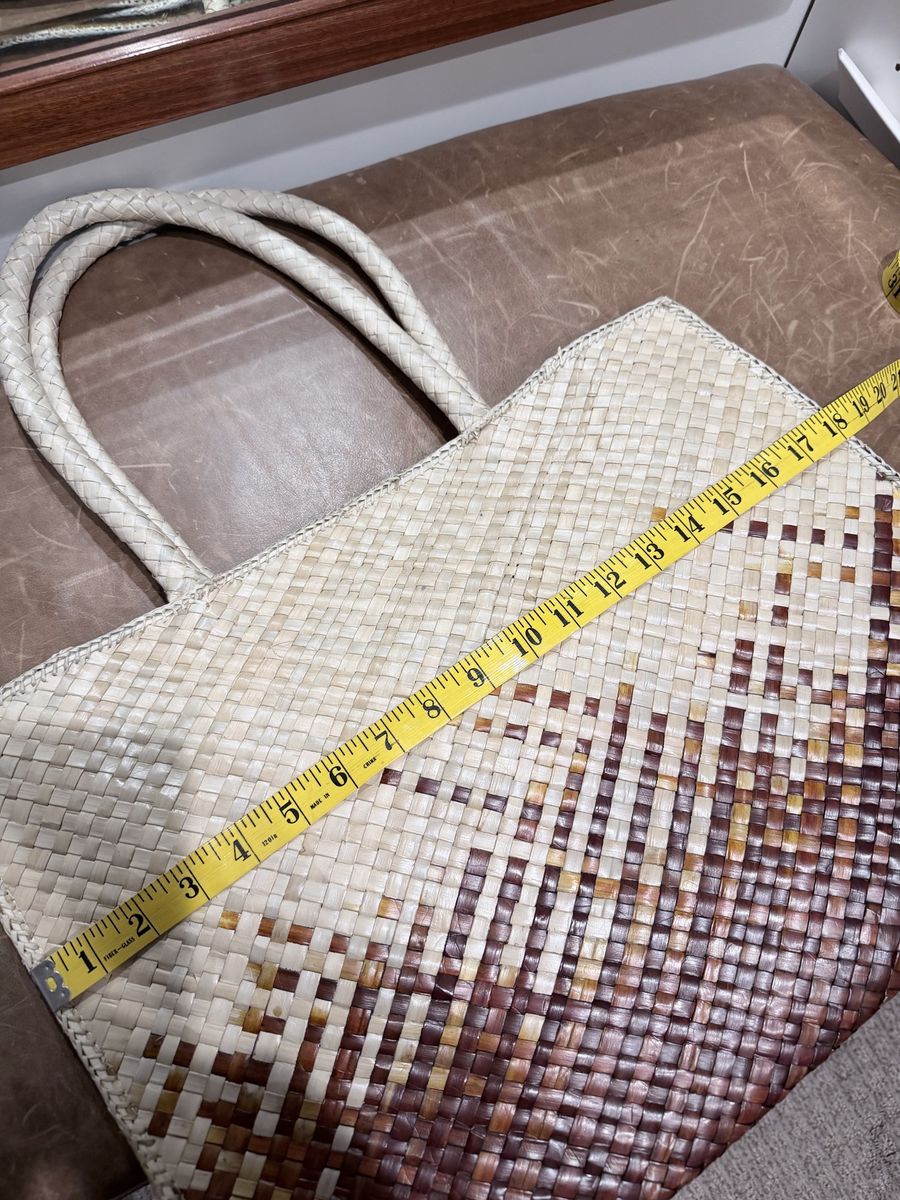 VenmoSpacious woven bag. It has two-tone design, light natural color on top fades to a rich brown at the bottom. Great for beach days or just everyday. 20” wide. Only used once - small imperfection on backside- not noticeable. Pd. $35 Please look at all pictures.