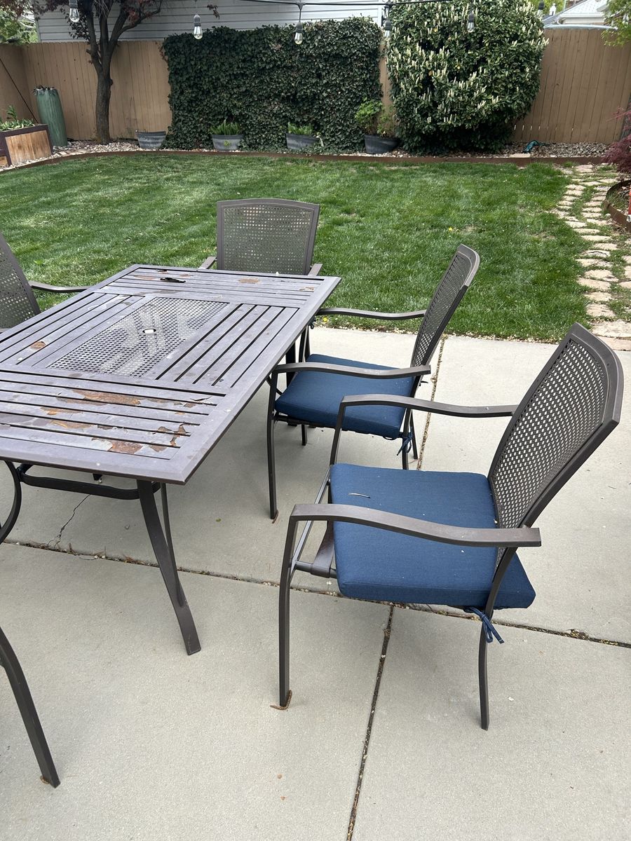 The only able is showing a lot of wear but the chairs and cushions are is great condition