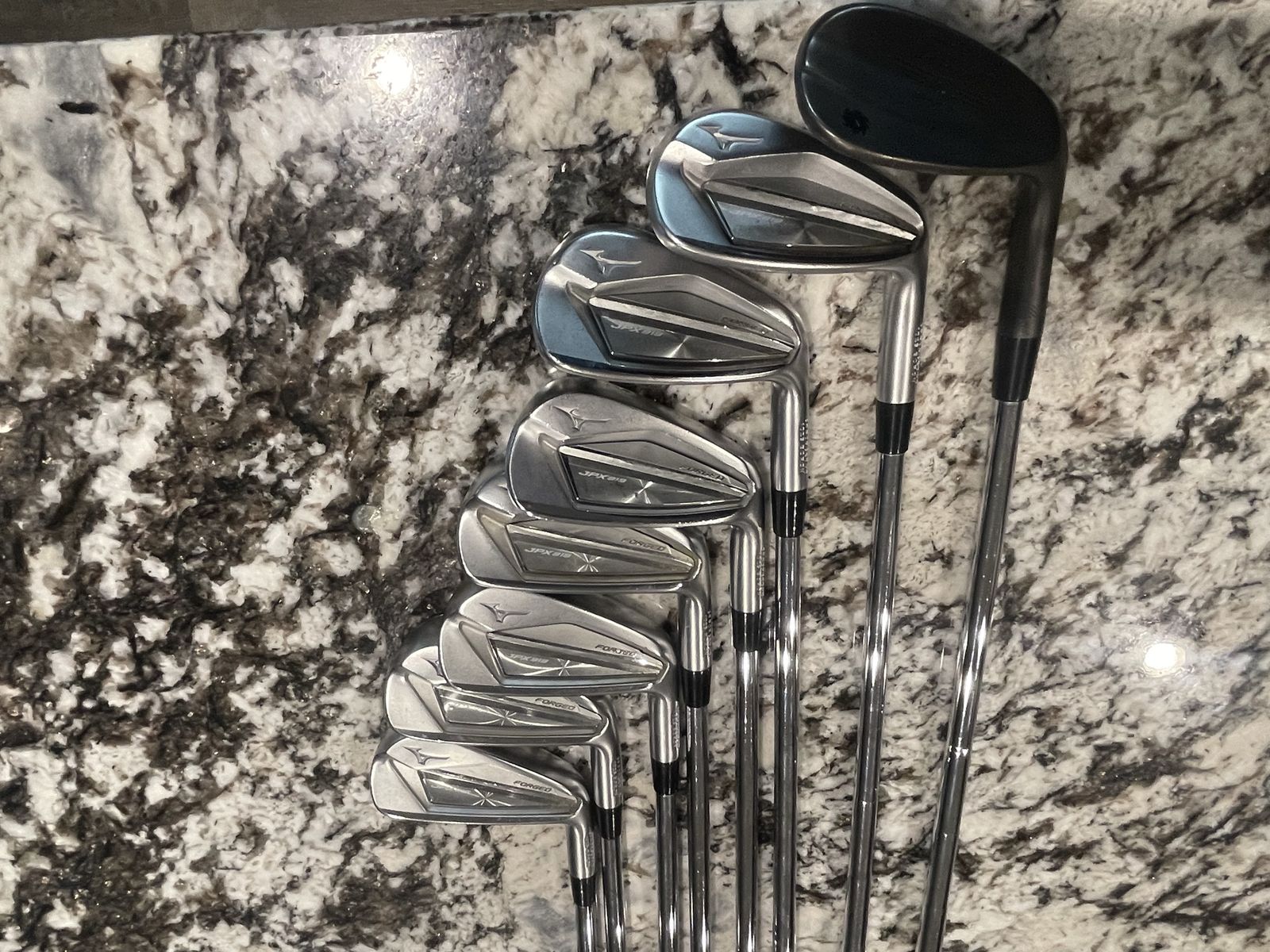 Selling a set of Mizuno JPX forged 919 irons 4-PW stiff shafts, also have a Titliest Vokey 50 degree wedge with them if you want it. All have Golf pride CP2 wrap grips.