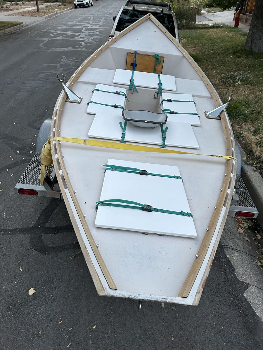 Dory for sale. Good condition. cataract oars.good trailer with new tires