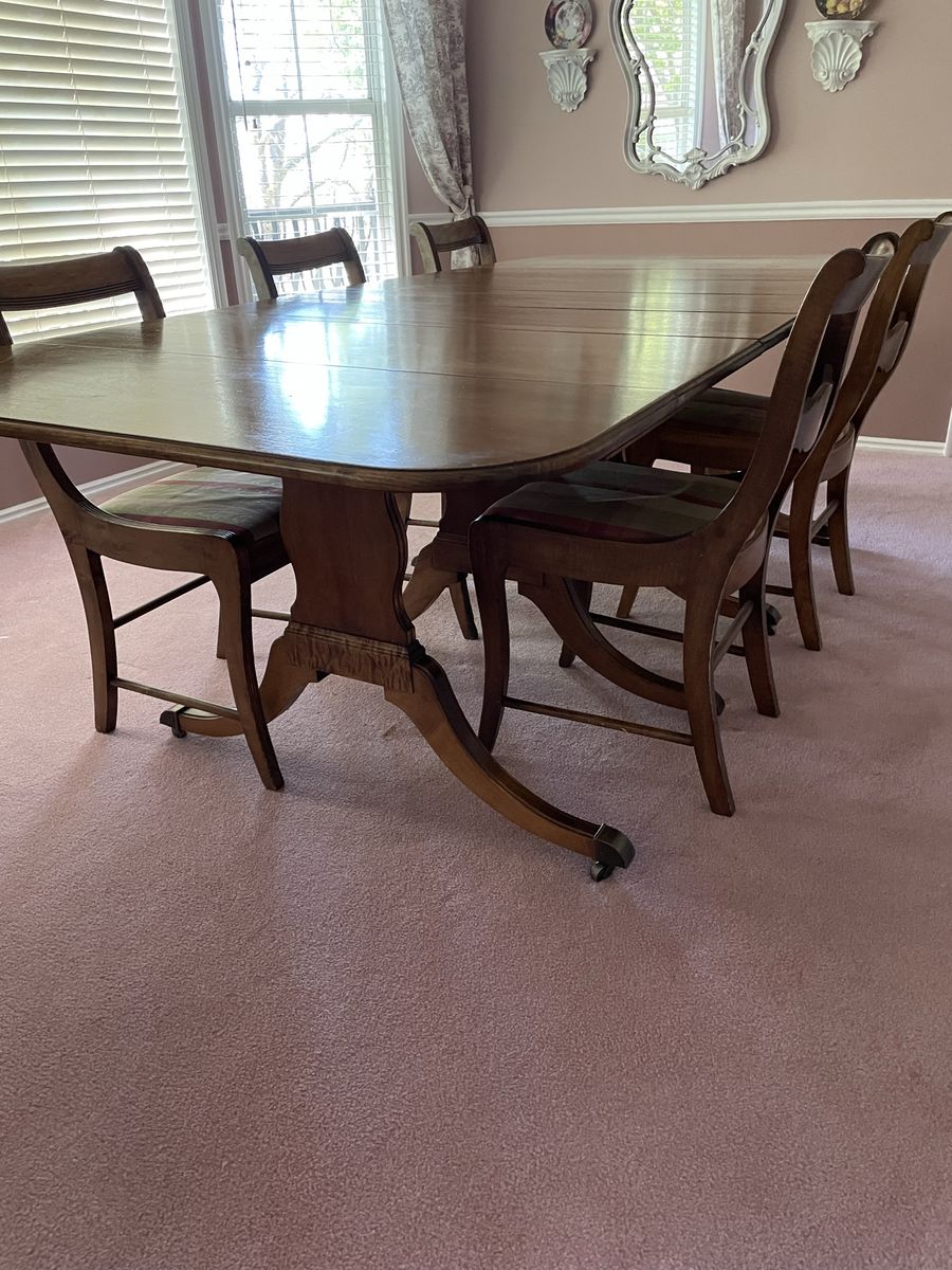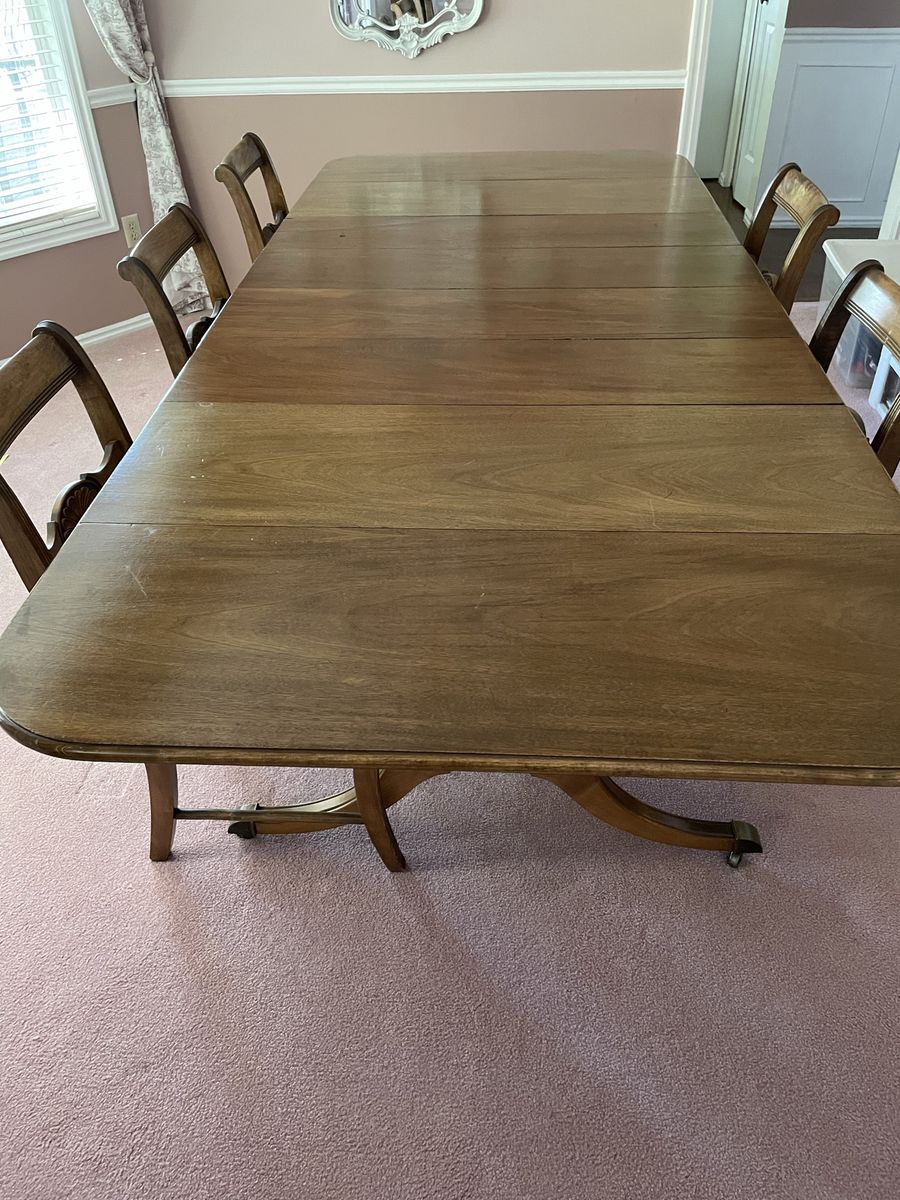 VenmoOld Dinning Table with 5 matching chairs. Has 4 leaves.
