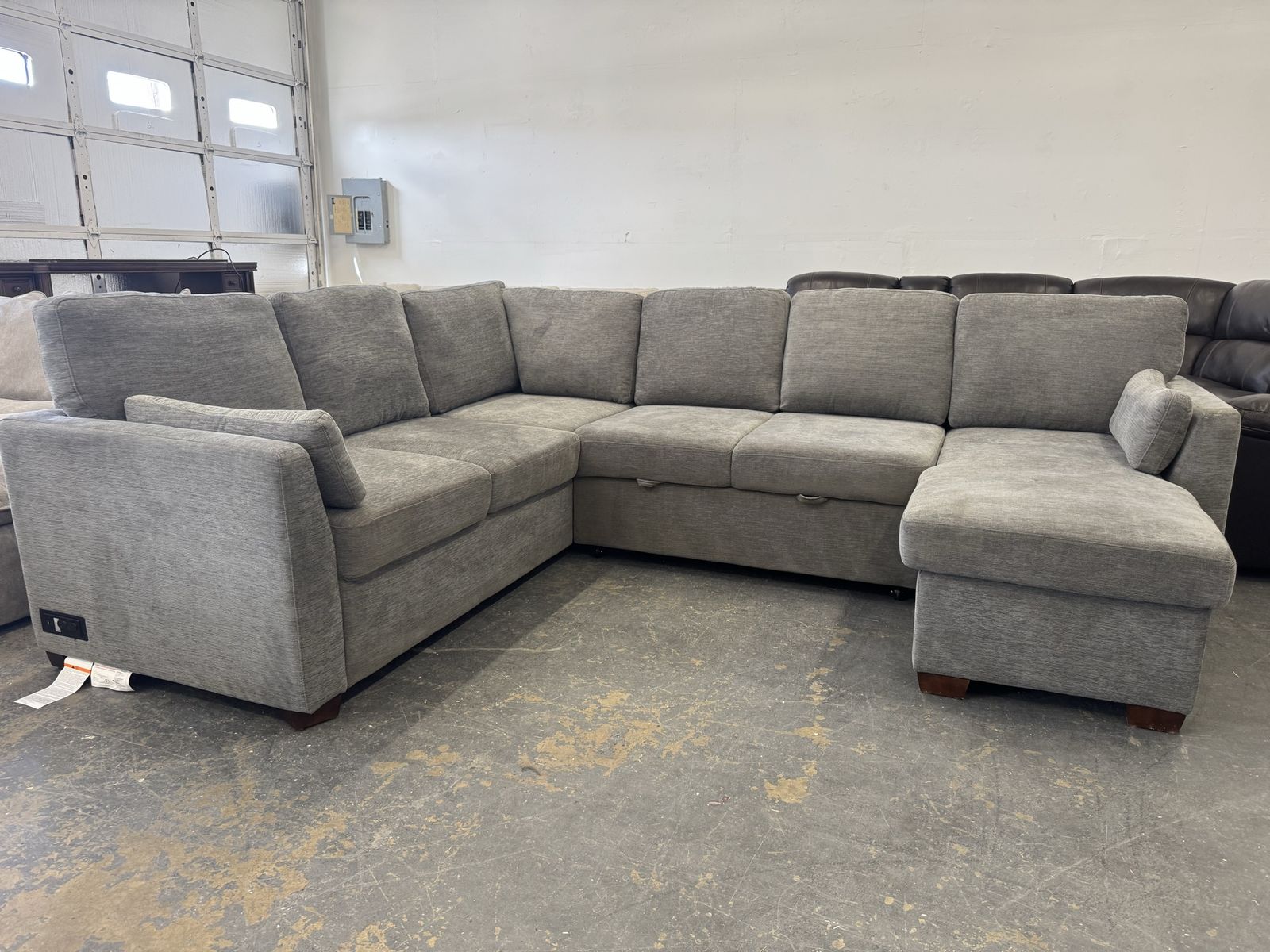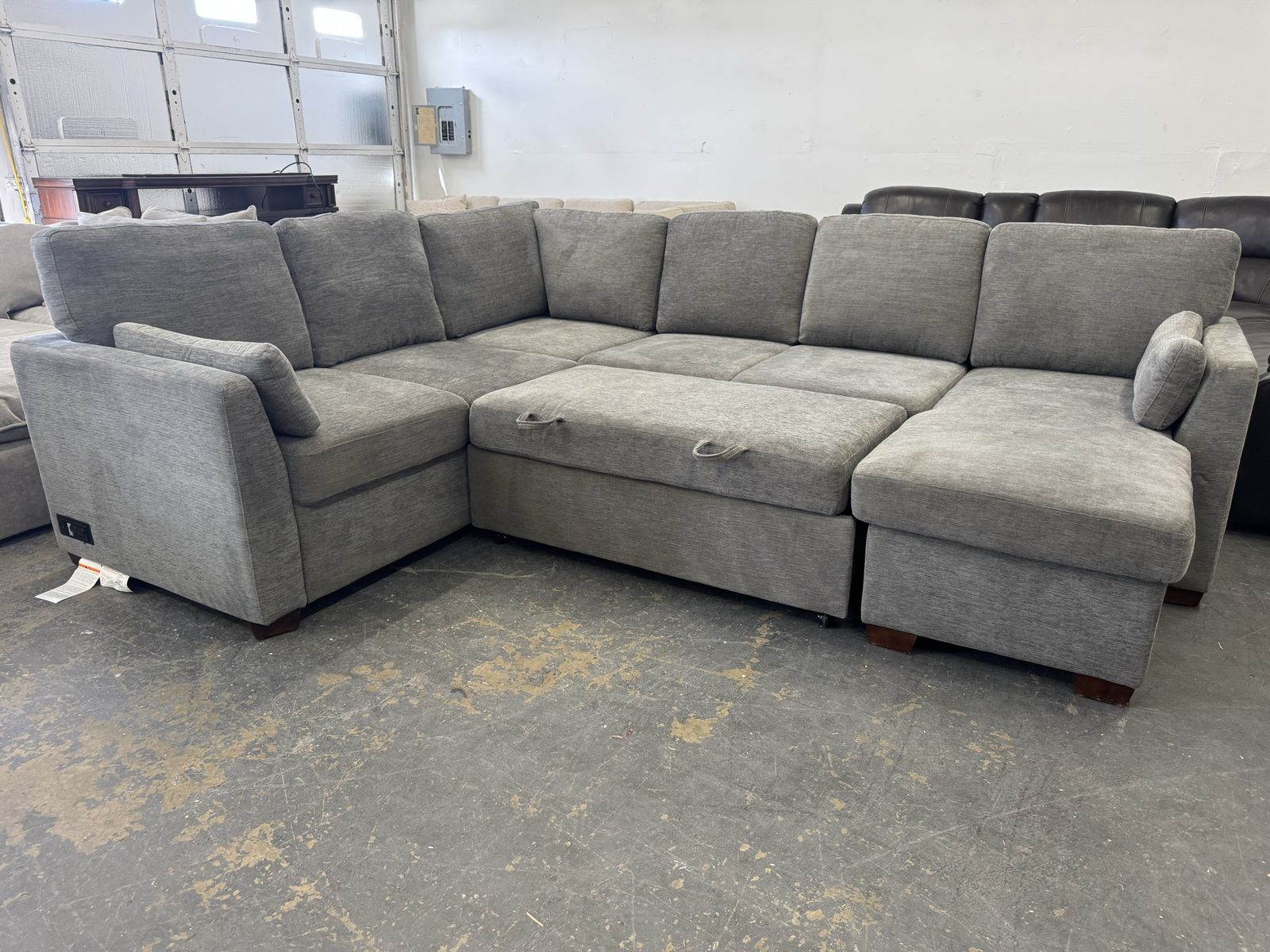 Features: Pullout Feature That Converts the Luke Sectional into a Bed Reversible Chaise with Storage 4 Power Outlets, 2 USB-A Ports & 2 USB-C Ports Removable Back Cushions Pocket Coil Seat Cushion