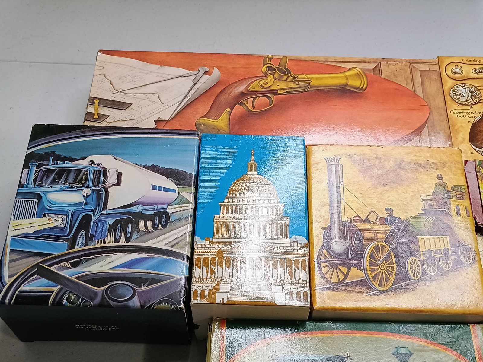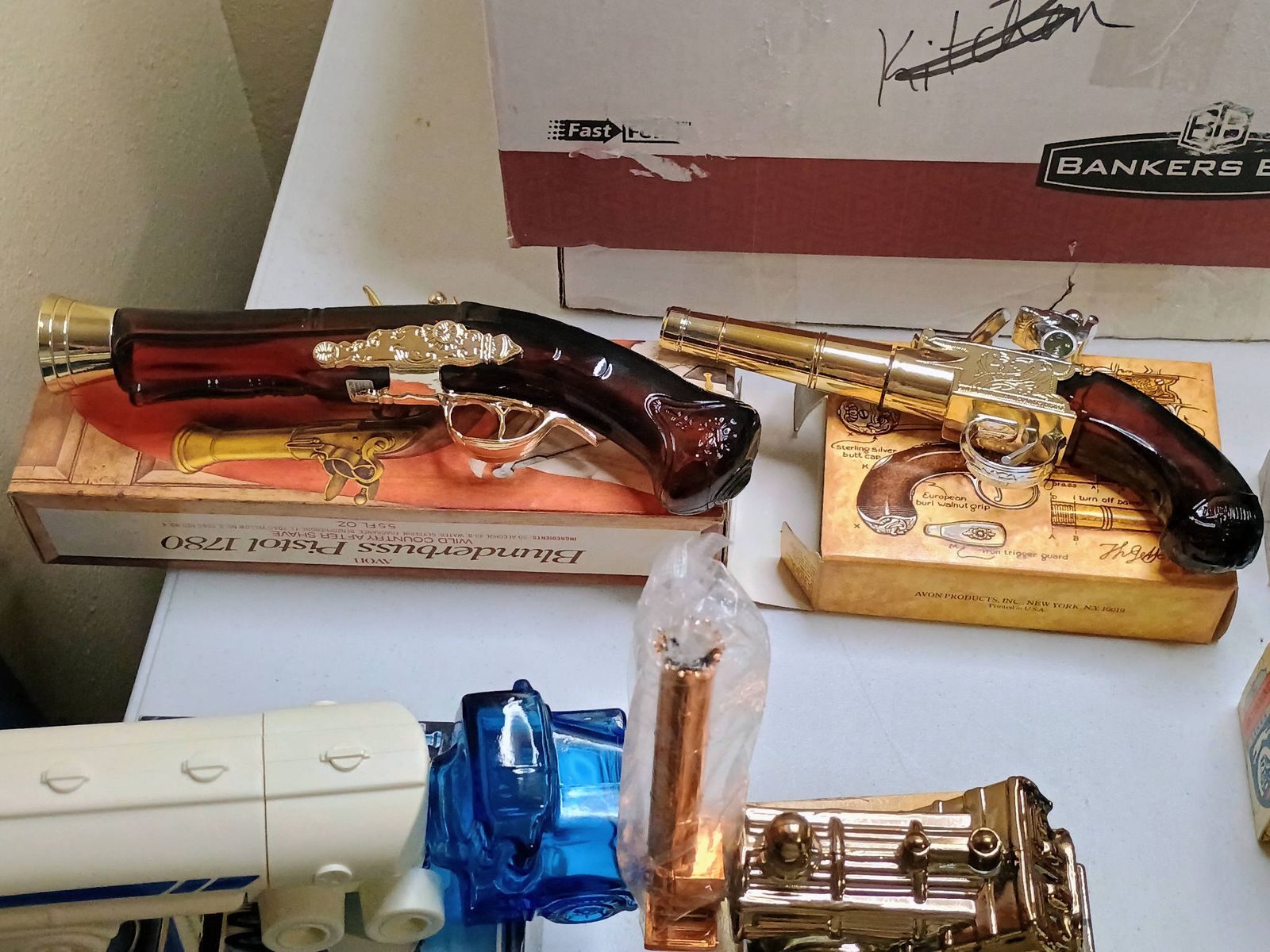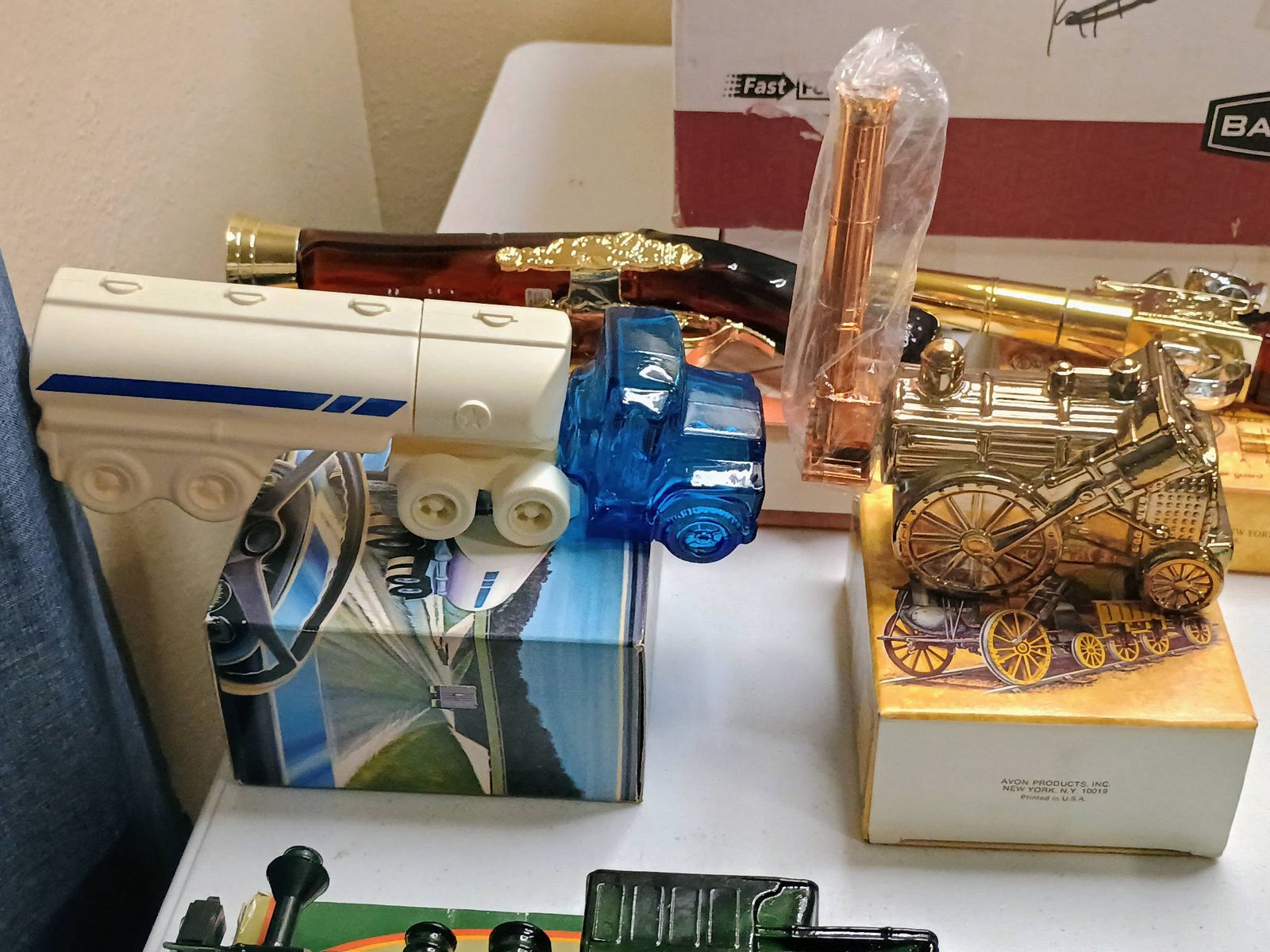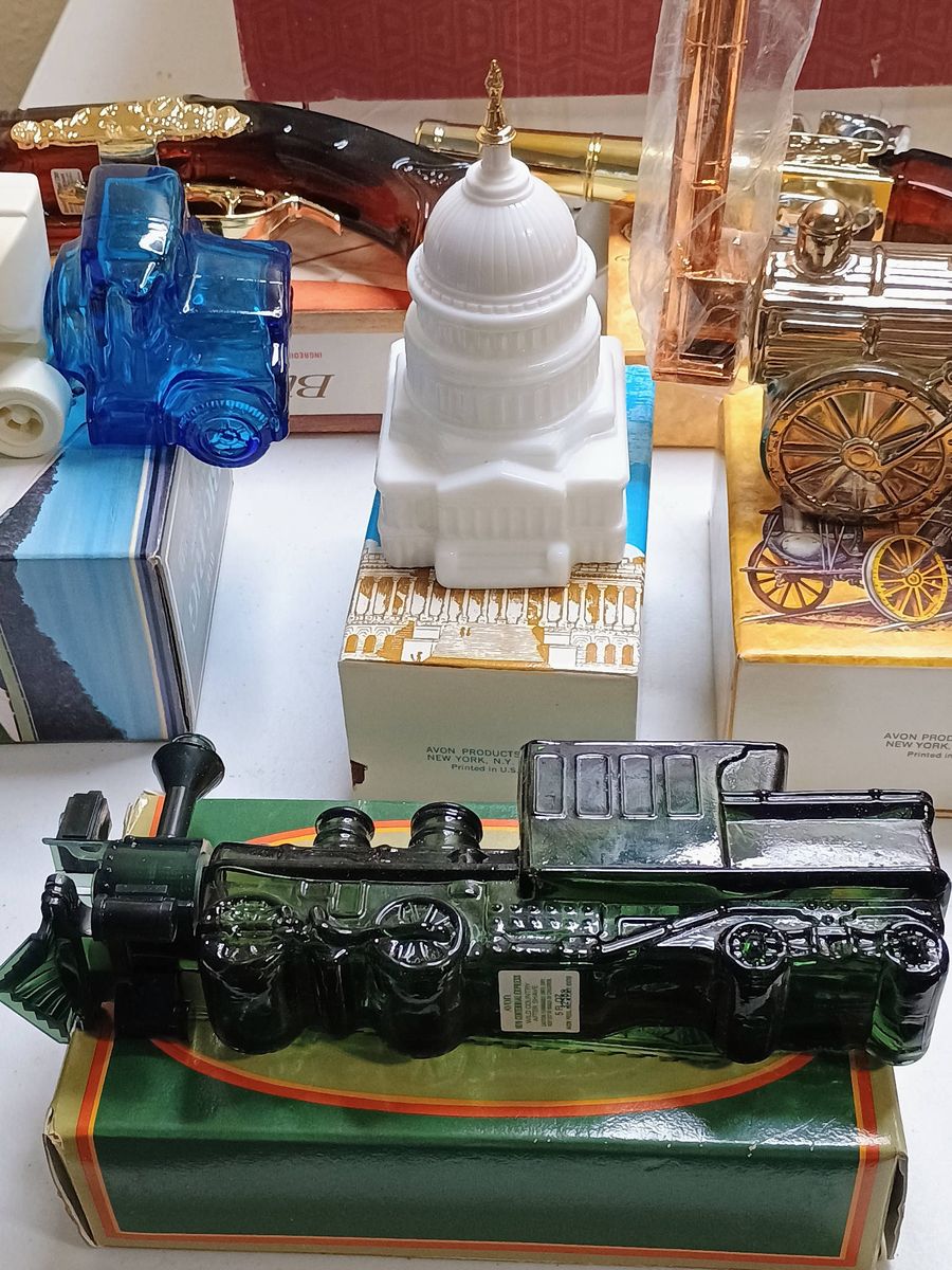 A lot of Avon decanters in boxes. ALL emptied over a year.