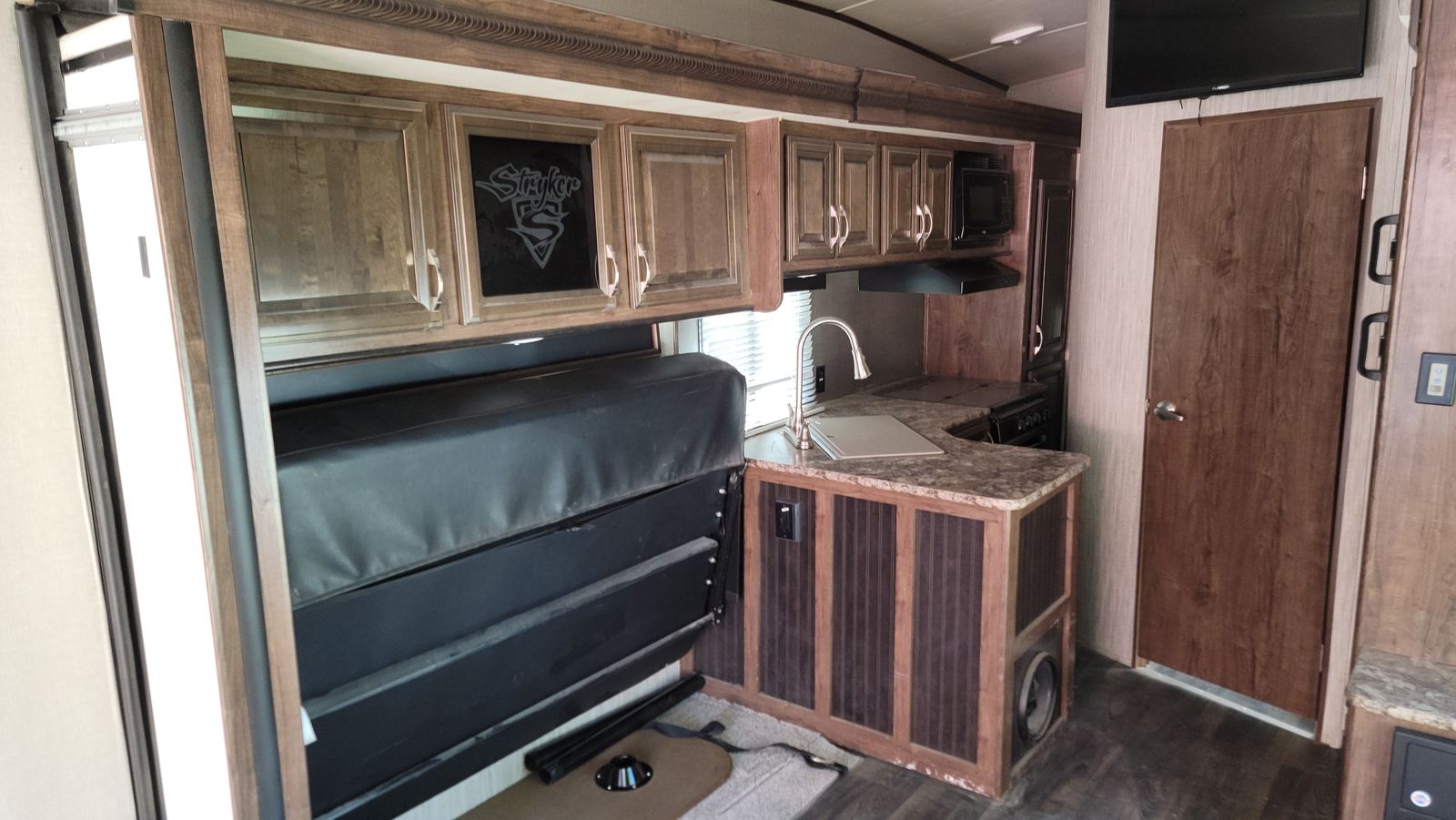 The 2018 Stryker 2916 is a wide-body, high-performance toy hauler designed for serious enthusiasts. With a 102" wide-body chassis and a massive 16-foot cargo garage, this trailer is engineered to transport side-by-sides, ATVs, or motorcycles with ease while providing a luxury living environment.