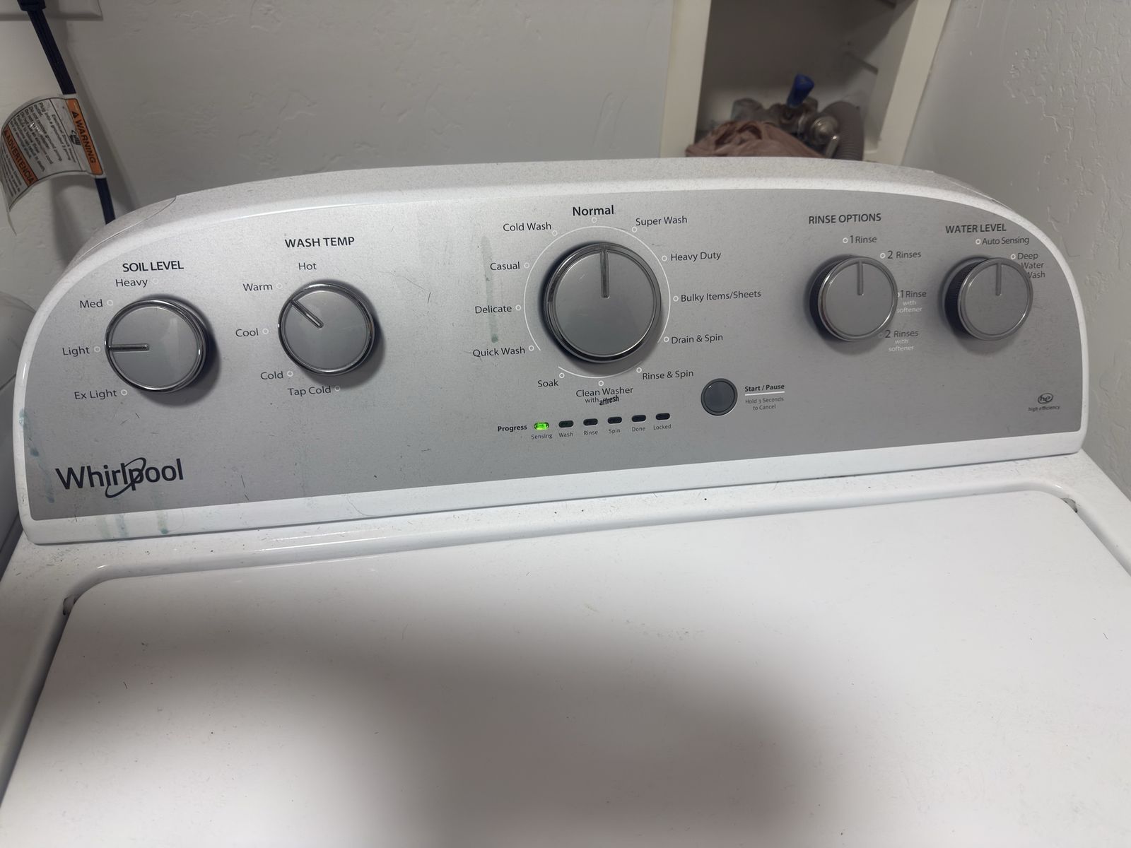 Whirlpool High-Efficiency Washer (Model: WTW5057LW) • Capacity: 4.7 Cu. Ft. (Large enough for king-size bedding) • Key Feature: 2-in-1 Removable Agitator. You can leave the agitator in for deep cleaning or pop it out for extra space. • Settings: Auto-sensing water levels, Deep Water Wash, and multiple soil/temp settings. • Condition: Very clean, runs quiet, and well-maintained.