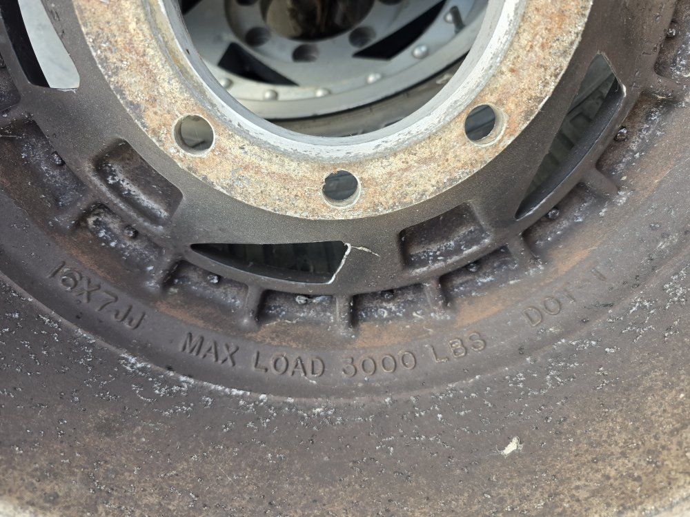 -8 lug (perfect for your truck, trailer, or “I might use these someday” pile) -3 wheels are solid -1 wheel has a crack (adds personality, not roadworthy unless you’re feeling lucky) Tires are… how do I say this… experienced (great for rollers, burnouts, or decoration)