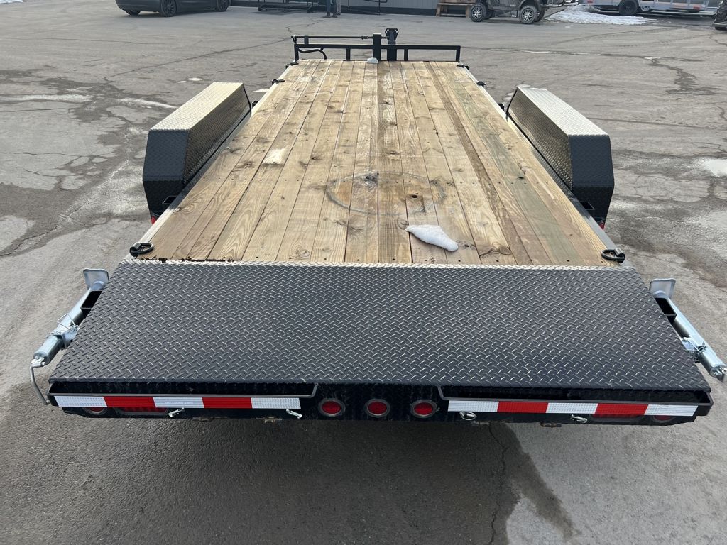 Stock Bumper: PJ6338 Trailer Includes Following Options: 2' Dovetail w/ Rear Slide Out Ramps Standard Features: 14,000 lbs. GVWR 7,000 lb. x (2) G.A.W.R. 5/16" Grade 70 Safety Chain w/Clevis hook (2 each) Spring Loaded Drop Leg Jack (10,000 lb.) 2 - 7,000# (Dexter) Electric Axle 6-Leaf Slipper Spring Suspension 16" Black Spoke Wheels ST235/80R16 Radial Tires (3,520 lbs.) 3-5/8" x 1-1/2" (ID) Stake Pockets 9" x 72" Treadplate Aluminum Fenders 6" Channel Tongue 3" Channel Crossmembers on 16" Centers 2" Treated Pine Lumber Deck 83" Wide Deck All-Weather Wiring Harness (7-way RV) Powdercoat 5 year Dexter Axle Warranty Over 2,000 trailers in stock at Wasatch Trailer Sales! With three convenient Utah locations - Layton, Springville, and Hurricane - finding the perfect trailer has never been easier. We offer one of the largest inventories around, backed by quality you can trust, superior value, and unparalleled pricing. Don't see exactly what you need? Call or text 801-528-1581 with 20+ top manufacturers and easy financing, we'll get you on the road fast! Whatever you haul, we've got the right trailer - in stock year-round! Though we make every possible effort to ensure that our specs, photos, prices and descriptions are 100% correct and accurate on every trailer, due to our vast ever-changing inventory, there is always room for human error. We reserve the right to correct/change any error in trailer descriptions, specifications and prices WASATCH TRAILER SALES - LARGEST TRAILER SELECTION IN UTAH Springville: (801) 528-1581 1180 S 2000 W, Springville UT, 84663
