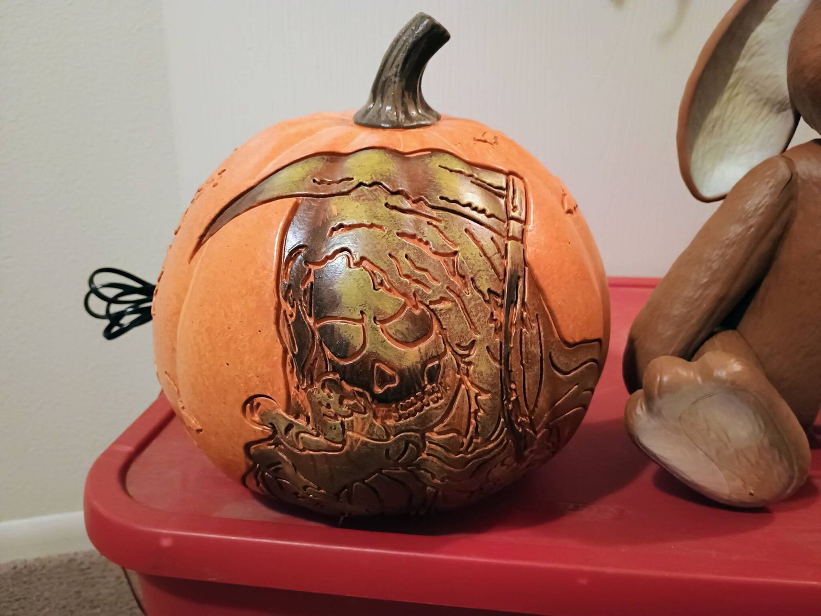 Two sided pumpkin (battery) and happy face pumpkin (AC) lights.