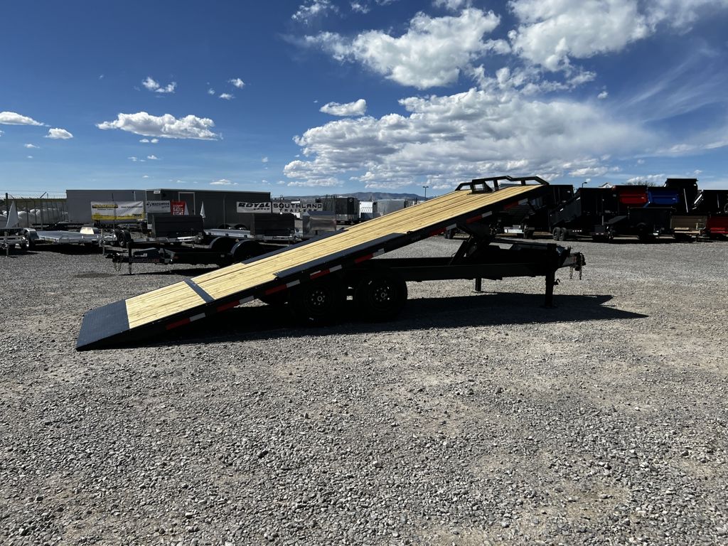 Stock #: RM1807 Trailer Specs: Color: Black Powdercoat Overall: Length: 26'8" Width: 8'6" Interior/Bed: Length: 22' Width: 8'6" Weight: 5,200 lbs. GVWR: 14,000 lbs. Payload: 8,800 lbs. Axle(s): 7,000 lb. Dexter Torsion Braked Axle w/ EZ Lube Hubs Tire/Wheel: ST235/80R16 Load Range E Coupler: Type: Bumper Pull Size 2 5/16" 7-Way 12V Connector 8"x12lb I-Beam Main Frame 3" Channel Cross-Members 16" OC 5 Year Dexter Axle Warranty 3 Year Structural Warranty 1 Year Limited Warranty Trailer Includes Following Options: 14 Ply LR-G Tire Upgrade Standard Features: Power Up/Down Hydraulic Tilt 6" Oval Flush Mounted Deck Lights 2" Treated Wood Deck Adjustable Coupler All-Weather Wiring Harness Dual 10K Drop Leg Jack Safety Chains Breakaway System w/ Charger LED DOT Approved Lights Powdercoated WASATCH TRAILER SALES - LARGEST TRAILER SELECTION IN UTAH Springville: (801) 528-1581 1180 S 2000 W, Springville UT, 84663 View More Inventory: www.wasatchtrailer.com