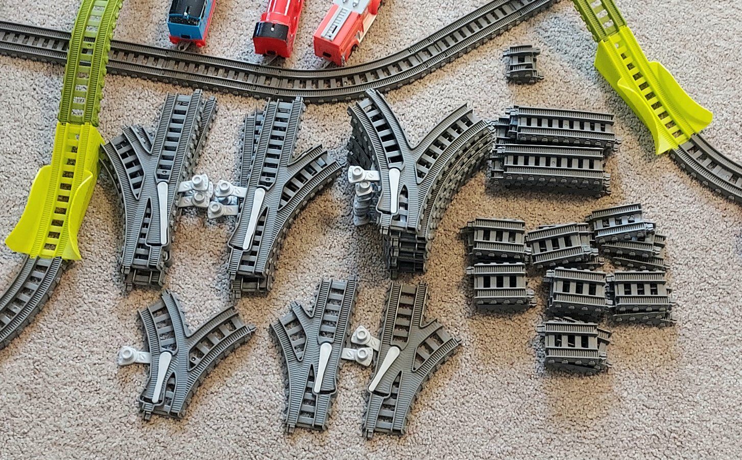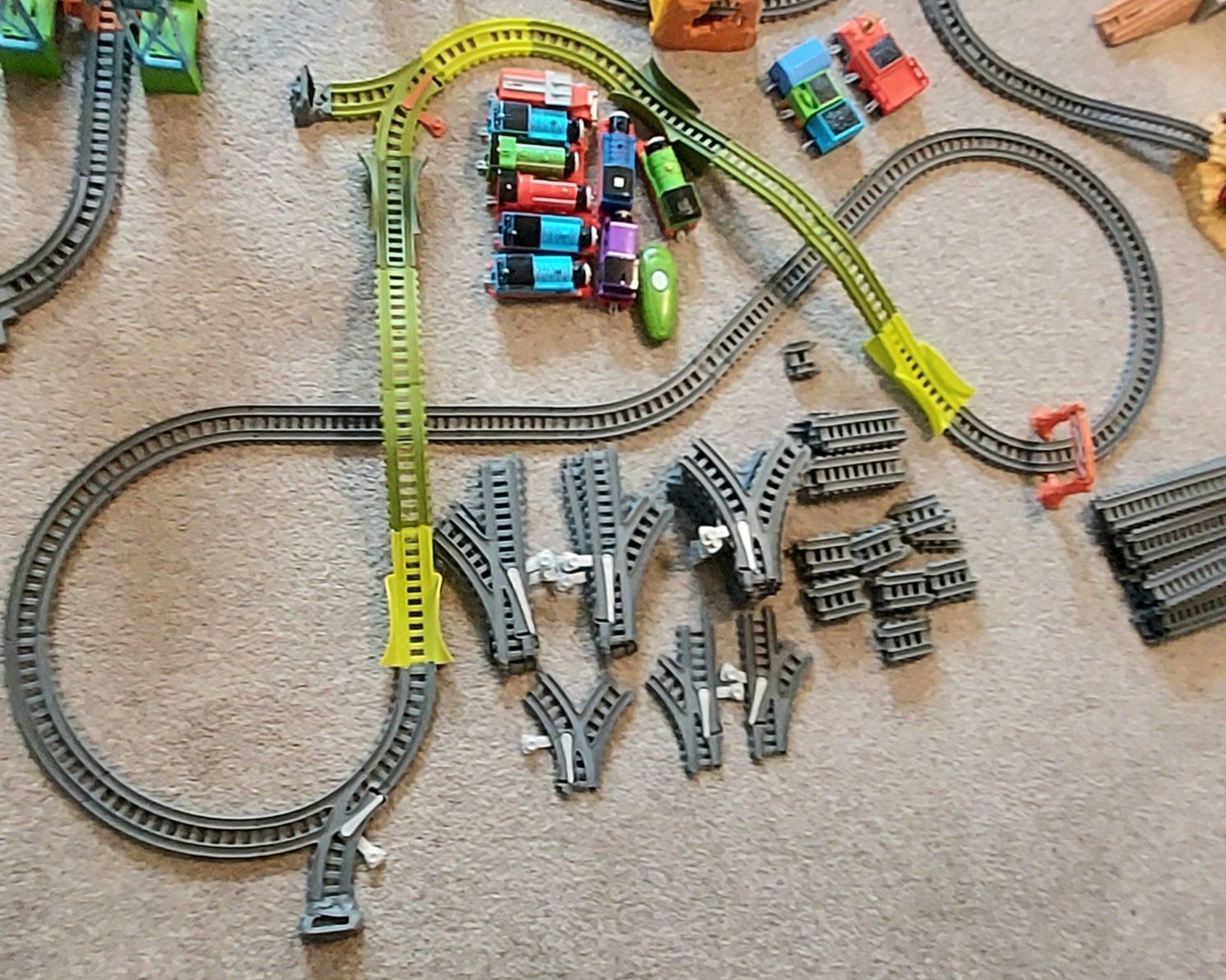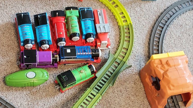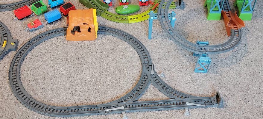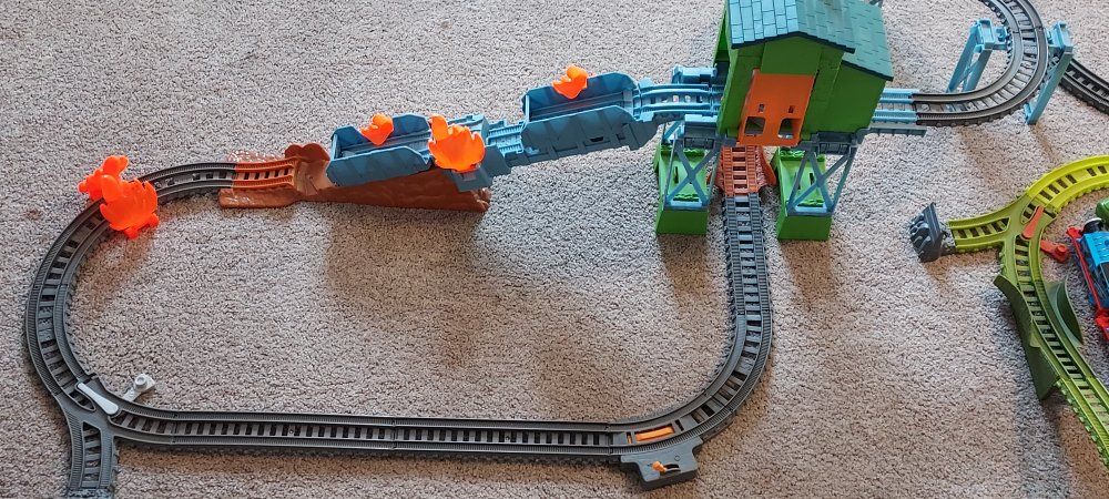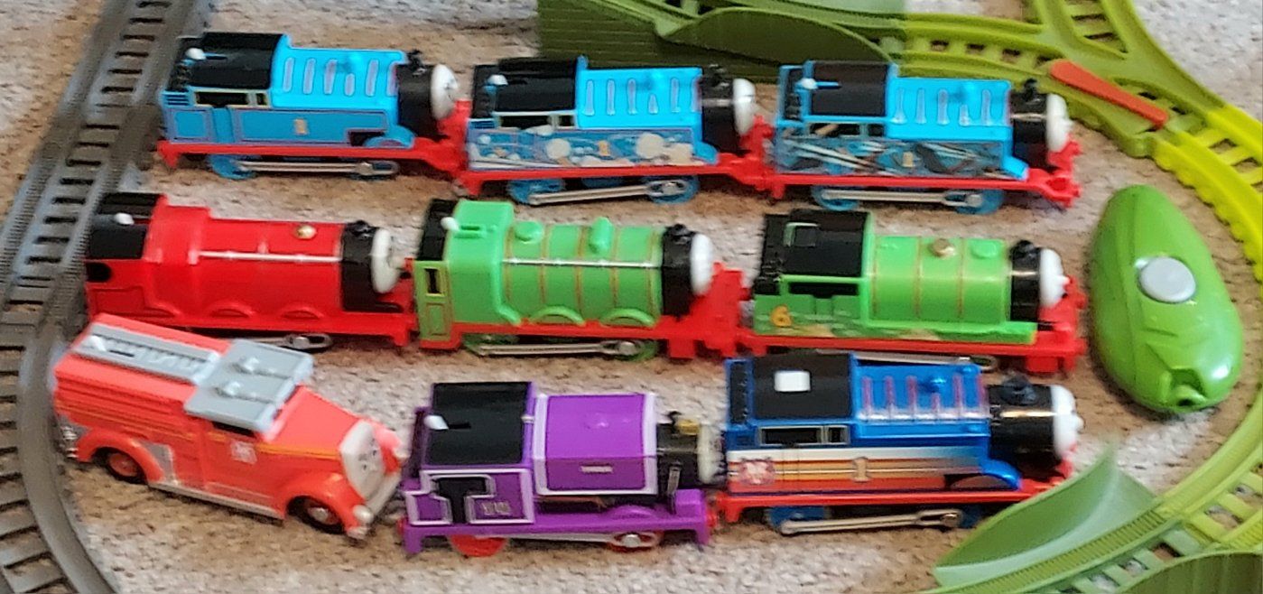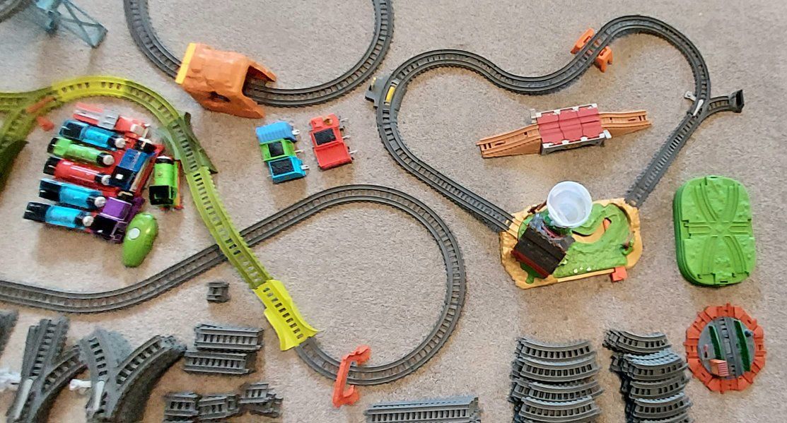 Thomas Trackmaster train sets & trains. There is Switchback Swamp, Fiery Resque, Twisting Tornado, Brave Bridge Collapse, Thomas Tunnel, Tidmouth Turntable, 10 trains including a rare Thomas steam train that still works and steams, 9 of the trains are working and 1 is not, 4- bucket lid tops and 147 extra track pieces. selling as one big lot only. Most everything from 2014. Excellent condition. The Fiery resque is discounted and sells used up to 80.00 by itself Please message or text me with any questions, thanks