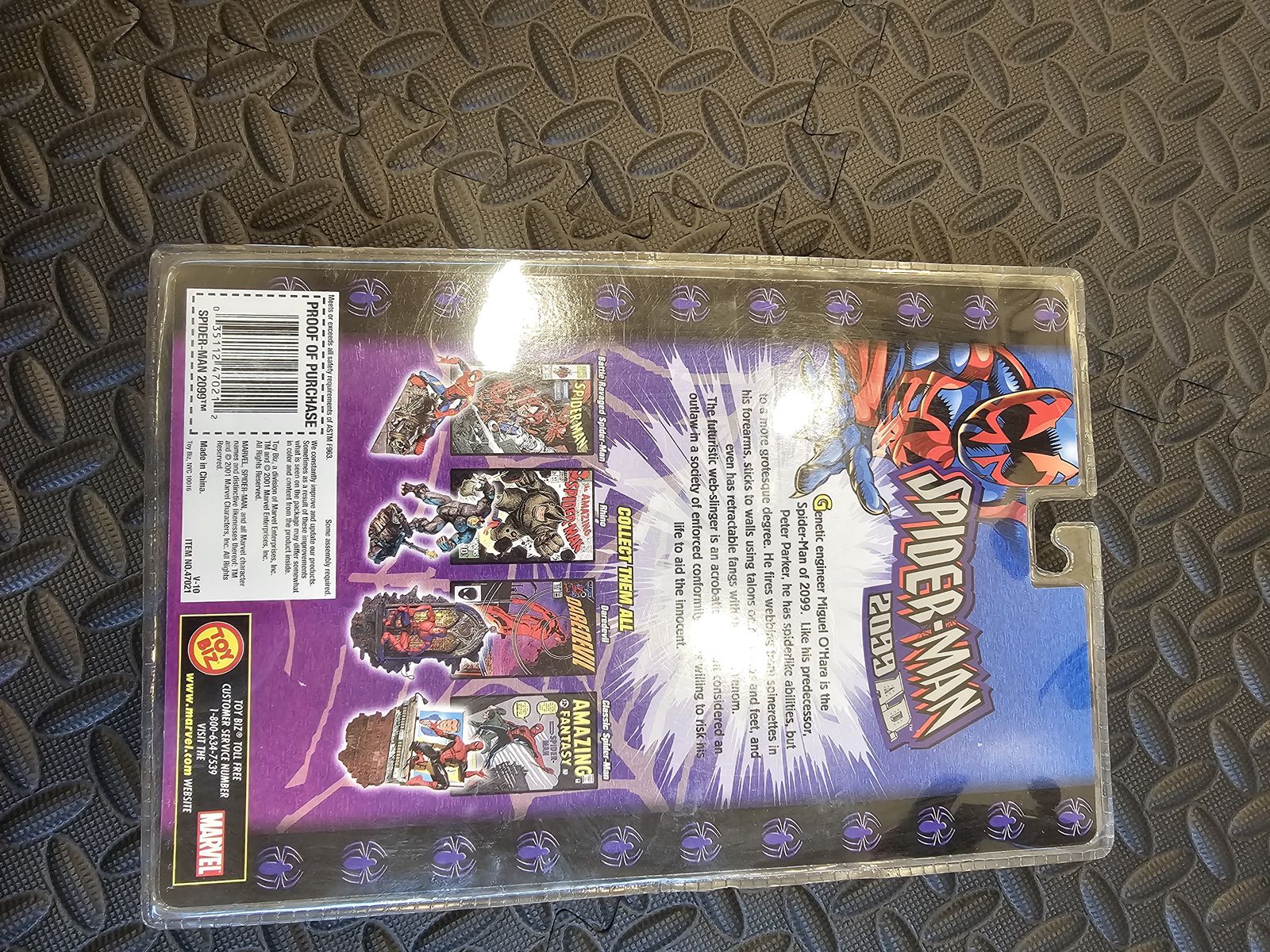 ZelleToy Biz Spider-Man Classics Spider-Man 2099 Action Figure sealed with comic. The card/packaging shows some signs of storage wear. Can provide more photos if needed.