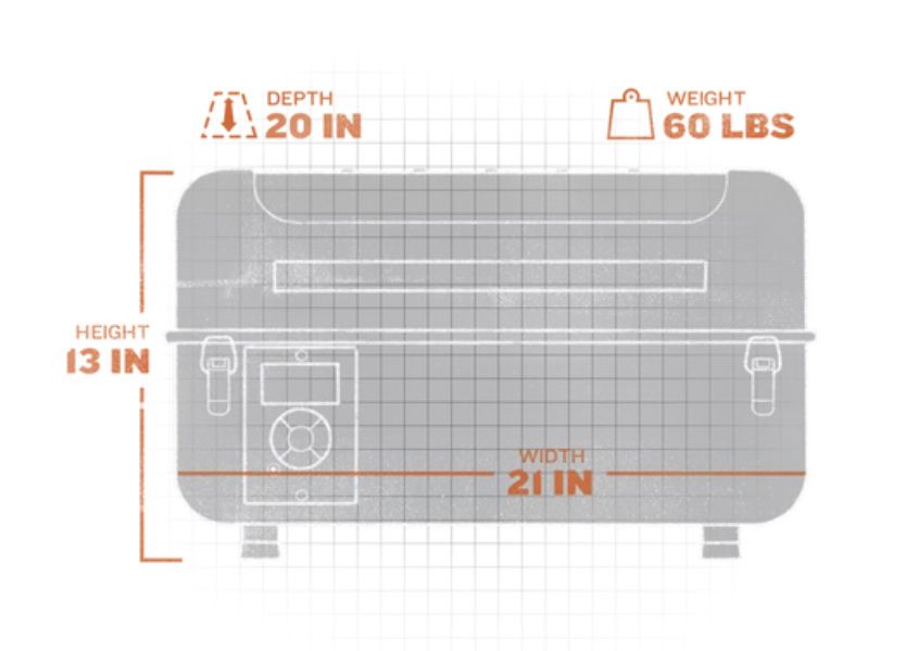 Versatile temperature range, from a low and slow "smoke" setting to 450°F, allowing you to smoke, bake, and sear just about anything 176 sq. in. total cooking space Included cast iron griddle to get a perfect sear Easy to clean porcelain coated steel grates Bring your electric-powered wood-pellet grill to life by plugging in the included 6ft. AC power cord to the nearest outlet 8 lbs. pellet hopper capacity 120V AC voltage and 250 watts for quick heat-up and consistent temp control This grill is not equipped with WiFIRE® connectivity One included Traeger meat probe makes checking internal meat temps simple Total weight 60lbs