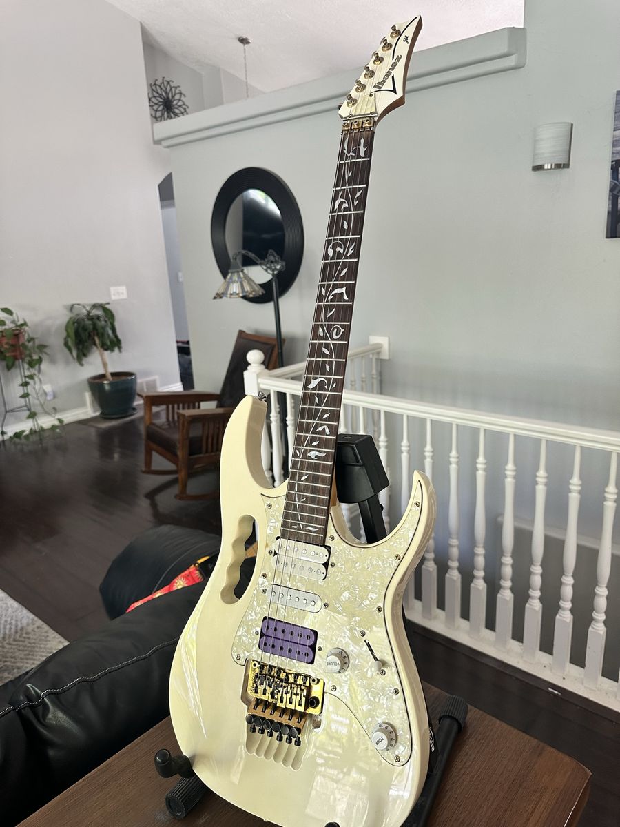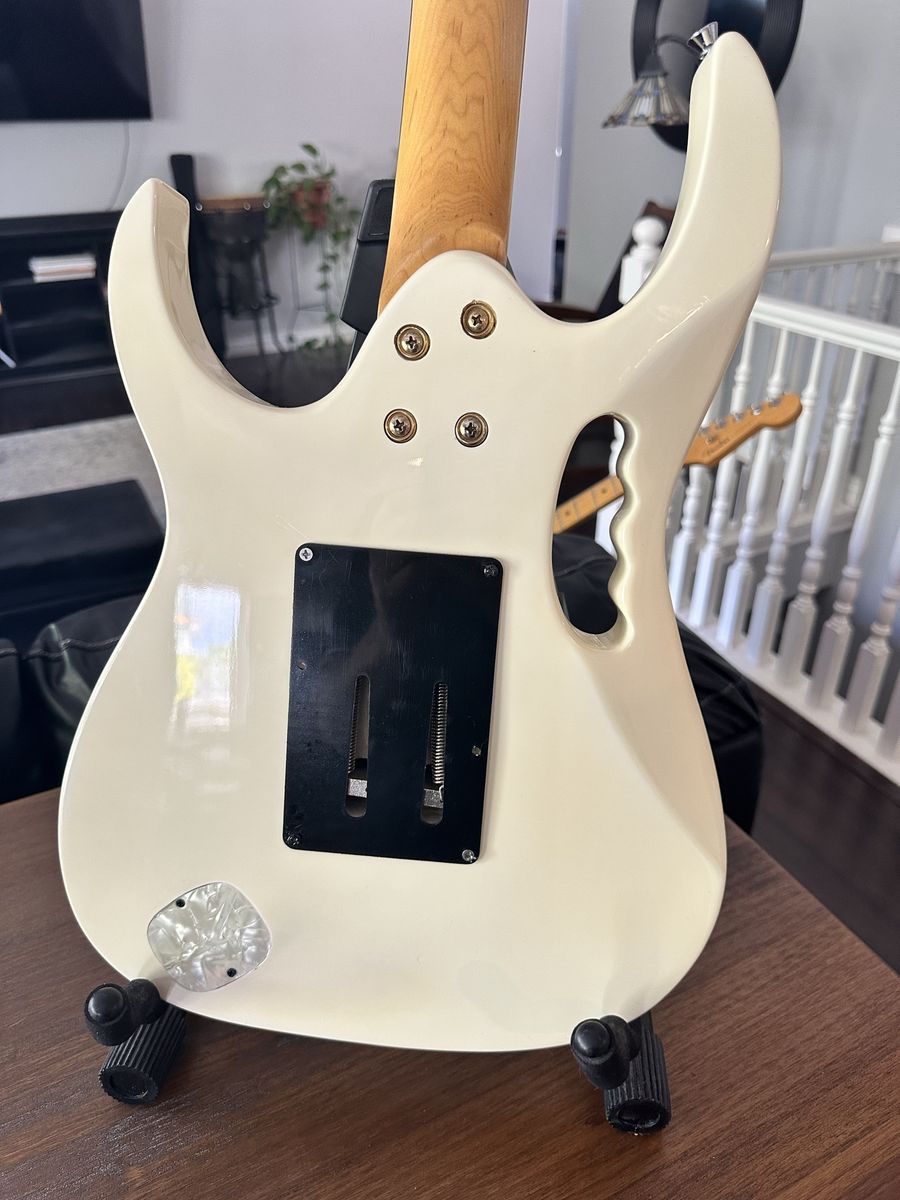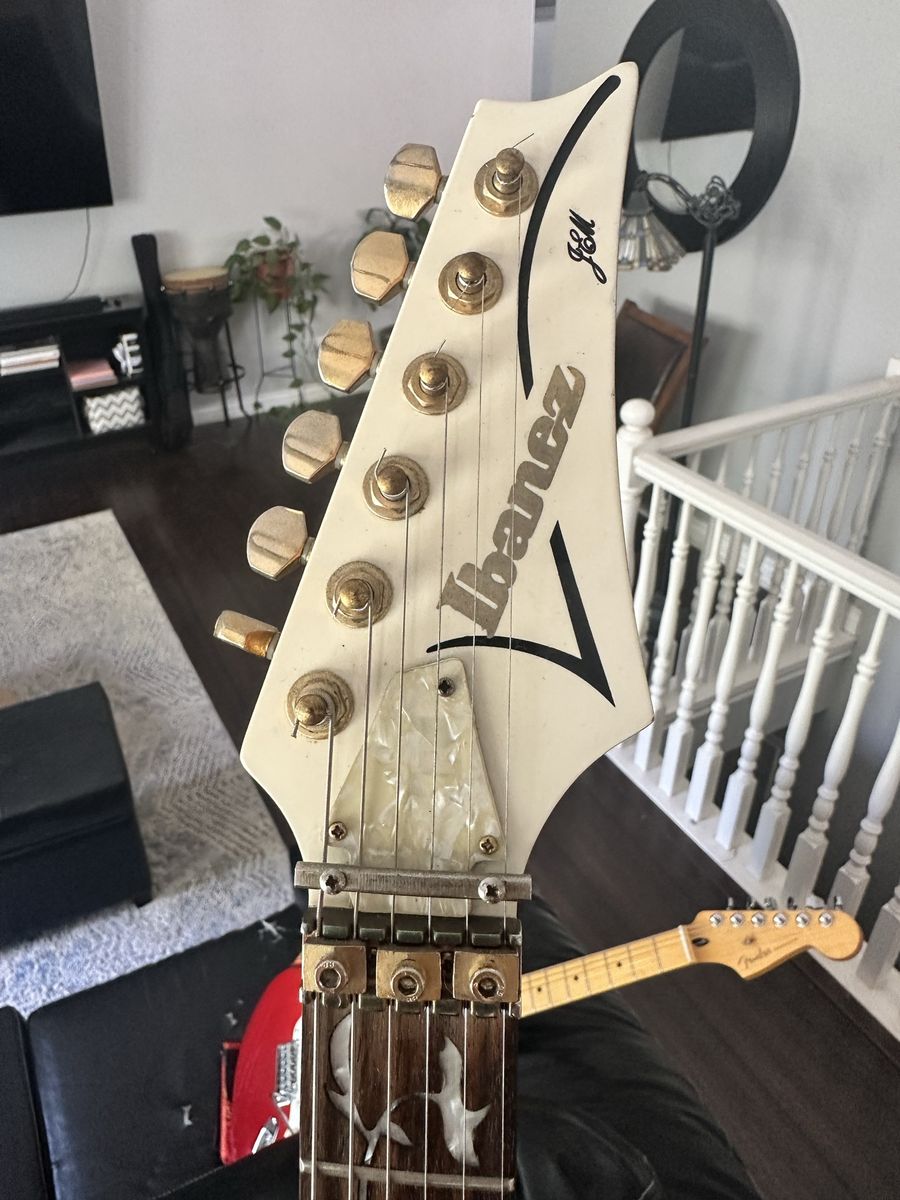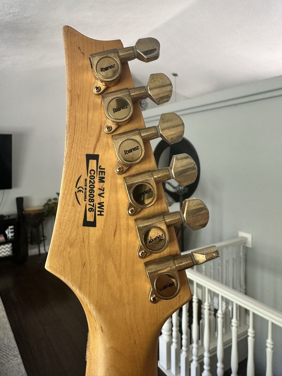 ApplePayI just did some research on this guitar. There’s another Guitar on Reverb with the exact same serial number… So this isn’t fake. Probably made in China even though the sticker says it was made in Korea. There are several differences, but This is a killer Guitar! Off-white jem 7V with Floyd Rose locking Trello system. It looks like someone has swapped out the bridge pick up. Place is great! Looks great! Just know that it is a knock off and enjoy it! Great price!