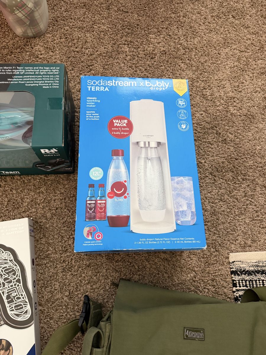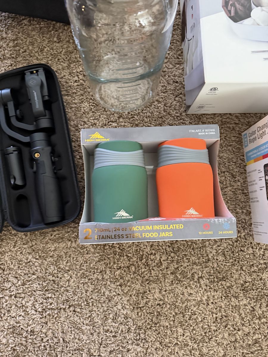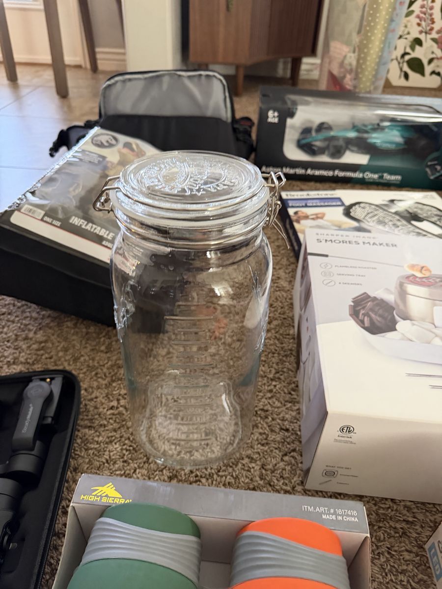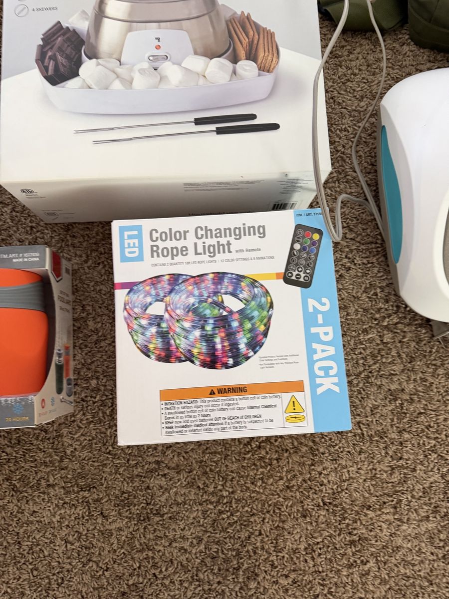 Brand new rope, lights and food, storage jars, and soda maker, brand new s’mores table kit.