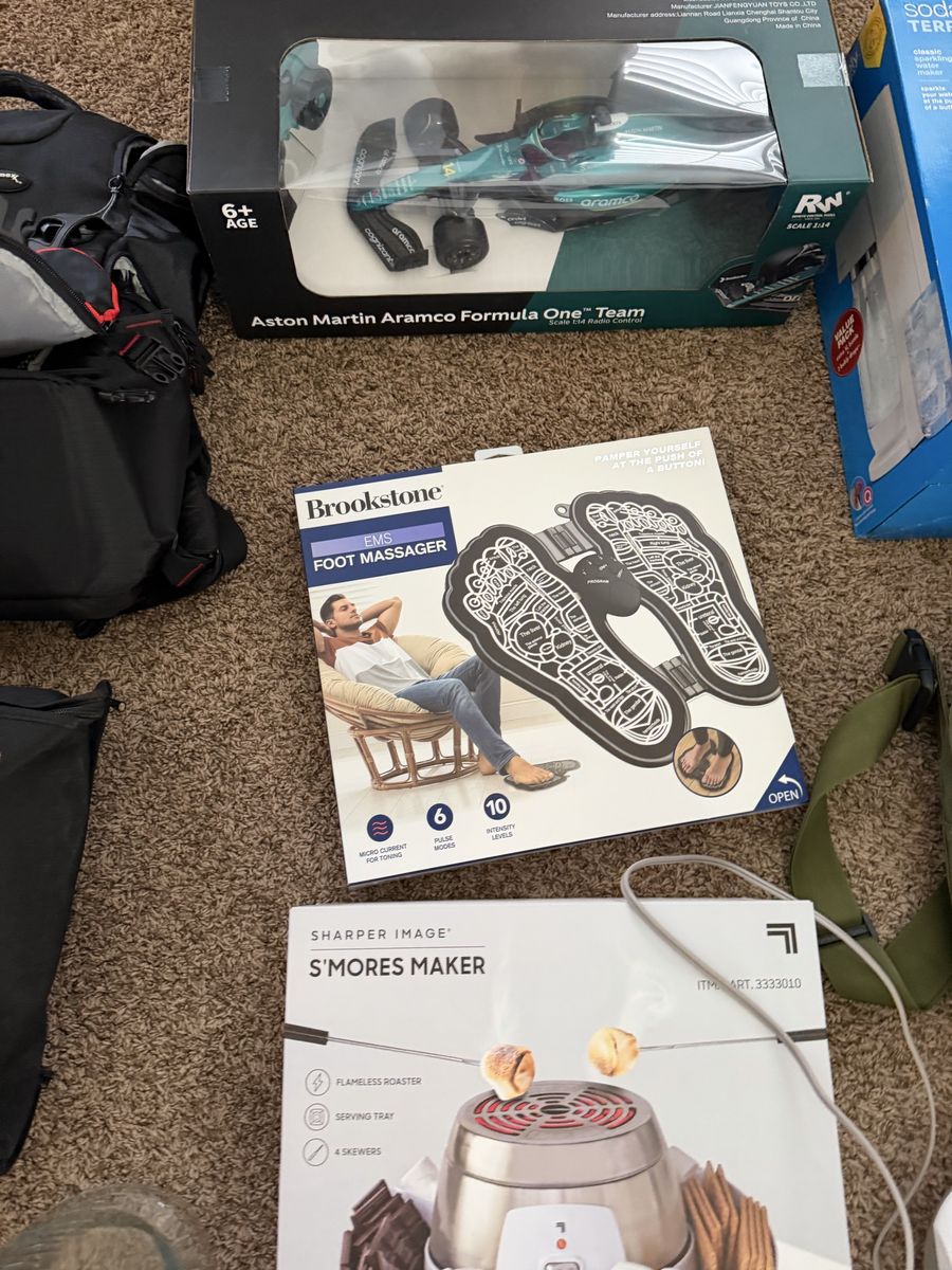 brand, new remote, control car and then Some used stuff like the max expedition bag that was $200 new and is essentially new along with the costume which was worn for a five minute video and then there’s the foot massager thing that’s like 80 or 90 bucks and I think that was used about a dozen times with an OCD foot person so it’s super clean