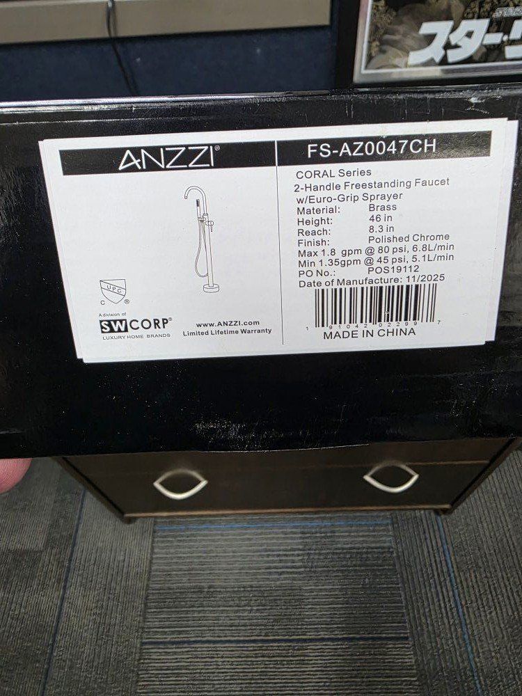 PayPalBrand New. This ANZZI FS-AZ0047CH is a Coral Series floor-mounted, 2-handle freestanding bathtub faucet in polished chrome, featuring a swan-like spout and a matching hand shower. It includes a single-handle lever, a diverter, and is Rhino Alloy-certified for durability with a flow rate. It offers a modern, high-arch design suitable for freestanding soaking tubs.