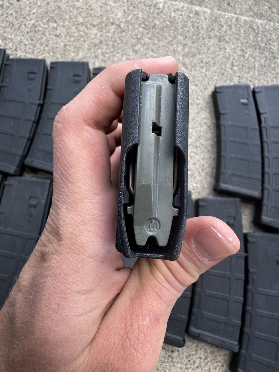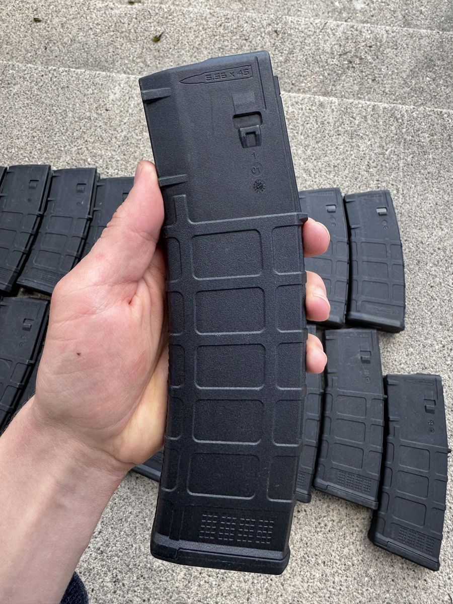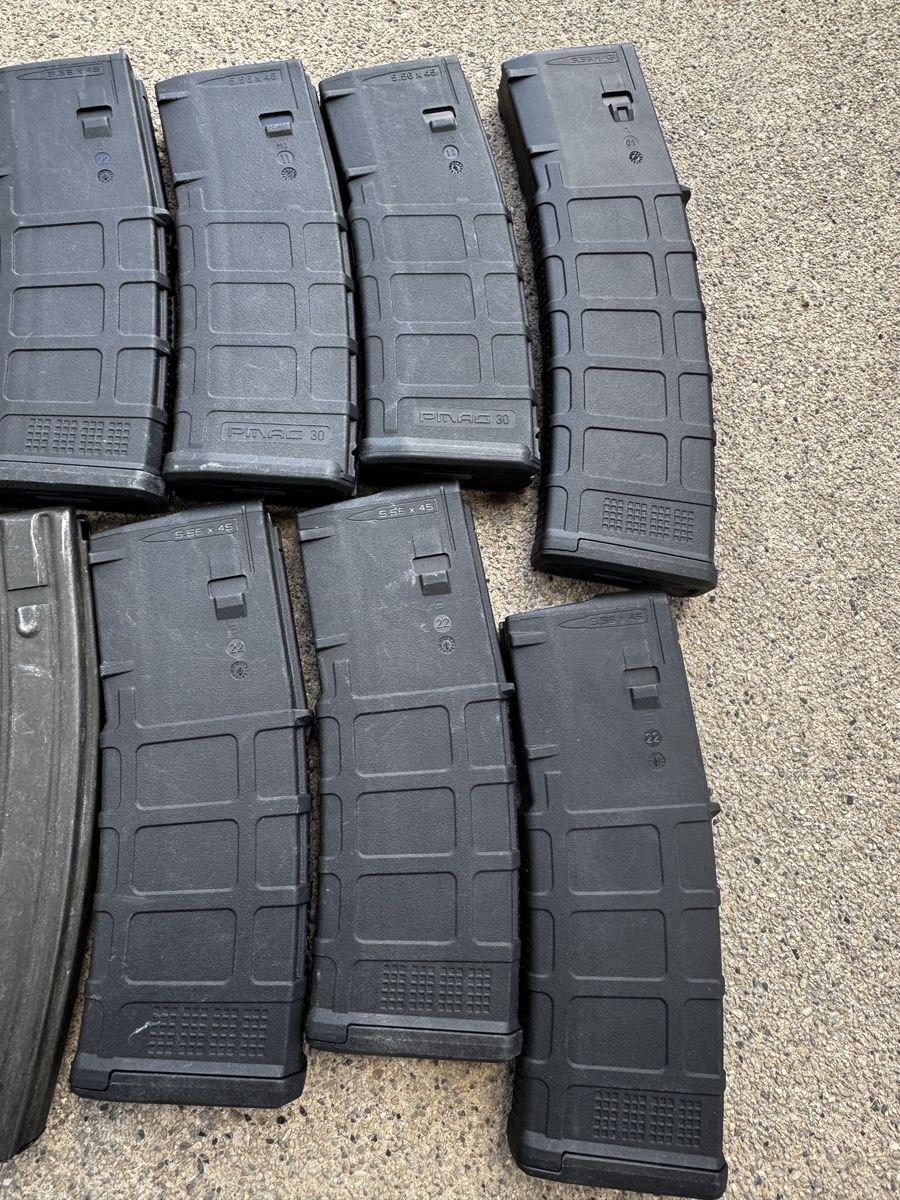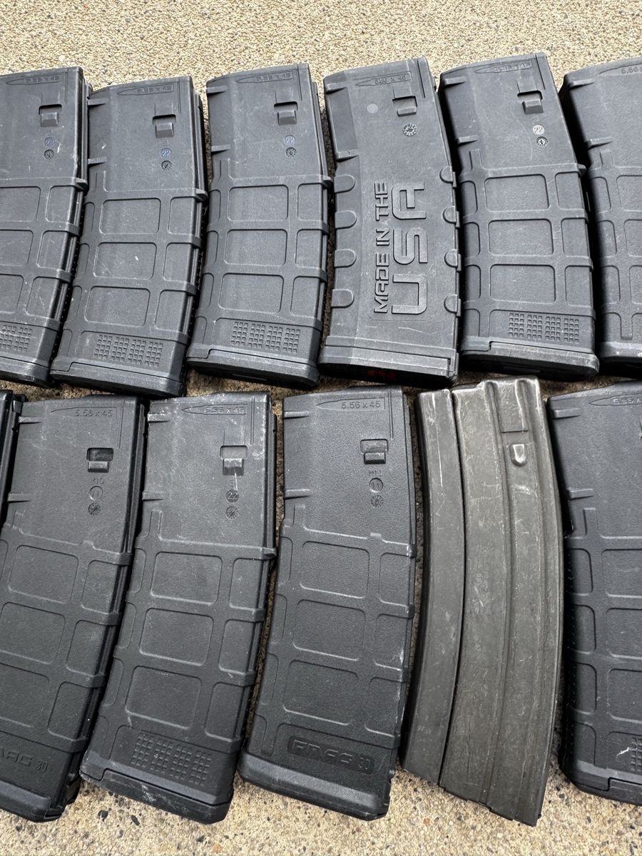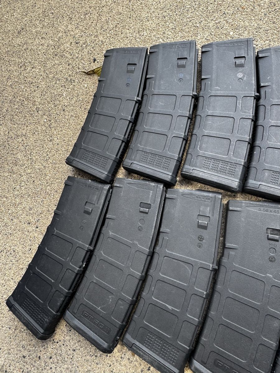 All mags are used but in good functional condition. Mix of Gen M2 and Gen M3 PMAGs. One mag has a metal/aluminum body (visible in photos).