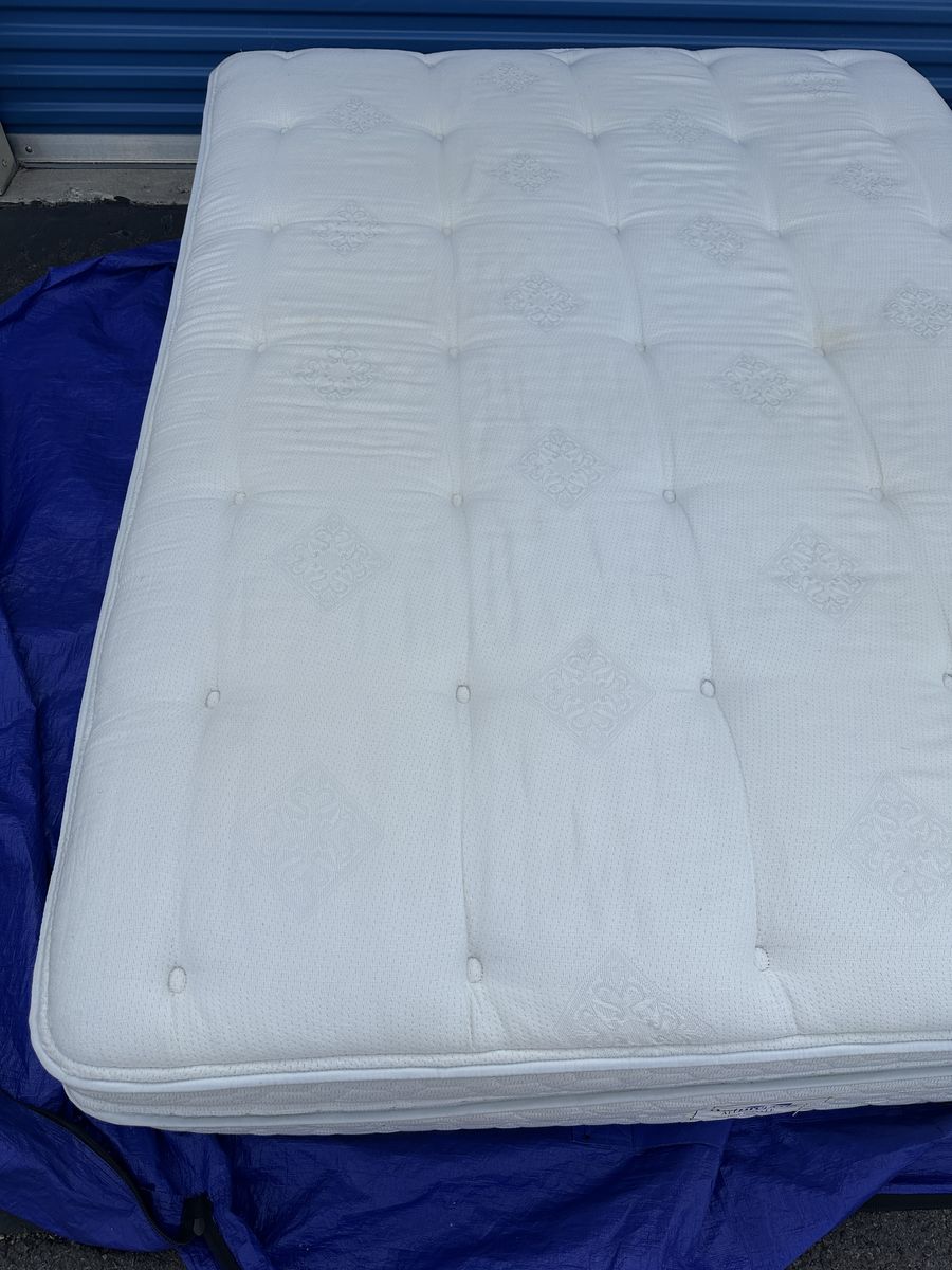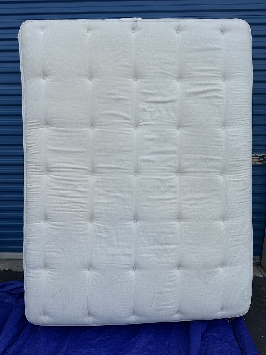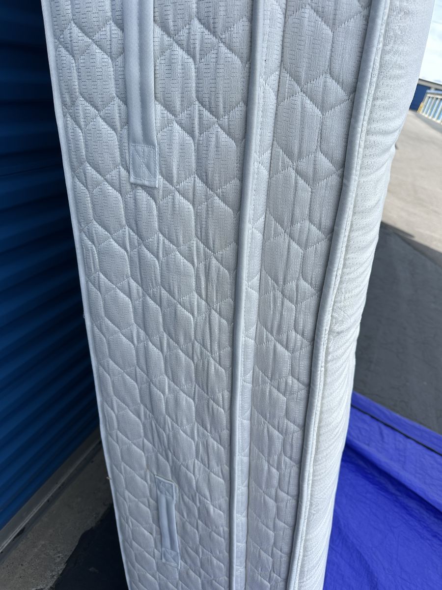 Check out this comfortable 15” Sealy Posturepedic queen mattress. Overall, it is in good condition. There are some noticeable signs of imperfections, marks on the side from moving, some surface wear from use on the front of the mattress, some signs of use, etc.