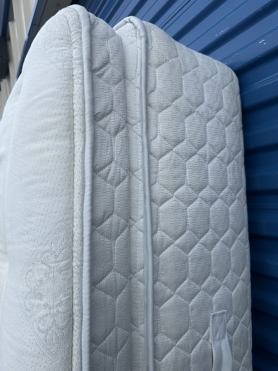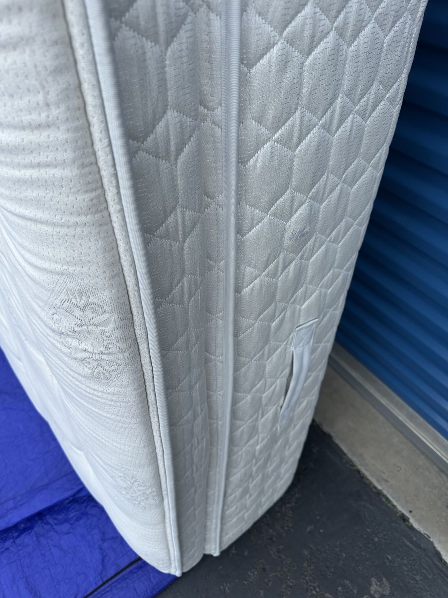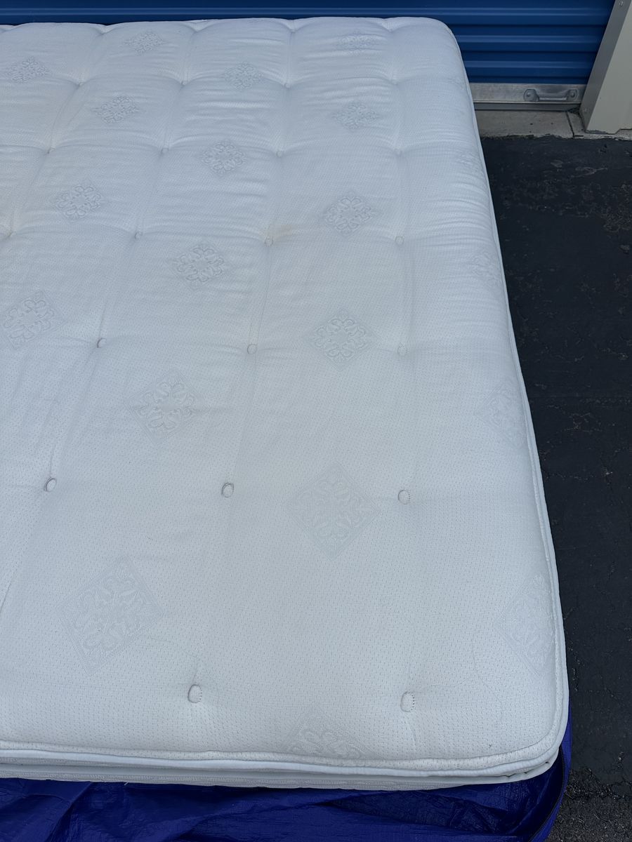 Check out this comfortable 15” Sealy Posturepedic queen mattress. Overall, it is in good condition. There are some noticeable signs of imperfections, marks on the side from moving, some surface wear from use on the front of the mattress, some signs of use, etc.