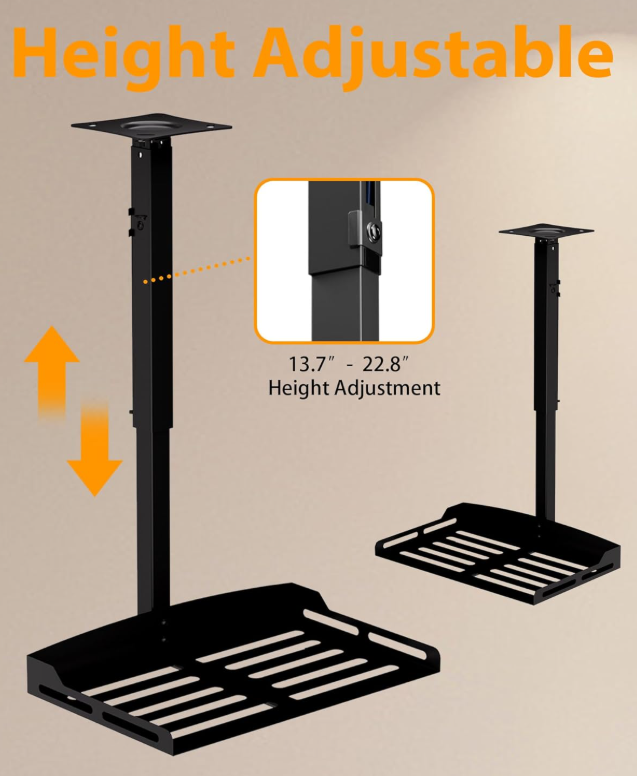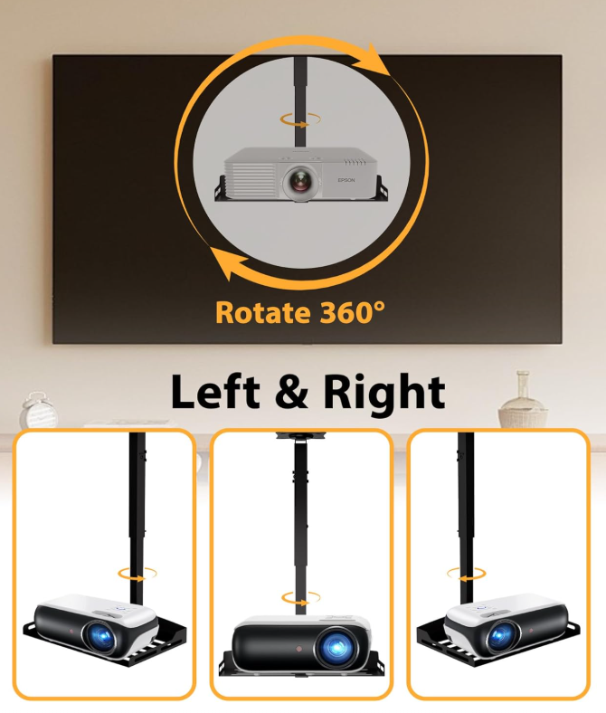 Adjustable Height for Ideal Positioning: Easily customize your projection angle with a telescopic height range from 13.7" to 22.8". Whether used in low or high ceilings, this mount helps you align the image perfectly with any screen size or room layout.