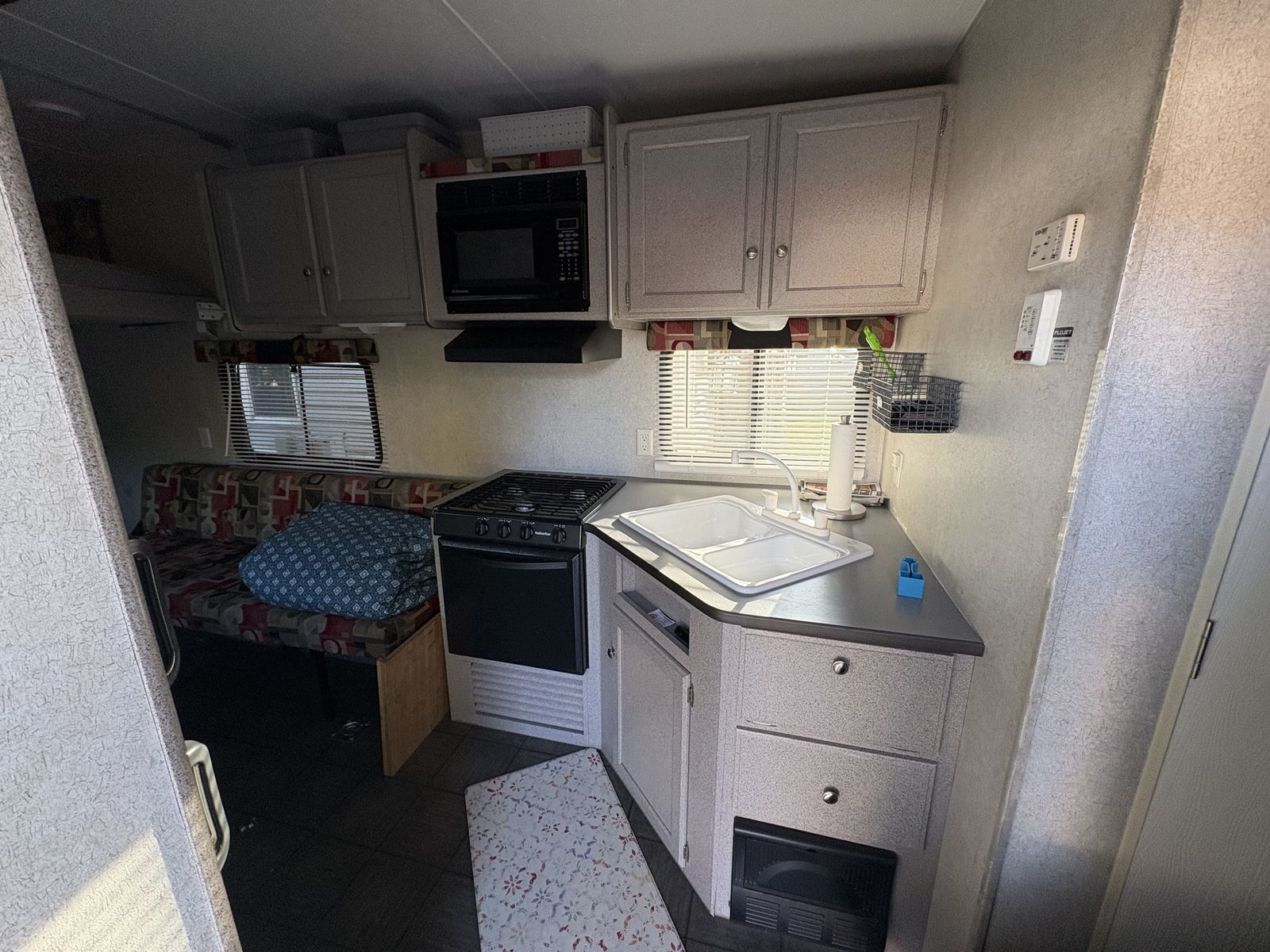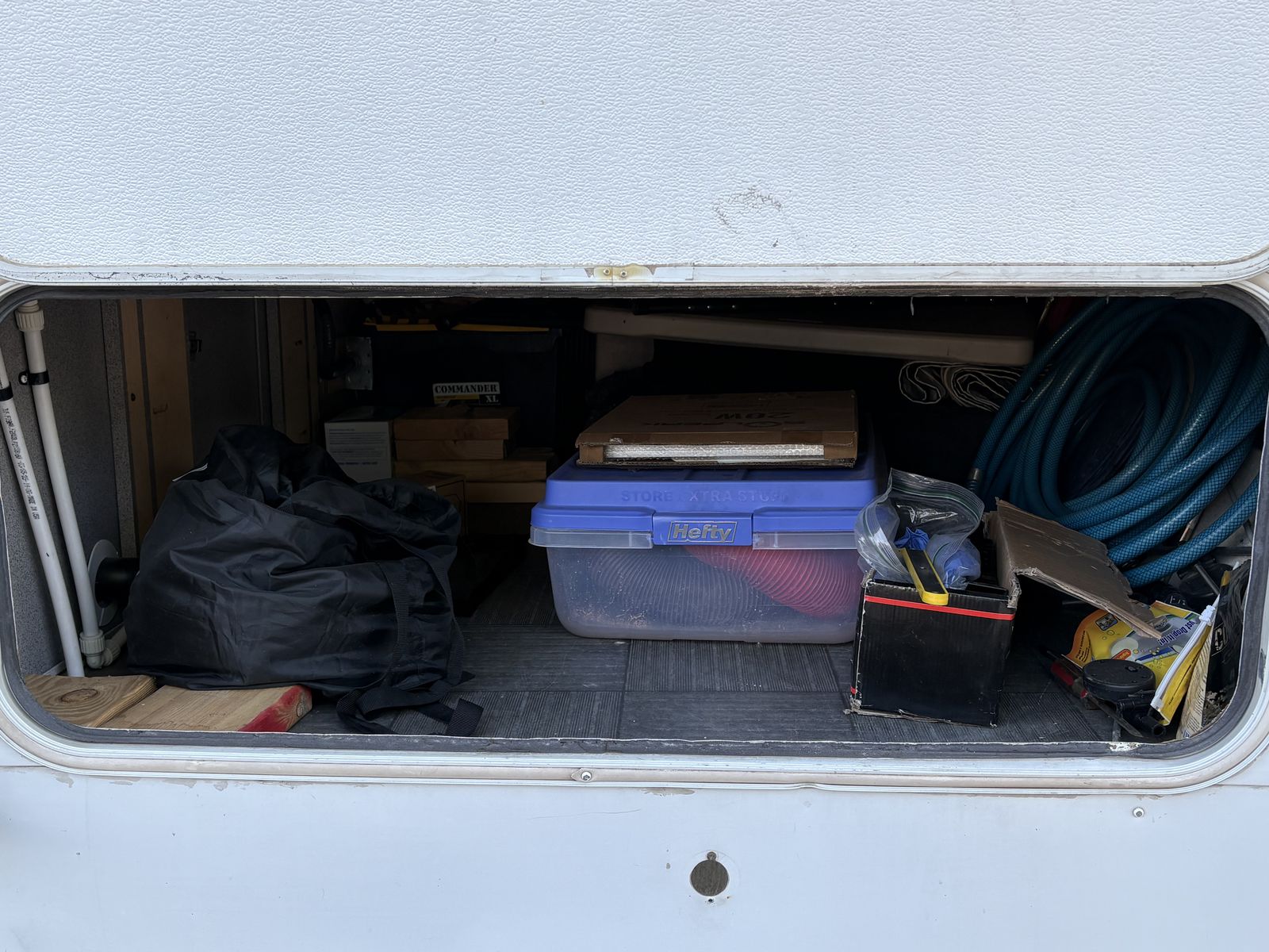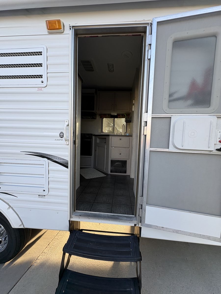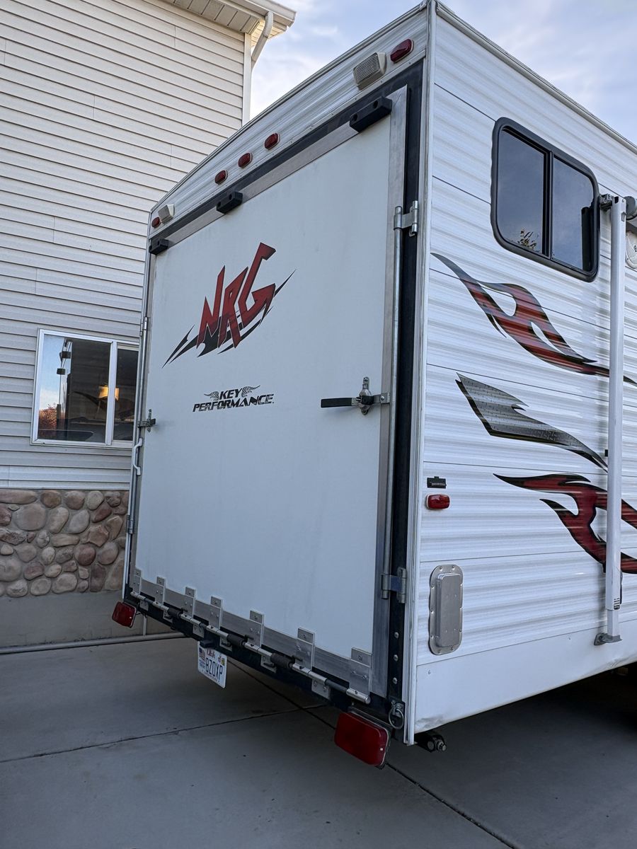 Well taken care of 8x27ft. toy hauler. We hauled 2 Harley motorcycles 2, 2x3 totes with helmets, coats and cooler plenty of room. Onboard generator, onboard fuel, anti sway hitch, trailer cover. Everything works!