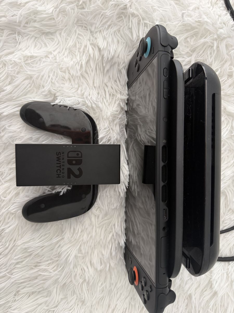 Practically brand new Nintendo Switch 2 in pristine condition and fully functional with zero issues. Console has been extremely well cared for with no cracks, scratches, or cosmetic damage anywhere. Works flawlessly and is ready for its next owner. Includes all original cords, docking station, and both controller grip handles/attachments that slide onto the system for comfortable gameplay. Perfect for anyone wanting a like-new setup without paying full retail price. Serious buyers only.