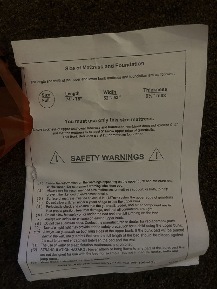 Note: we have the original directions for assembly. I will need a day or 2 to take the bunk beds down