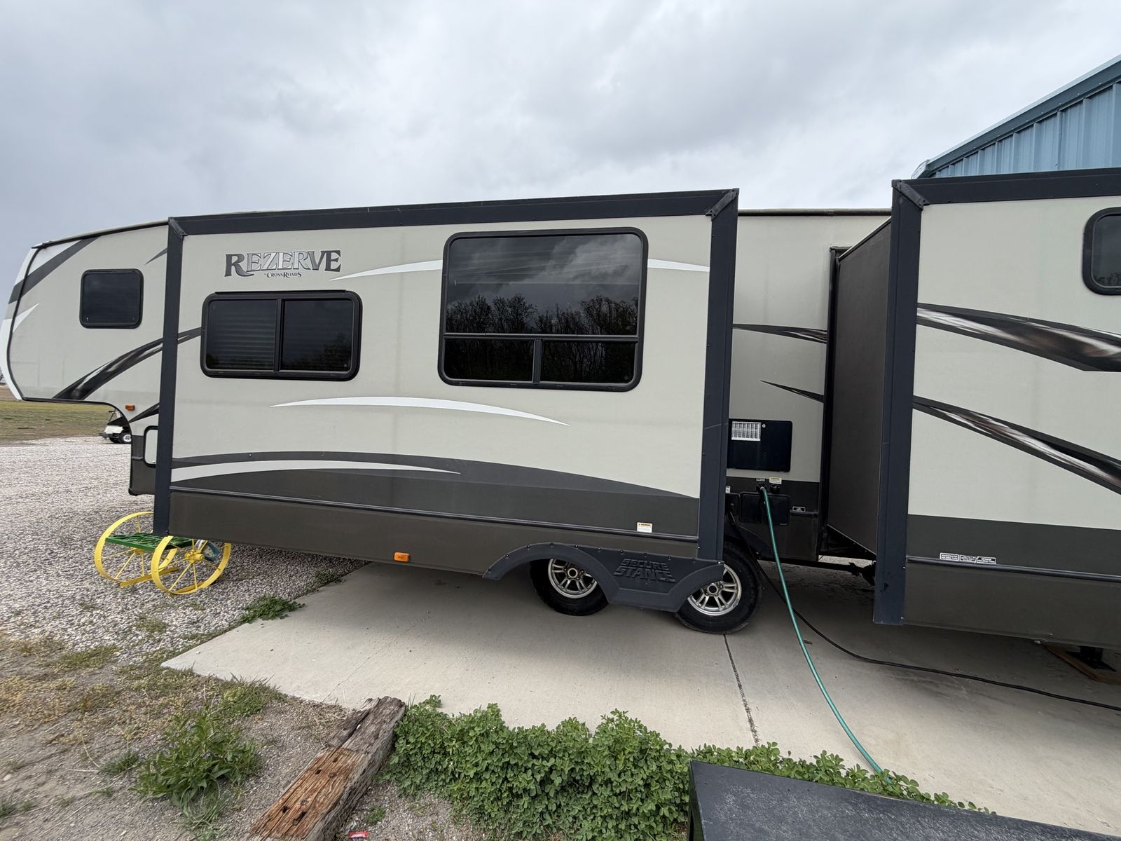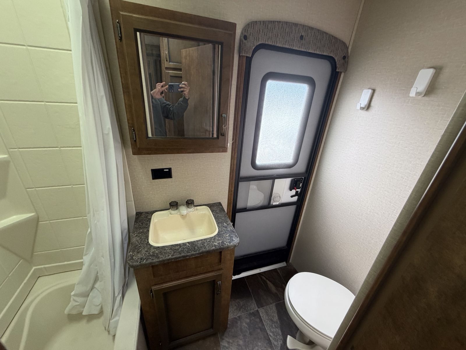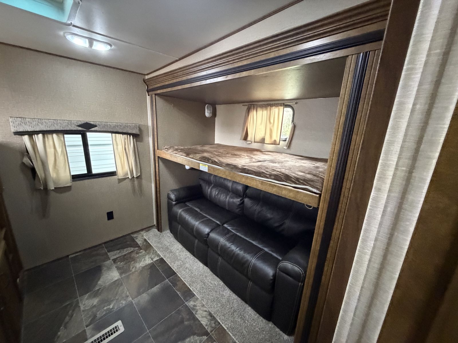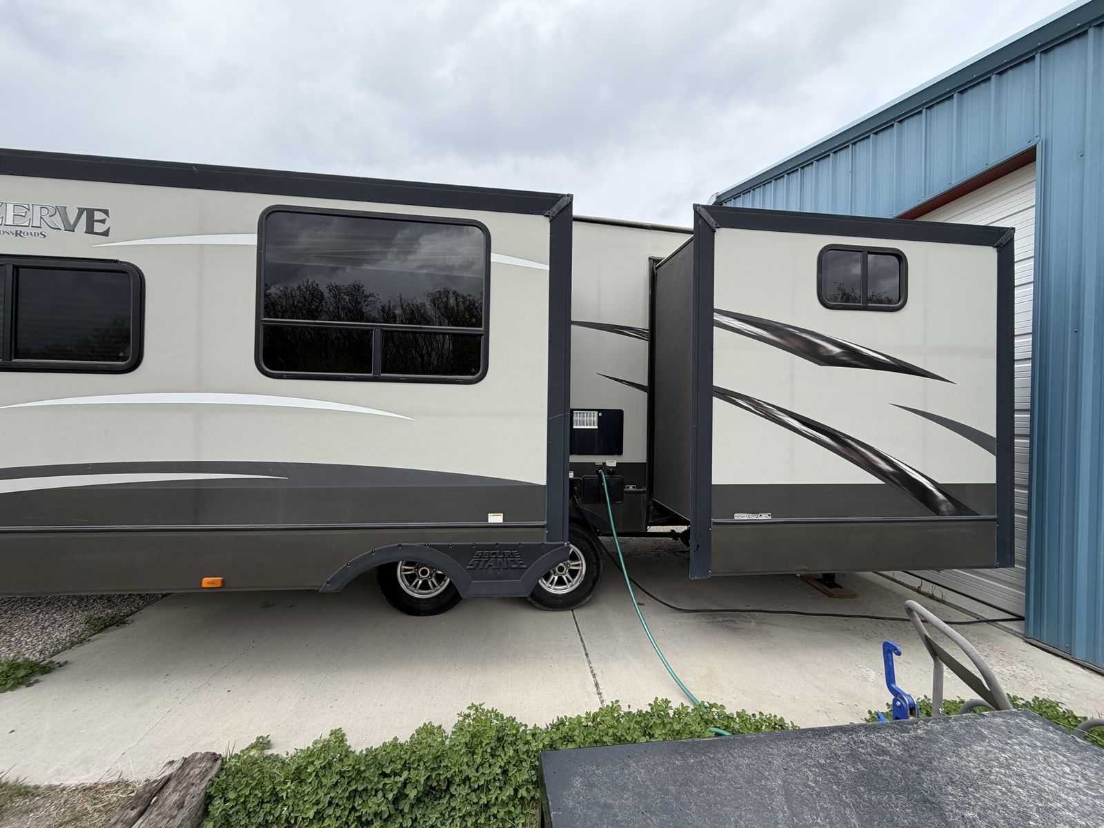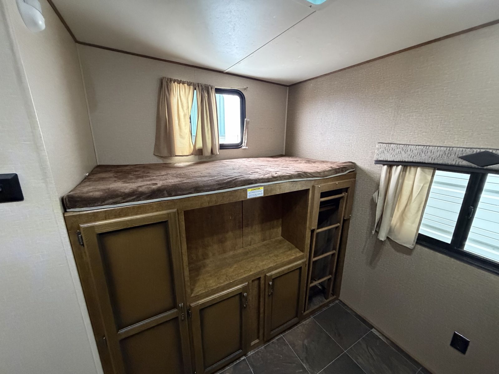 This is a Crossroads Reserve 31BH. It has a queen bed up front and 3 bunks in the rear. U shaped table that turns to a bed and a couch that turns to a bed in the living room. A small bathroom and shower/tub. The camper is in fantastic shape. The tires are in great shape. We’ve owned it for about a year and we’ve only taken it out once. We bought it from the original owner. Everything works as it should. Two tip outs. Two entry doors.