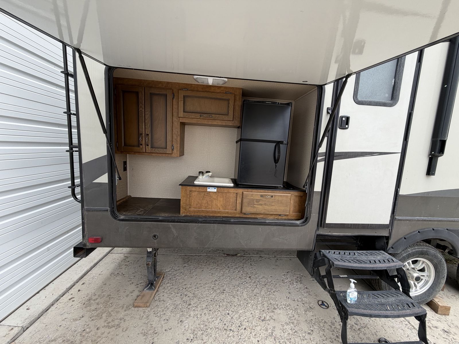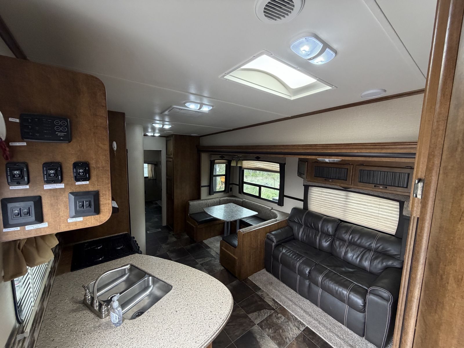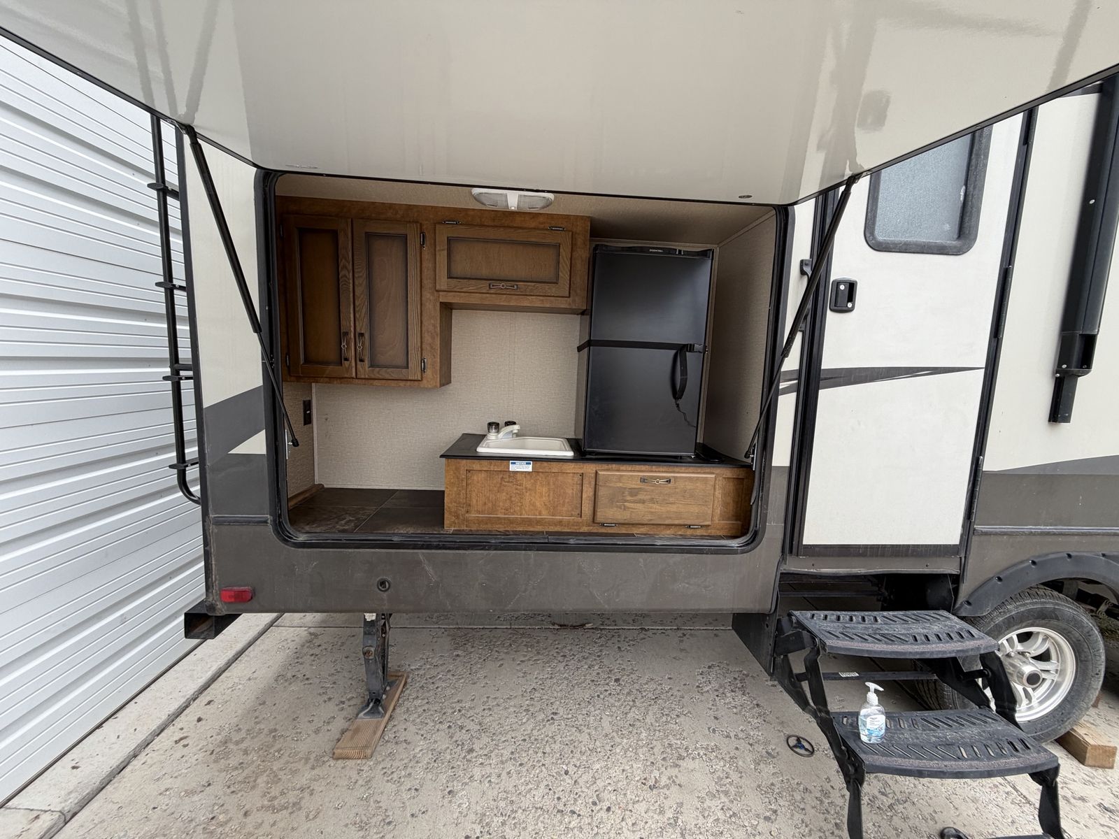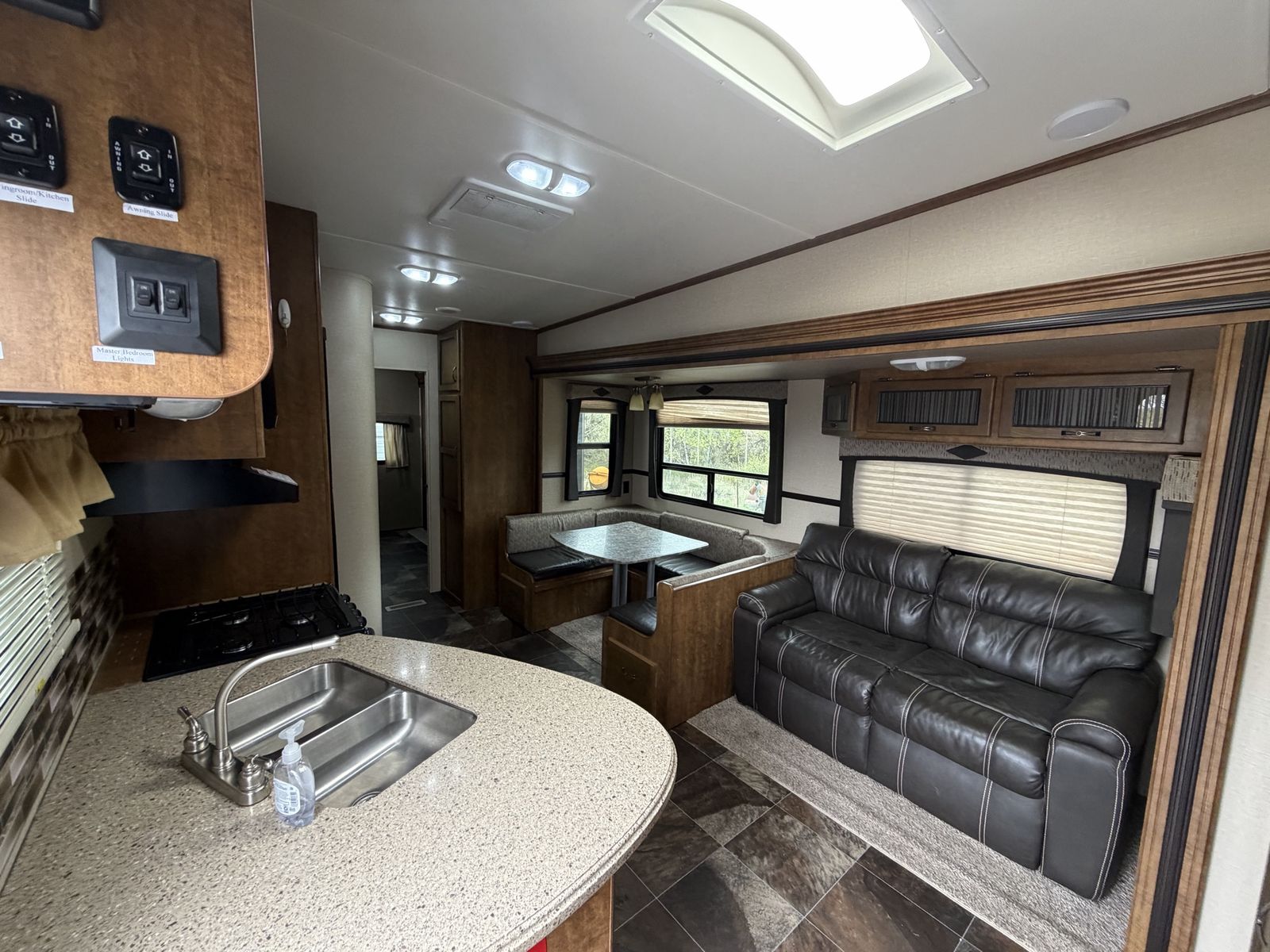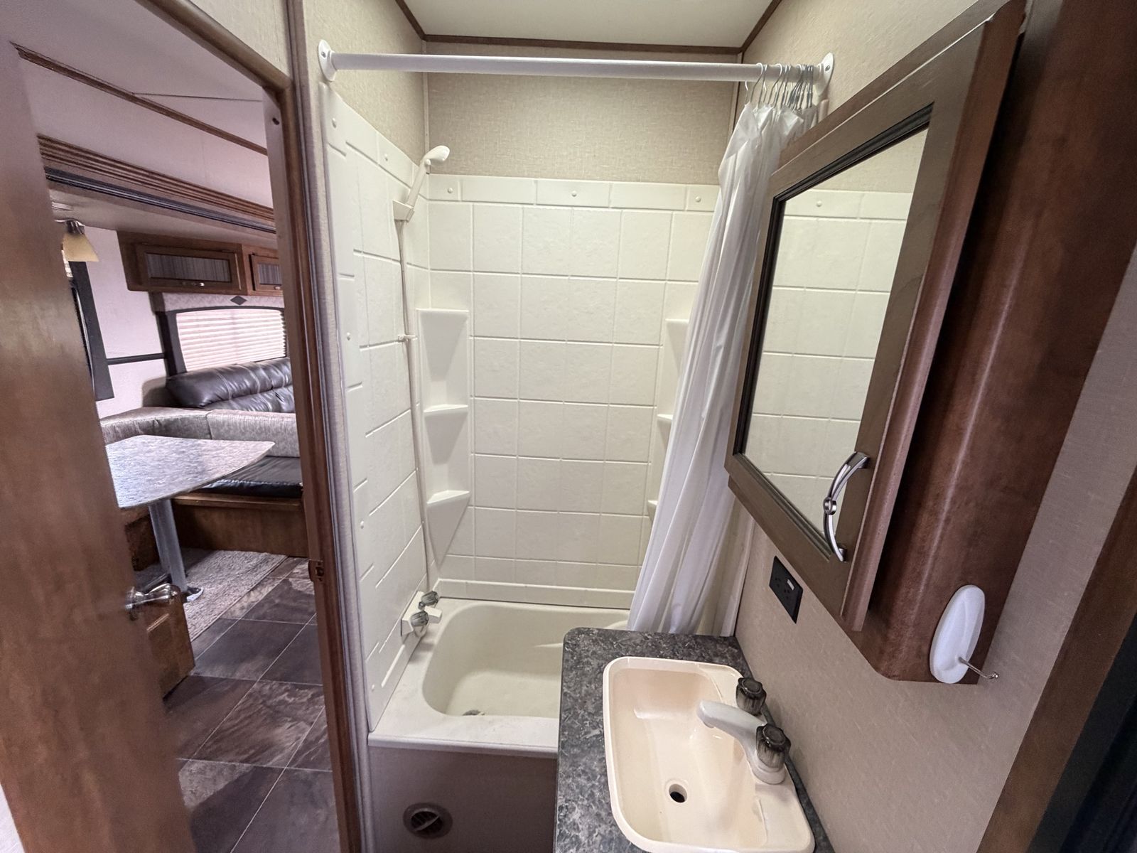 This is a Crossroads Reserve 31BH. It has a queen bed up front and 3 bunks in the rear. U shaped table that turns to a bed and a couch that turns to a bed in the living room. A small bathroom and shower/tub. The camper is in fantastic shape. The tires are in great shape. We’ve owned it for about a year and we’ve only taken it out once. We bought it from the original owner. Everything works as it should. Two tip outs. Two entry doors.