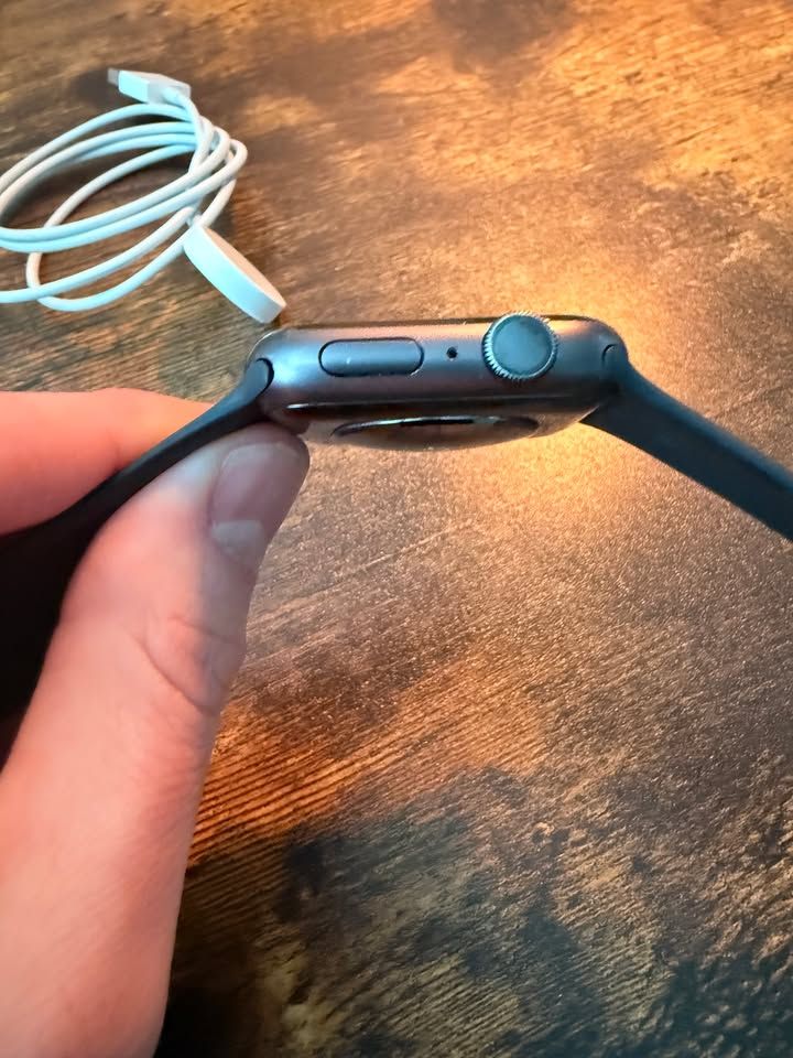 Battery makes it throughout a normal day. Comes with charging cable, but no power brick as the new watches do not include one.