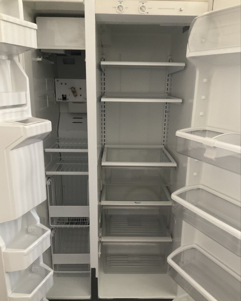 Whirlpool Side by Side Still works. We just remodeled our entire kitchen and went stainless, so we have no more need of this Fridge anymore. The Ice Maker has never been hooked up, so it should work like new. Perfect for in the garage or the basement if you ever wanted a second Fridge/Freezer. The color is a creme color. Bring a friend and come and get it. FREE