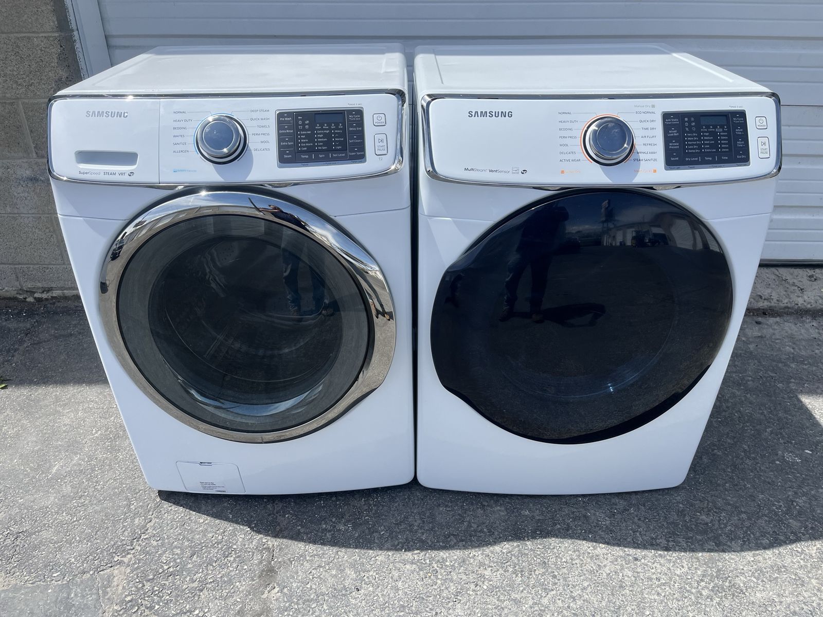 For sale this great nice and clean Samsung front loader electric set both of this machines are in good condition and work with no problems they’re both loaded with all the bells and whistles,feel free to call or txt with any questions (801)695-0314 I can deliver for free on the SLC area,thanks for looking.