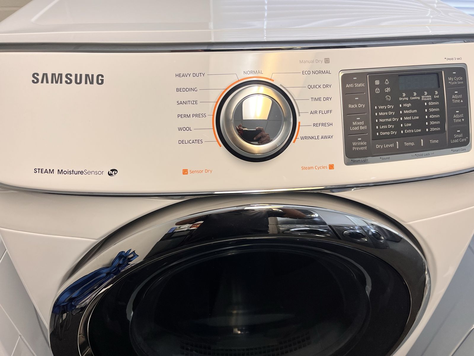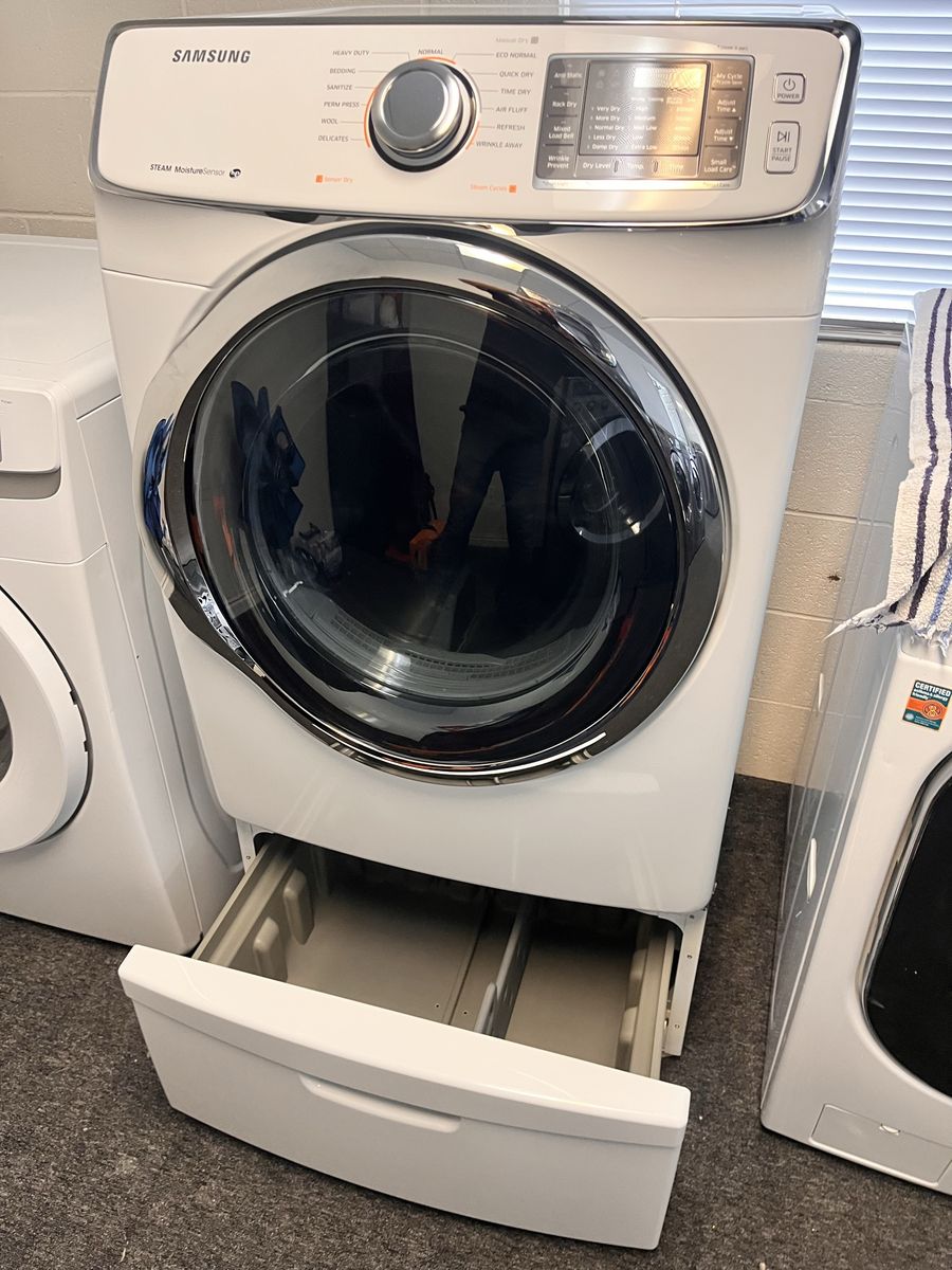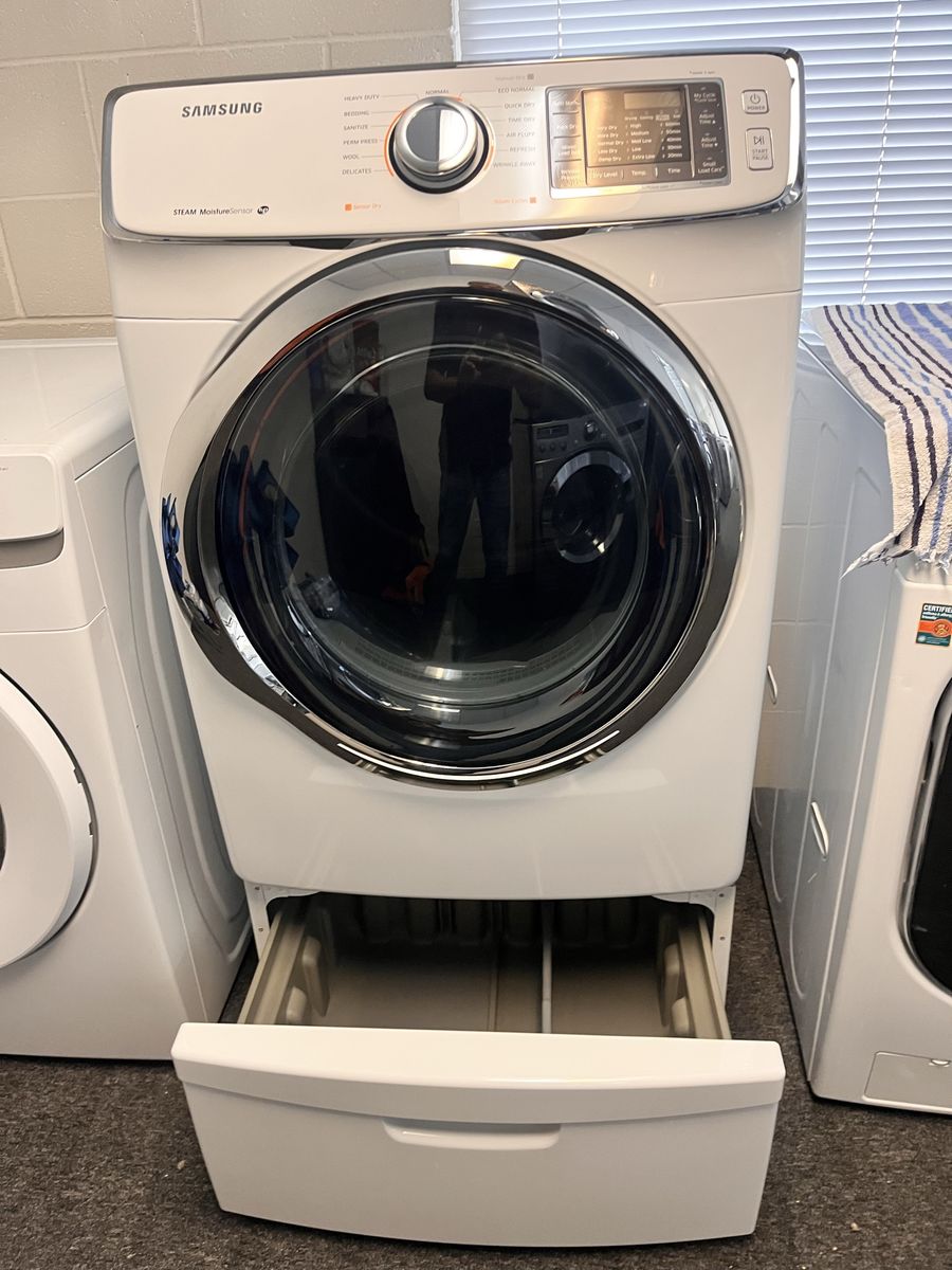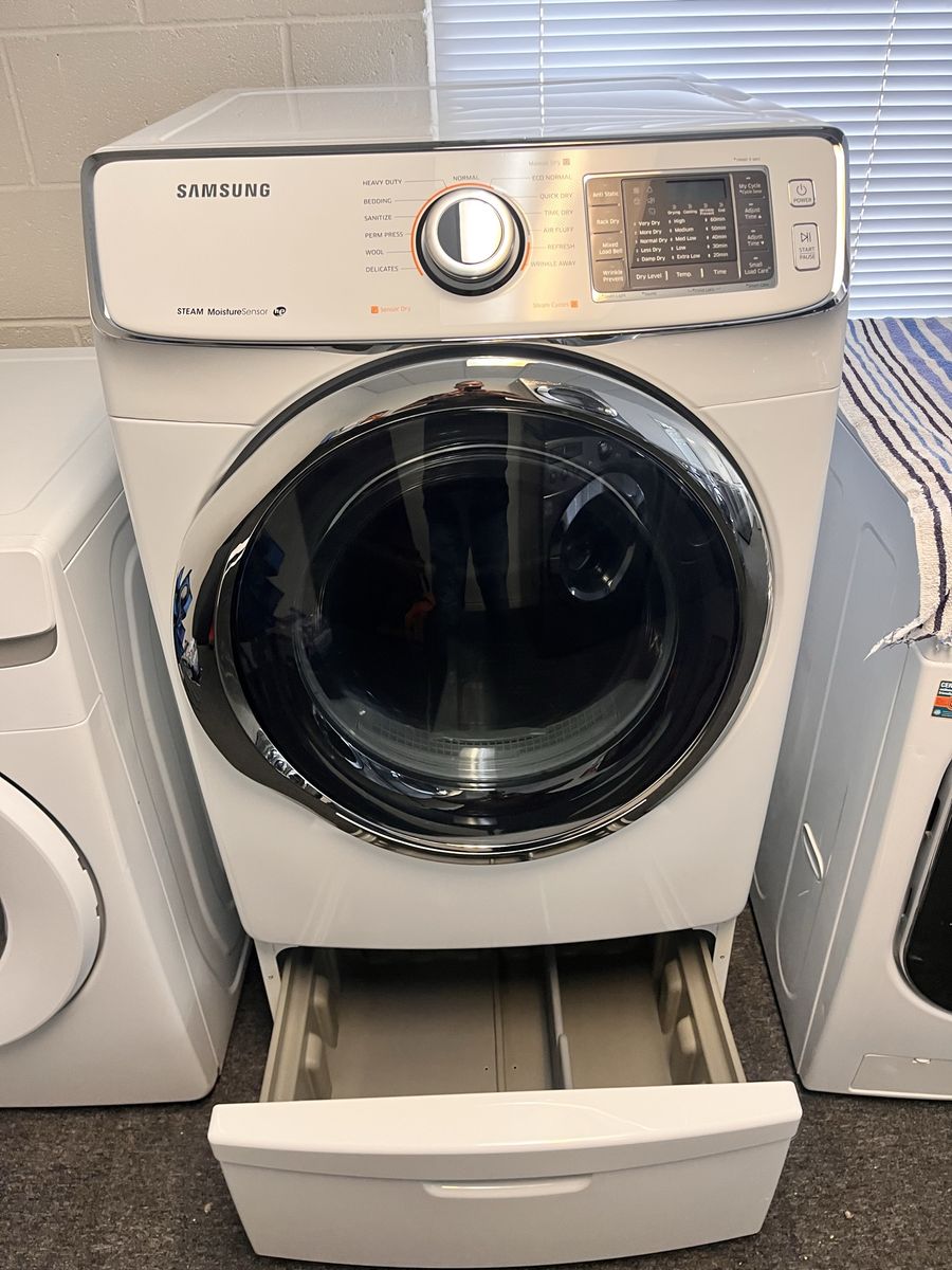 Very nice Samsung 7.4 cu ft capacity gas dryer in excellent condition and super clean inside and out, comes with a 16” pedestal that can easily be removed if needed. $225 with the pedestal or $200 without it. I can deliver and install for a little extra. Call 8015403075