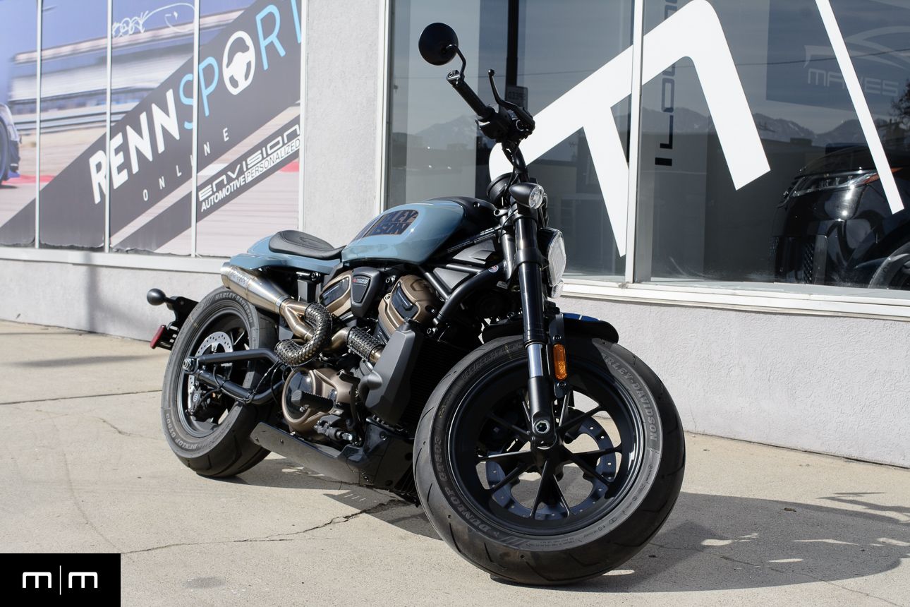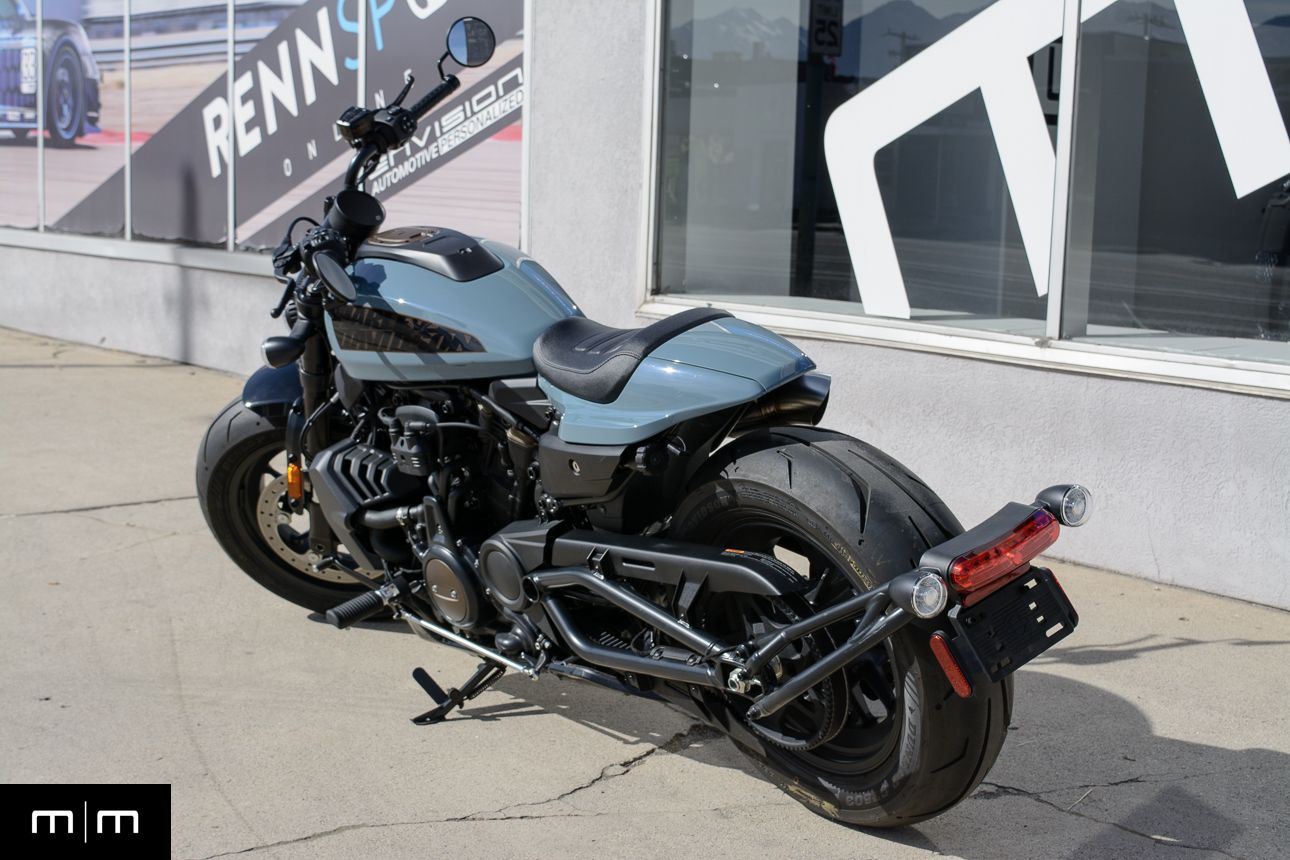 Powered by the 1250cc Revolution Max engine, the Sportster S delivers impressive power with a responsive, torque-heavy feel that sets it apart from traditional Sportster models. This bike is further enhanced with an aftermarket full Rowdy exhaust, giving it a much more aggressive sound to match its performance.