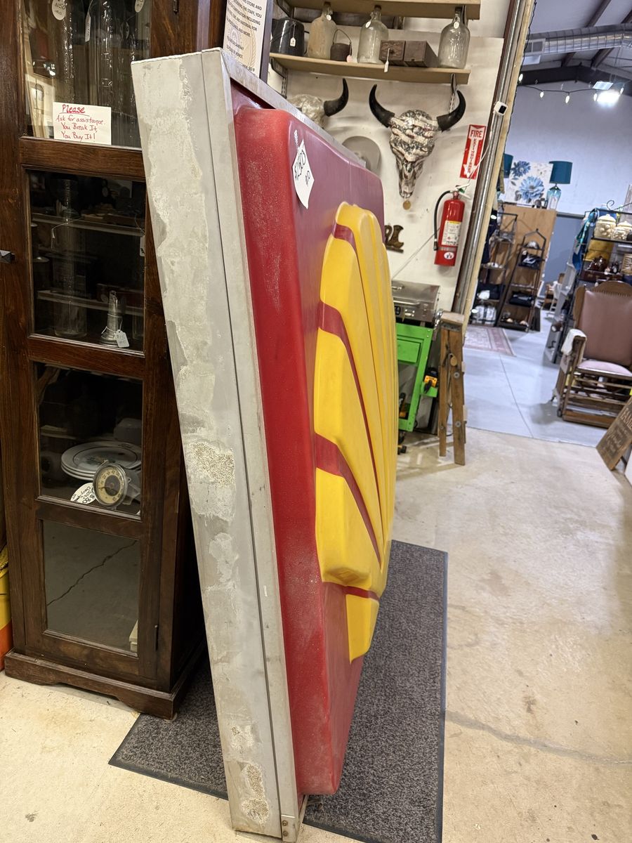 VenmoCame off of an old Shell station. An amazing collectible piece for a man cave, shop, or garage. Definitely a rare unique find. It is approximately 5‘ x 5‘. It is lightweight. And at one time was lit up.