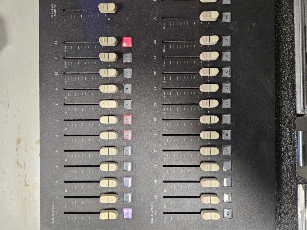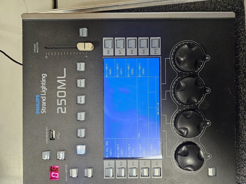 Philips Strand Lighting 250ML lighting board. Analog DMX professional lighting boad. Fully functional but does require an external monitor for more advanced features. Comes with fitted flight case, power supply, and VGA to HDMI adapter.