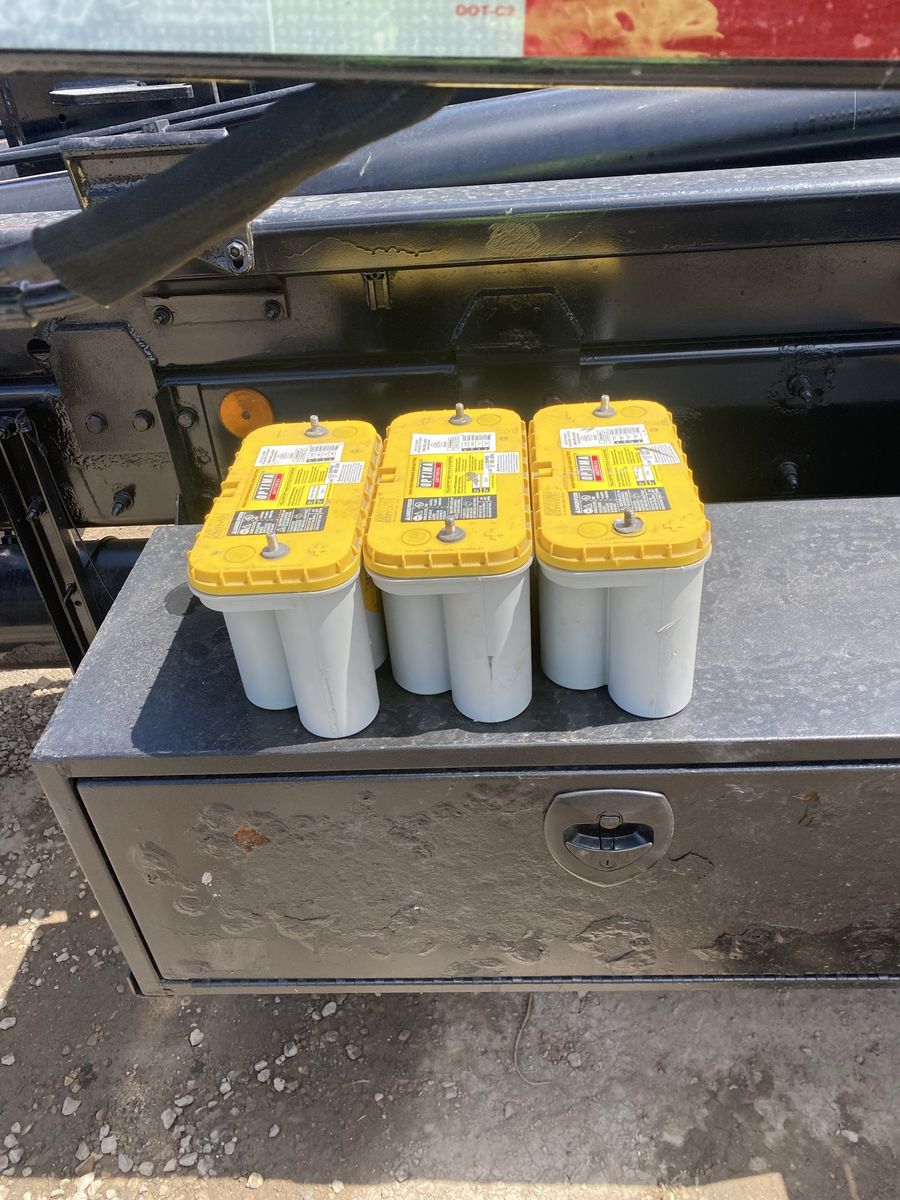 I have three Optima batteries, deep cycle and starting high-performance AGM battery. Plenty of life left in them cranking apps 1125 cold cranking apps 900 asking 125 each or all three for 300. I paid $1100 for all three of these batteries.
