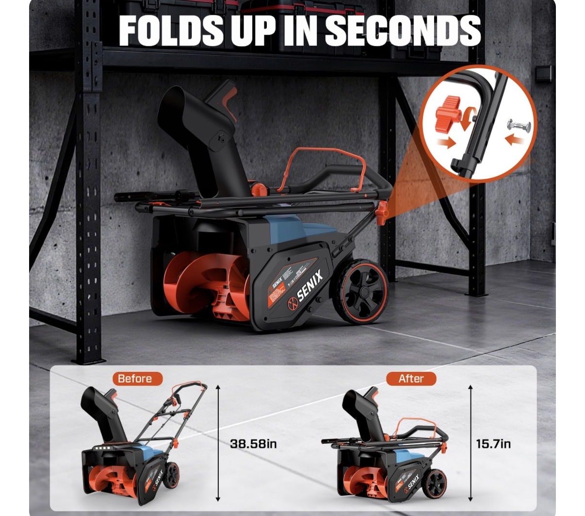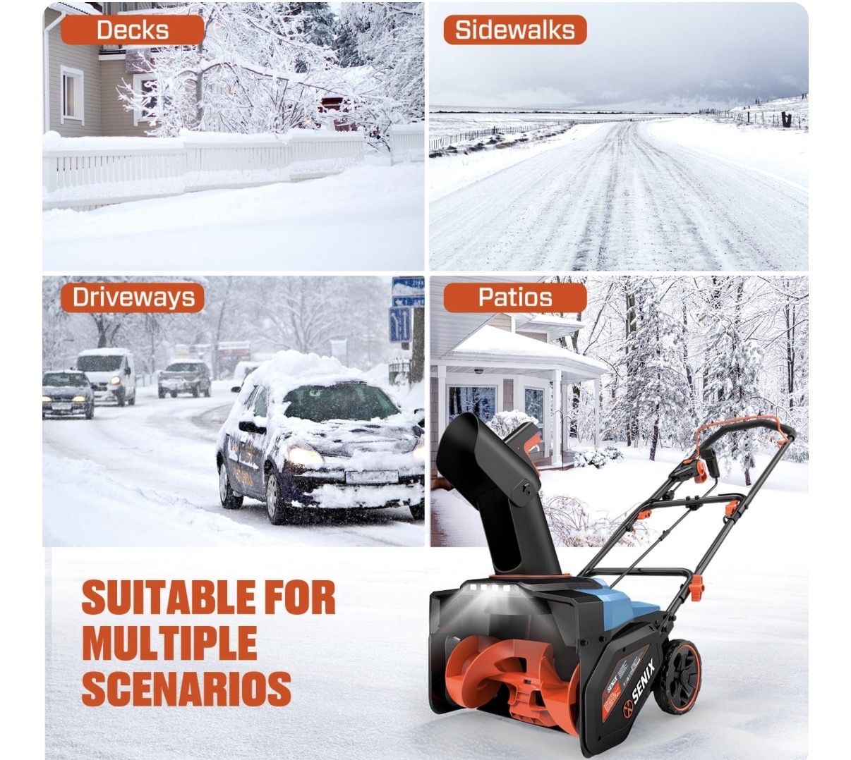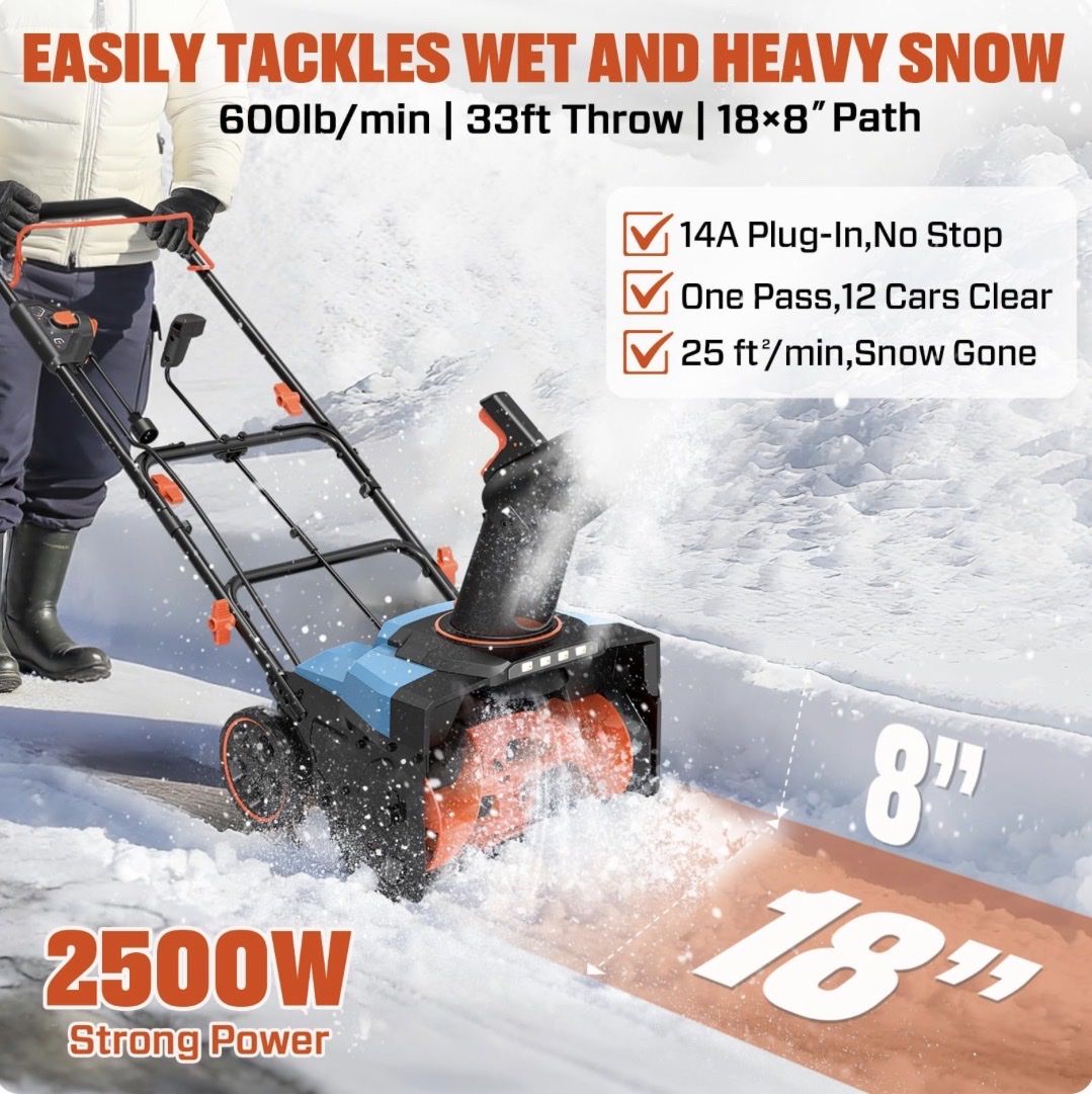 SENIX Electric Snow Blower,18 Inch Snow Thrower, Corded Snow Blower with 8-Inch Clearing Depth, 600lbs/min, 33ft Max Throw Distance, 15Amp 1700 Watt Motor, 4 LED Lights (STE14-M)