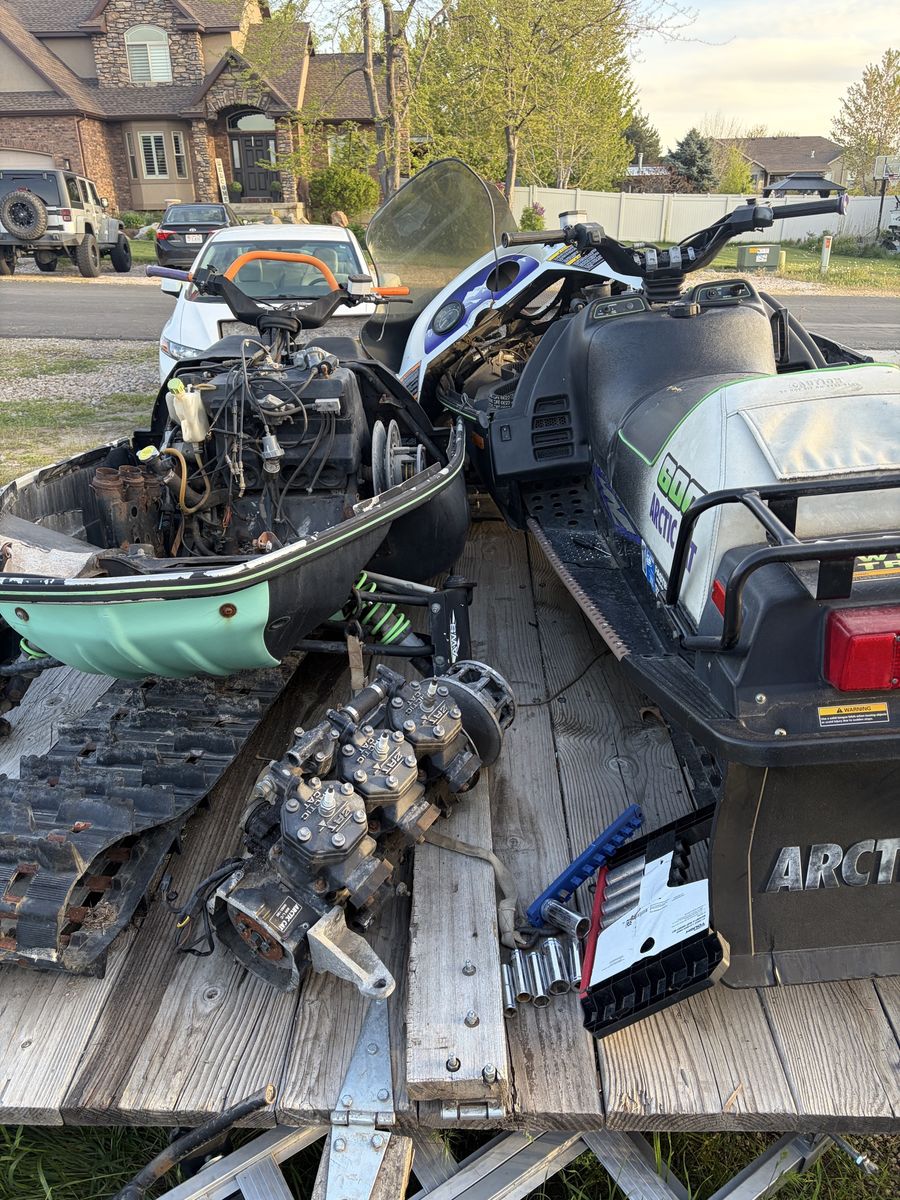 VenmoI’m trying to help my neighbor sell his two Arctic cat snowmobiles. He tells me the engine in one runs just fine and the other is more of a apart sled. He also has the trailer they’re sitting on for sale for an extra couple hundred bucks. He would like to get these moved out of his front yard. Thanks for looking and have a good day.