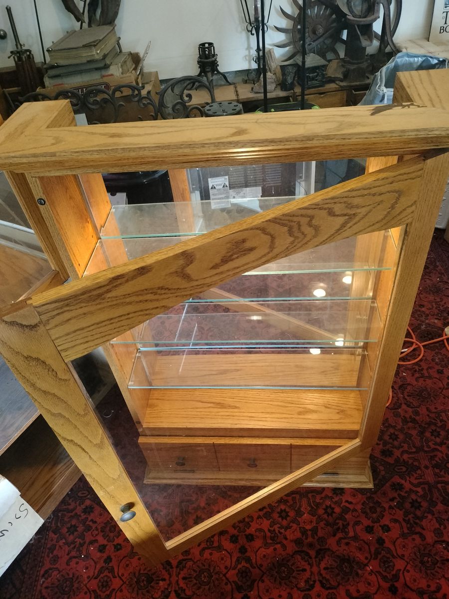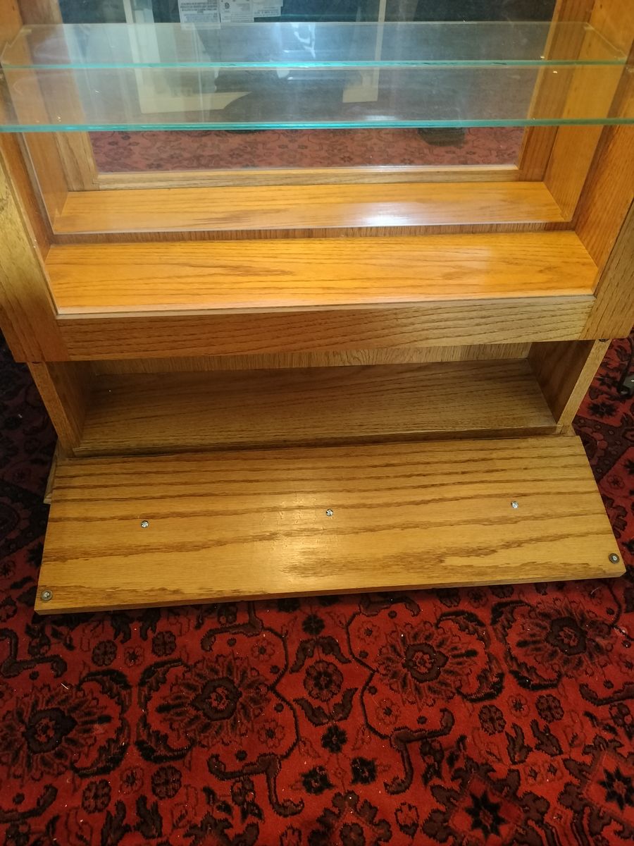Lighted, mirrored three glass shelves with bottom nook.