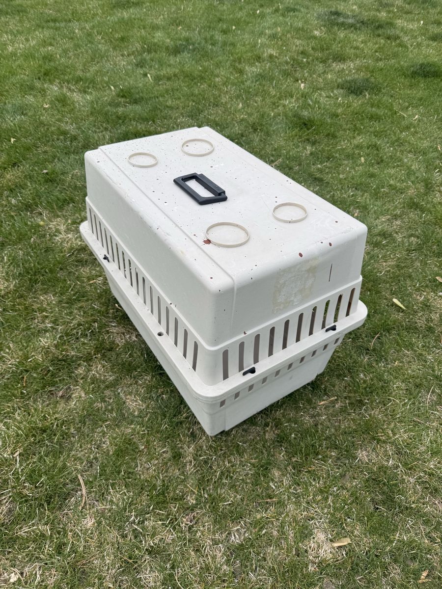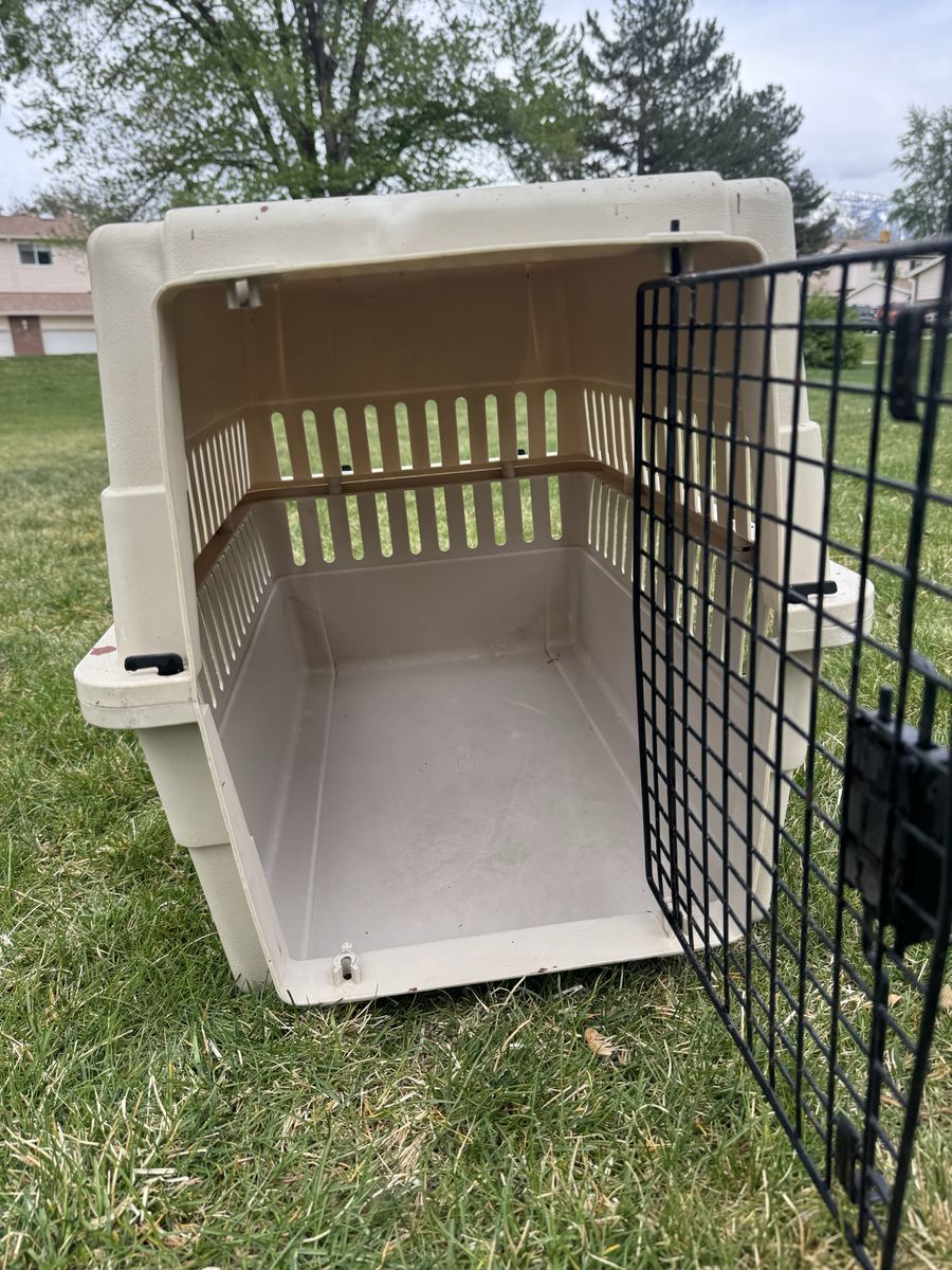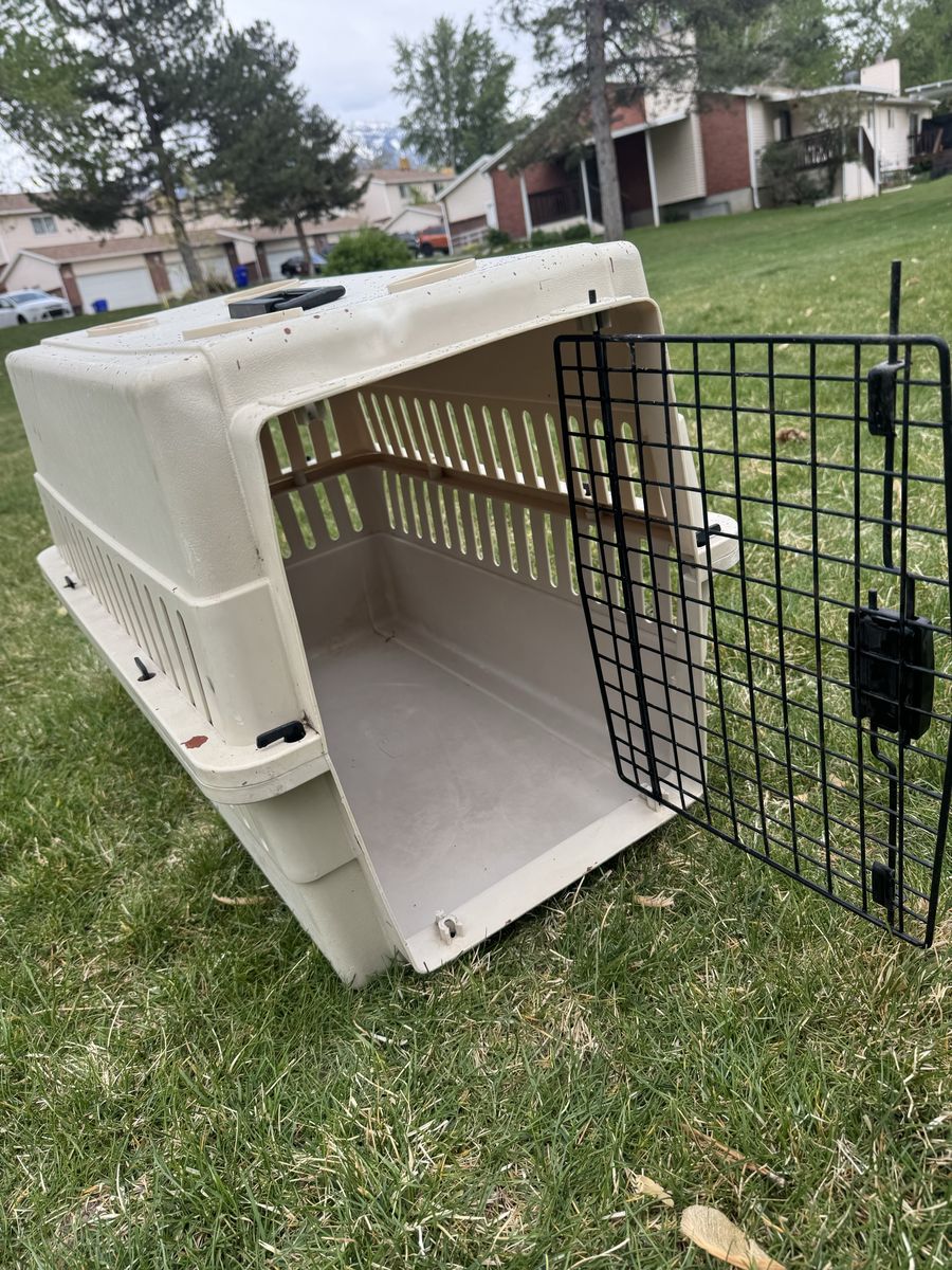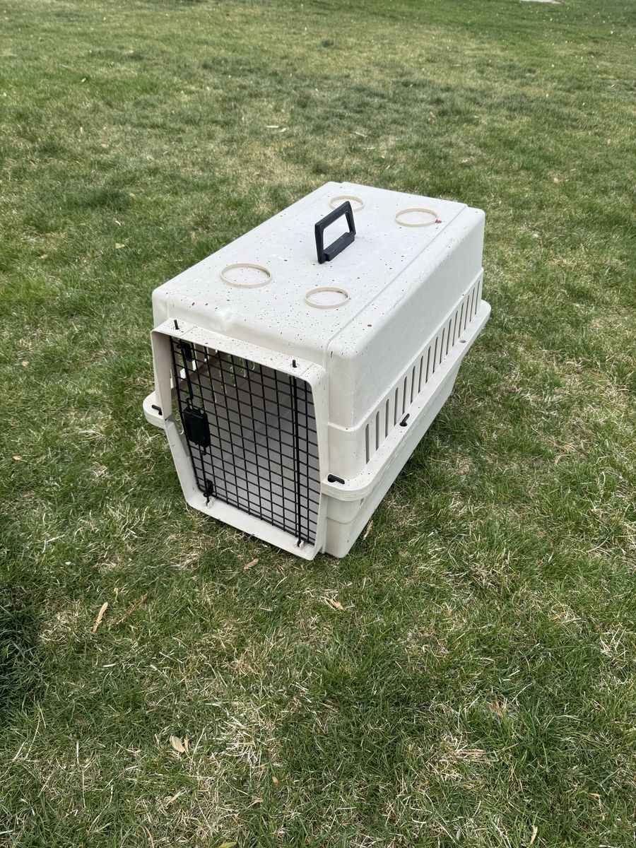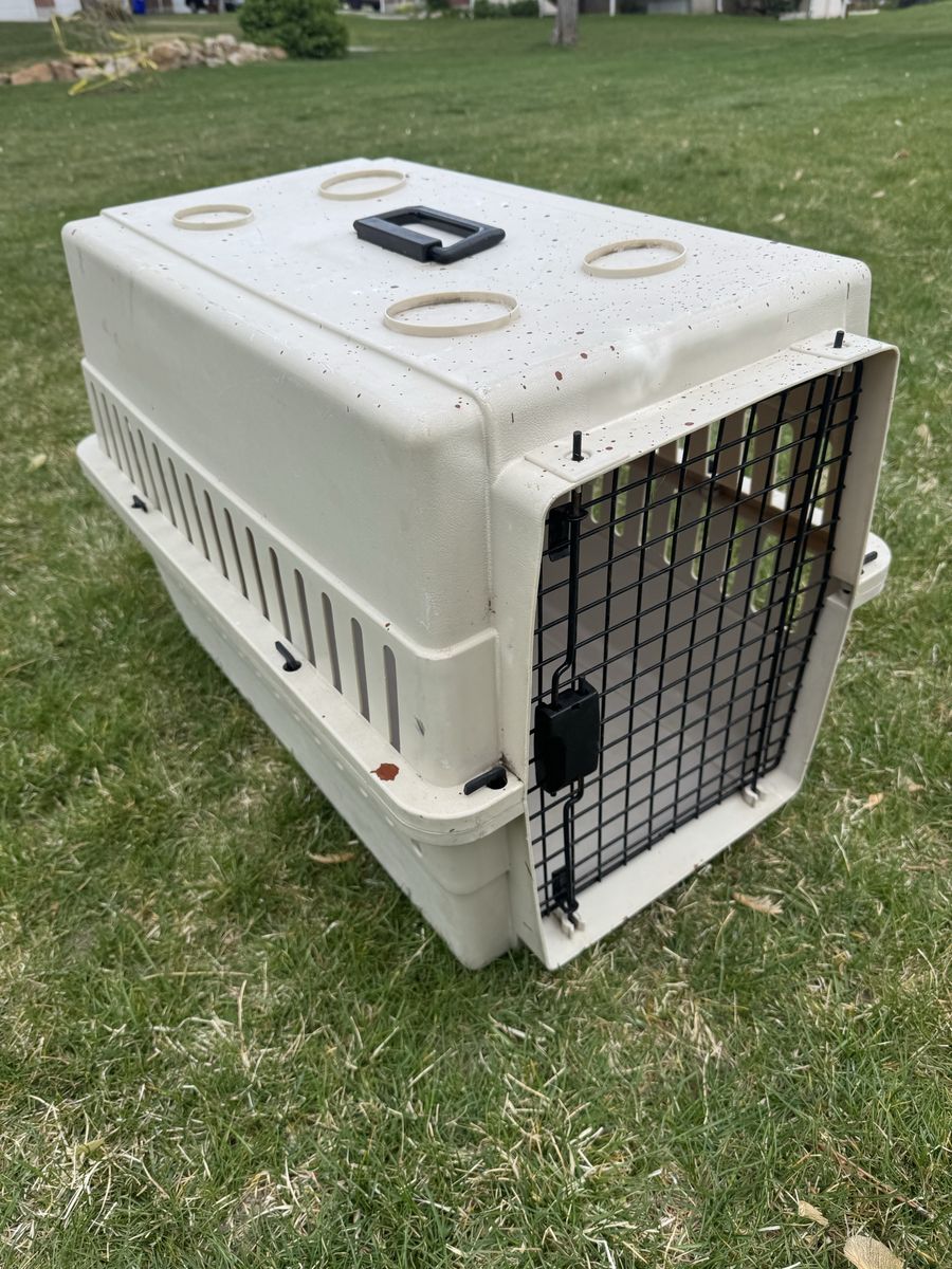 Medium sized kennel for a smaller animal 10-20 lbs. Has some paint on it. Works great.