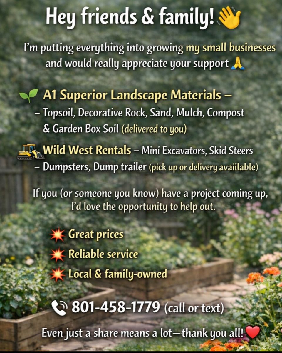 Delivery from N. Ogden to Kaysville (small fee outside area) Call or Text: 8014581779