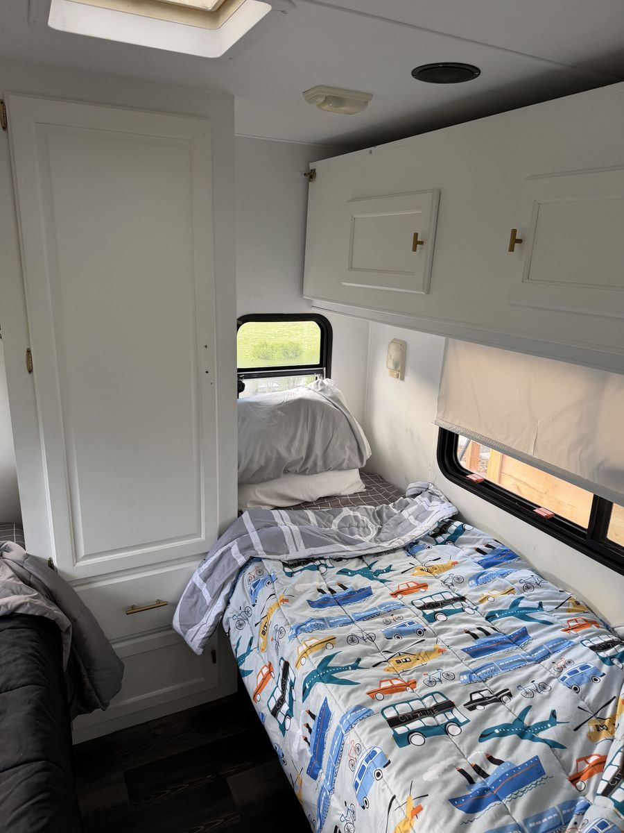 VenmoSave your self 90% of the cost of a brand new bumper pull and still get 90% of the function! We are the 2nd owners on this trailer and it has served us well. We quit using it a couple years ago and want to see it go to a good home. We redid the inside when we bought it 7 yrs ago. Most everything is functional but there are a few things that are cheap that need to be fixed: vinyl tile in the shower and the fresh water tank drain spout. Probably a few other minor things. YOU WILL NEED YOUR OWN BATTERY. NO CENTRAL AC, I do have a portable AC unit I have used that I can include, please ask. I have wired this to put a lithium battery inside the trailer, but I will not be giving my battery because I use it in my boat. You will receive the load leveling hitch also, these are normally very expensive. All the major functions work and there are no roof leaks that I can tell. I re sealed the roof when we bought it and it could probably use it again soon. It sleeps 7 people: Dining table is a full size bed for 2, the others are all twin beds. I would not put adults in the top bunks and the one above the table would need to child not teenager. Take a look at the video and text or call with questions: