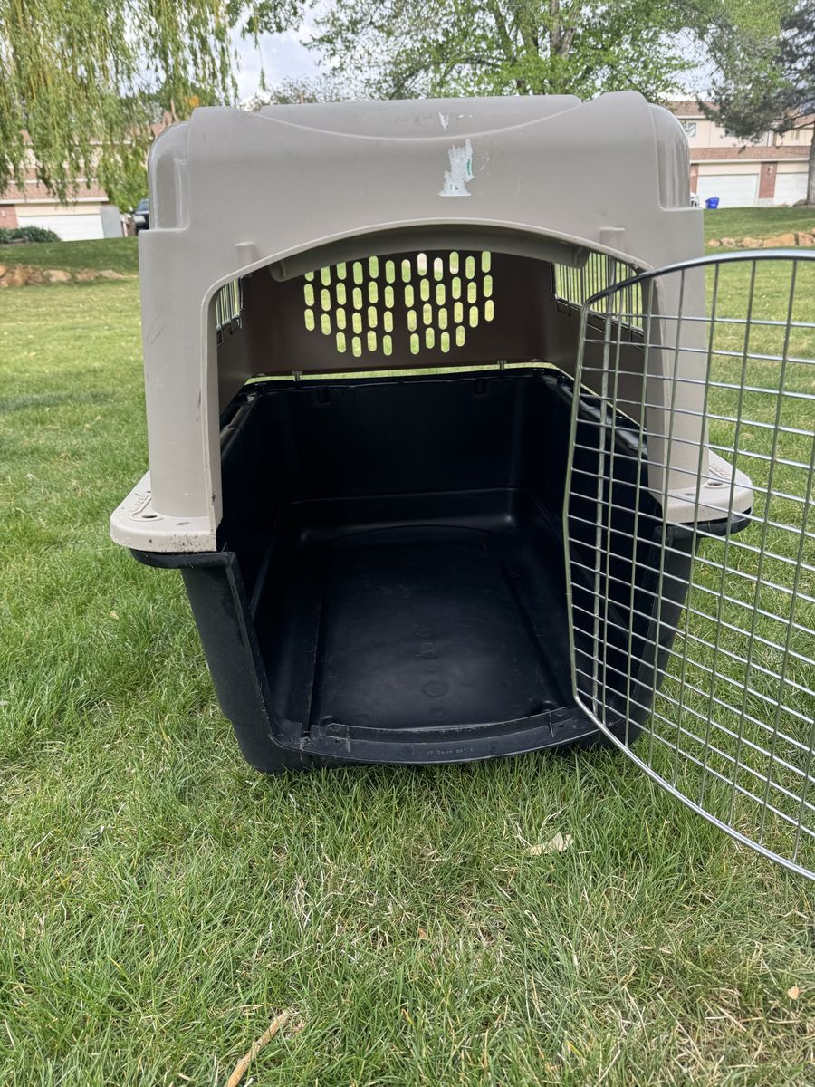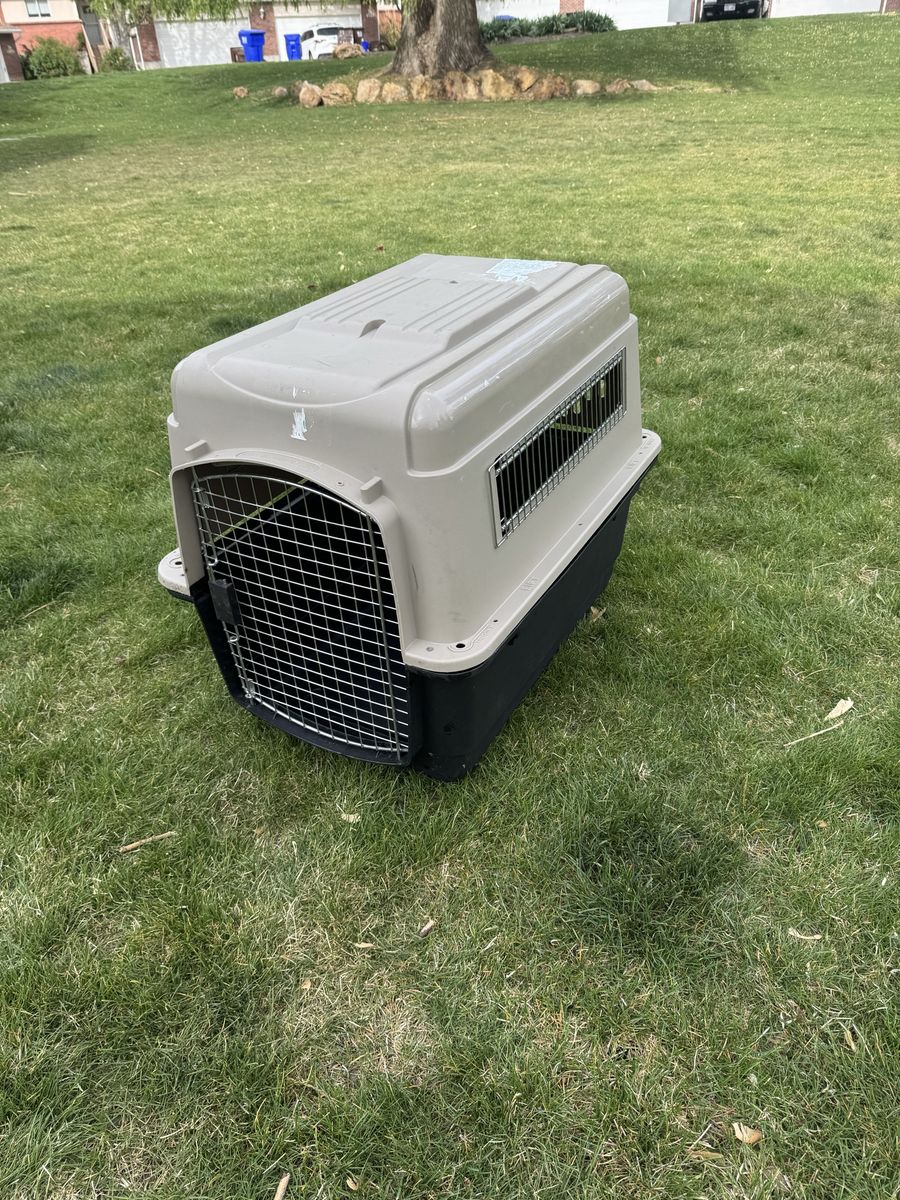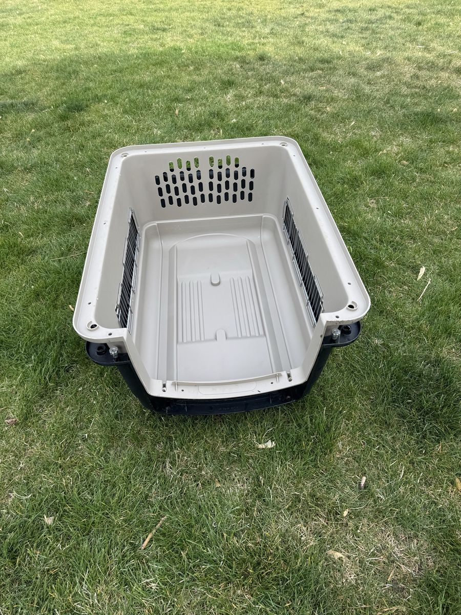 Kennel medium-large size. Works well. For medium sized Dog.