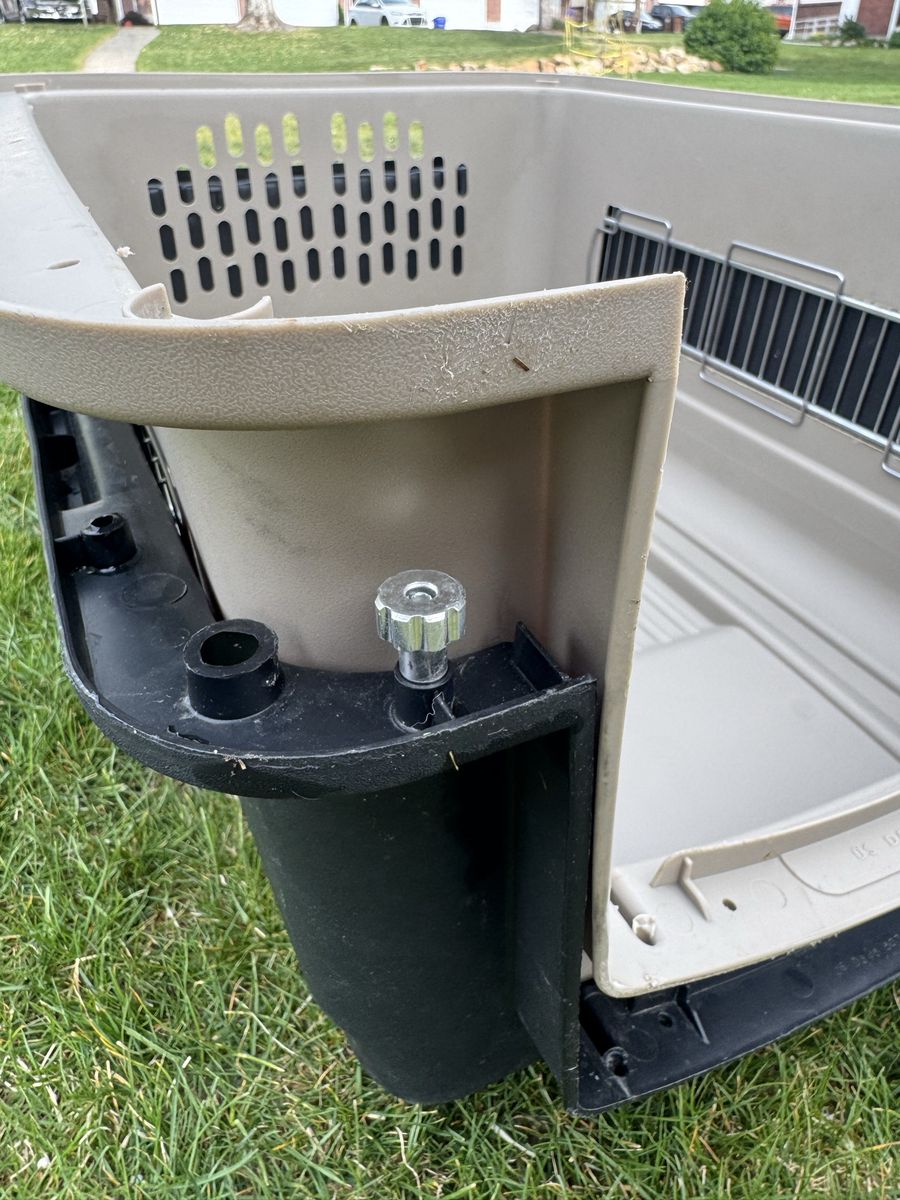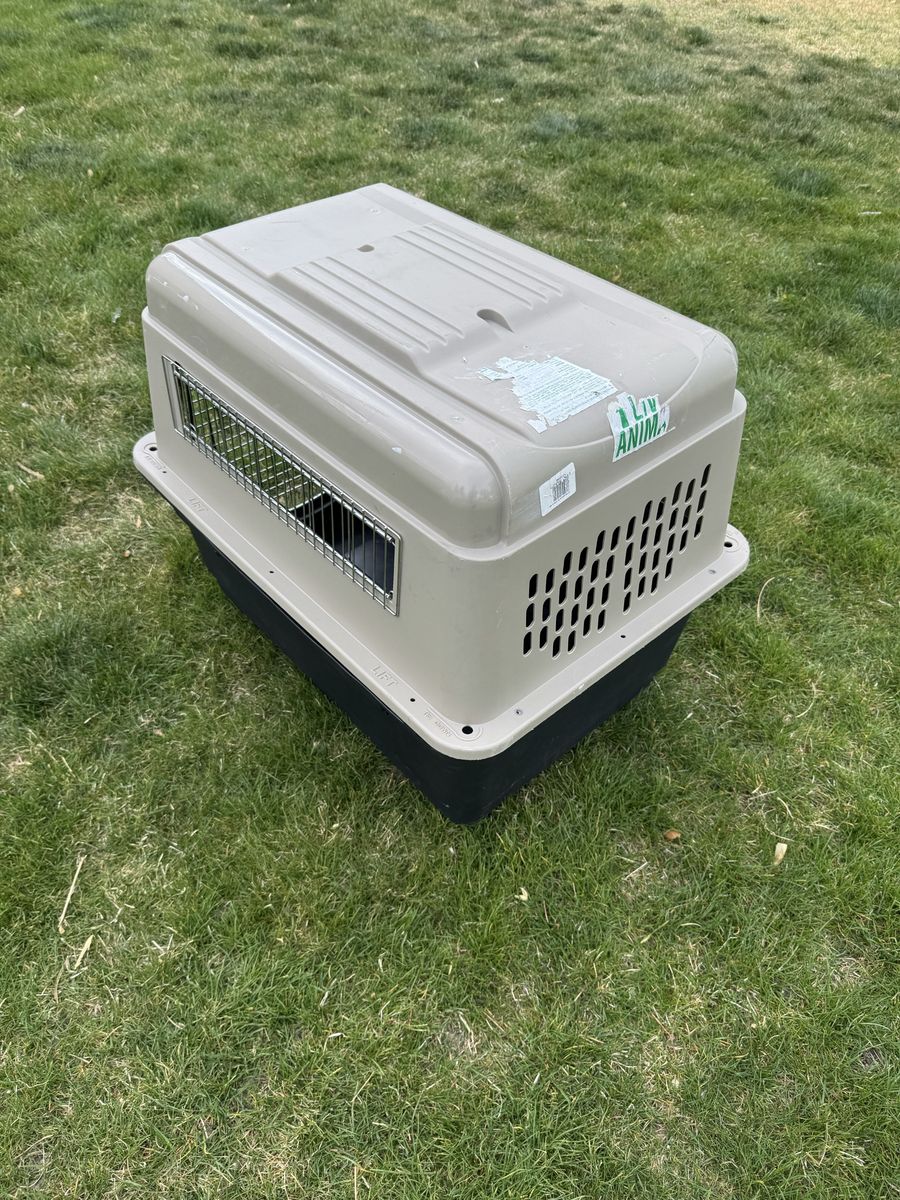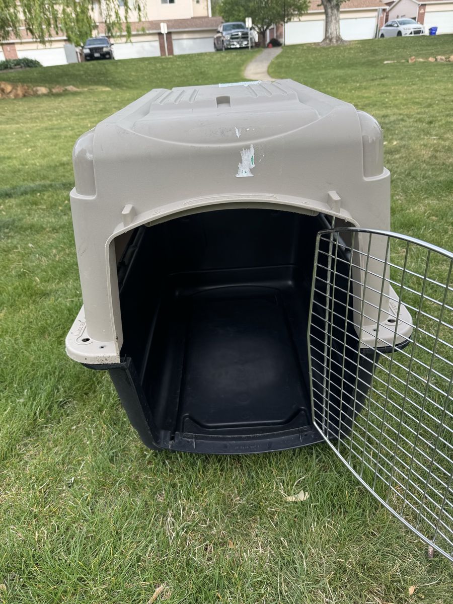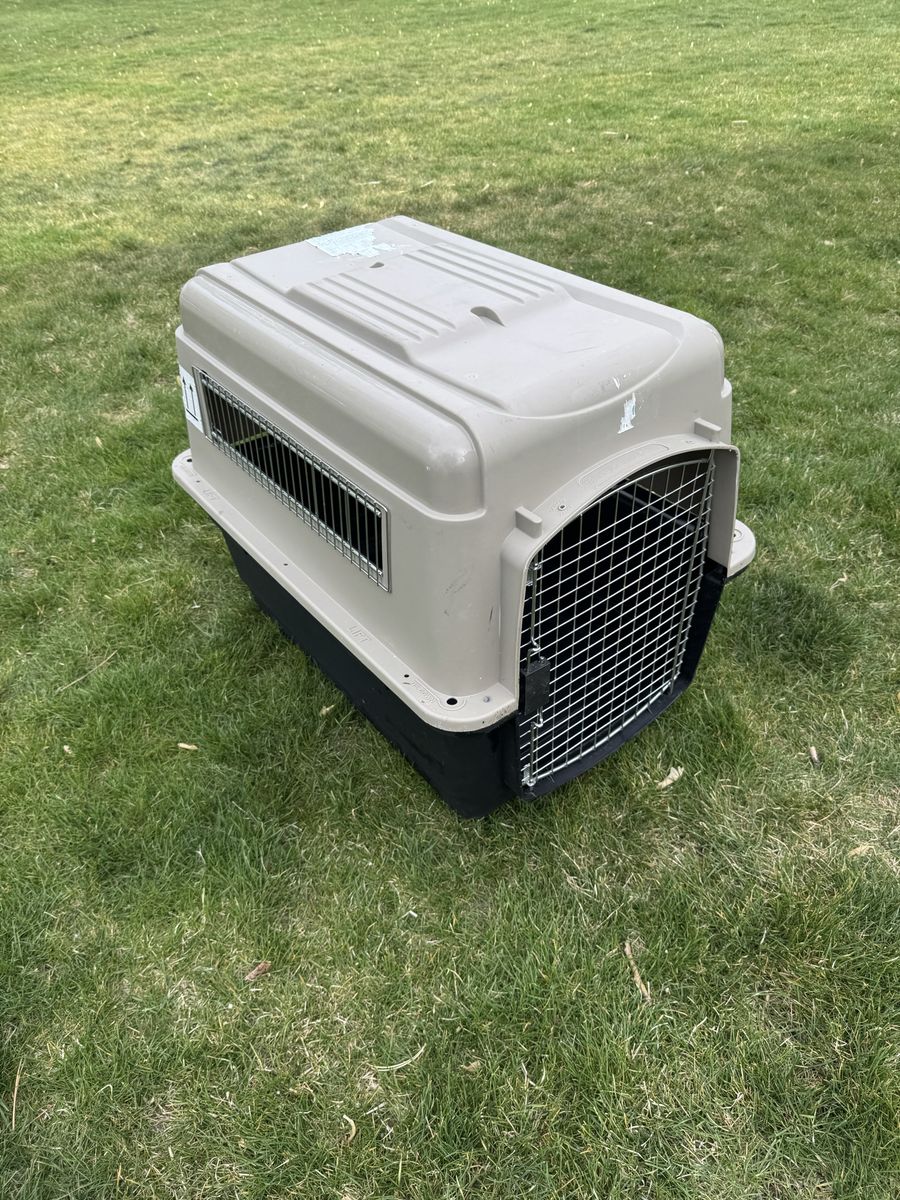 Kennel medium-large size. Works well. For medium sized Dog.