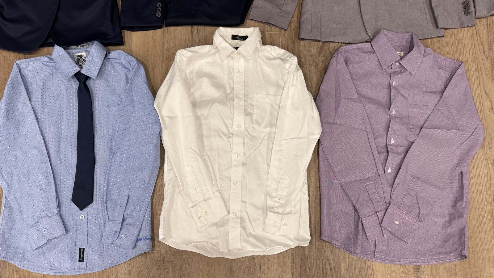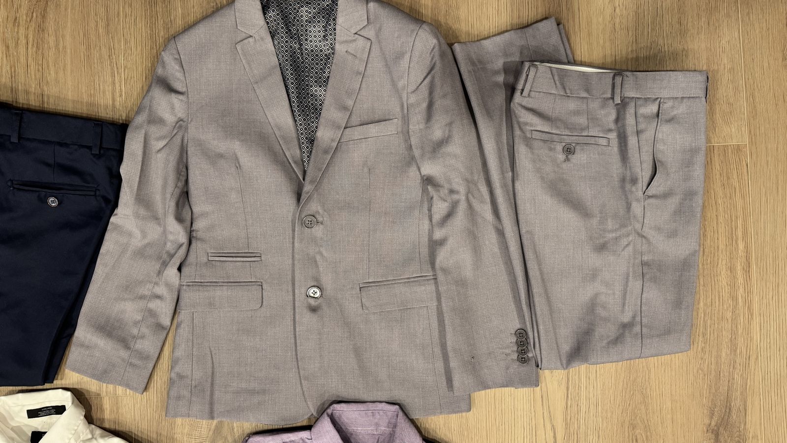 VenmoAll size 14 2 suits and Navy suit, Grey suit and 3 mix and match dress shirts and 1 navy tie. All from Nordstrom. In great condition,no stains. Only imperfection is a snag on the sleeve of grey suit coat, as shown in picture.