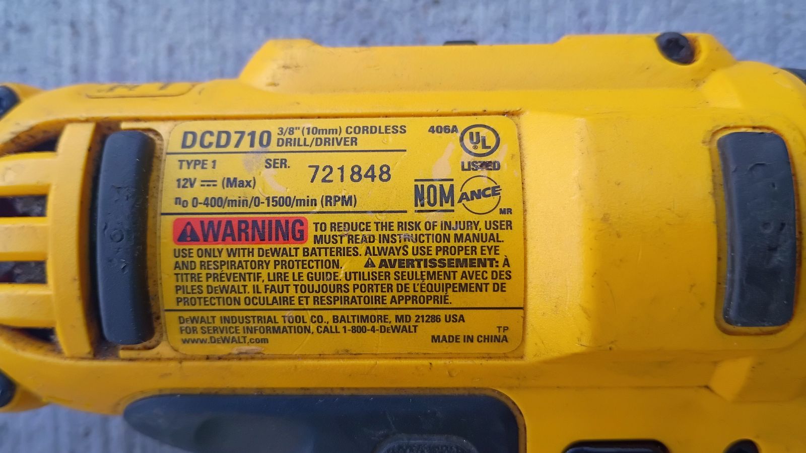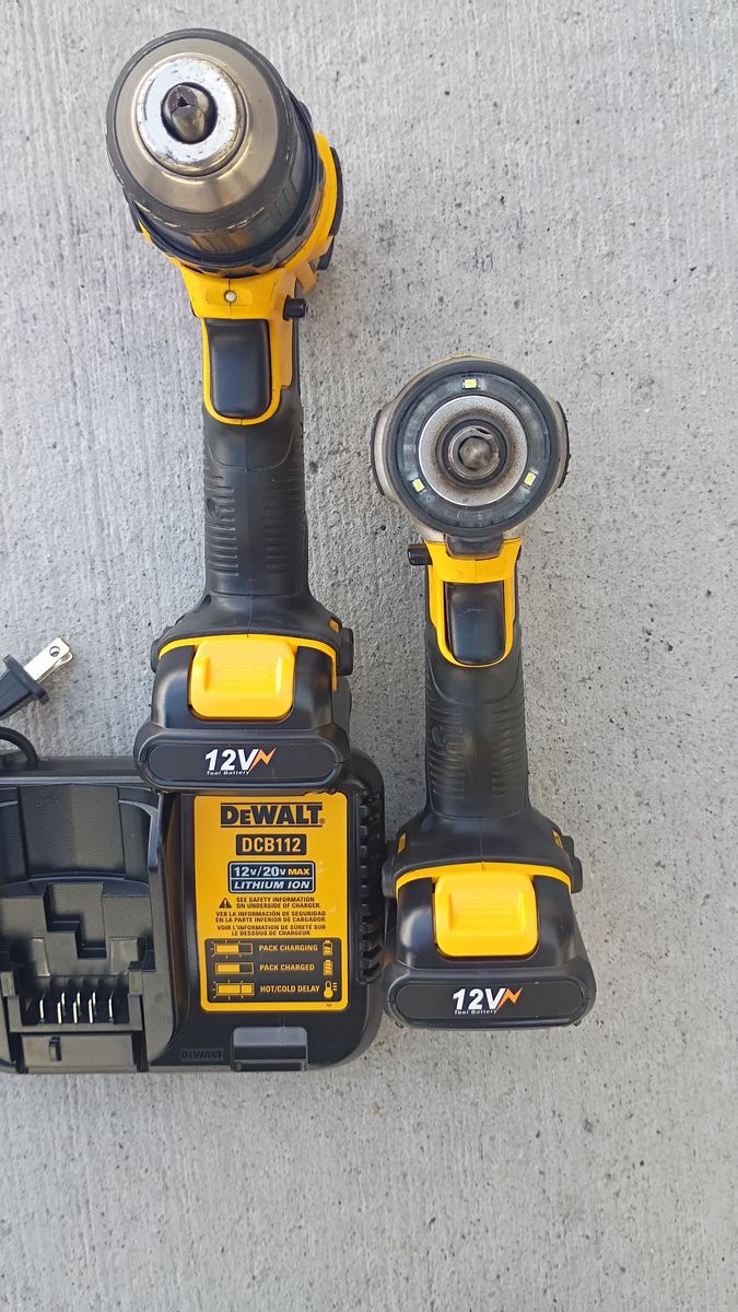 I have a set of DeWalt cordless 12vMax drill and impact driver. The tools are used but in very good condition. They come with two new batteries and a new charger. The drill is model number DCD710. The impact driver is model DCF815. The charger is DCB112. The batteries are new 3.5 amp replacement for DCB120. 12v Max