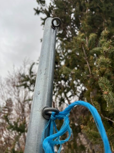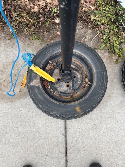 freestanding volleyball net and poles. Adjustable to both mens and womens heights.